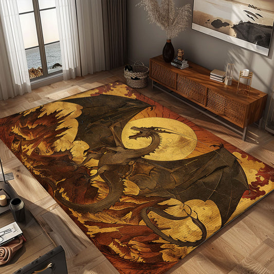 1400s Medieval Dragon Area Rug, Bringing Historic Mythology and Vintage Charm to Your Home Decor, Gift For Dragon Lovers, Personalized Dragon Rug for Living Room, Bedroom DG117