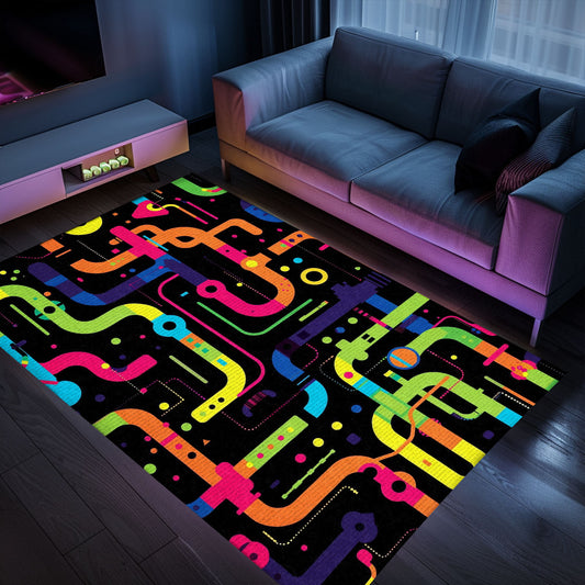 70s Retro Arcade Game Room Rug for Living Room, Perfect for Gamers and Retro Video Game Enthusiasts, Arcade Decor, Gift for Gamers, Video Game Lovers G50