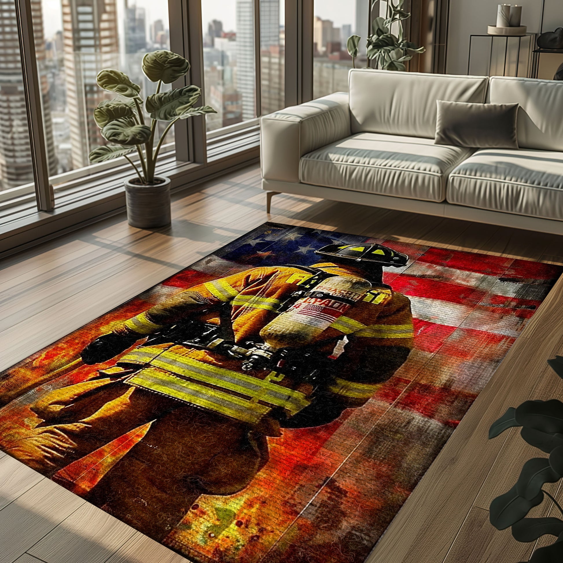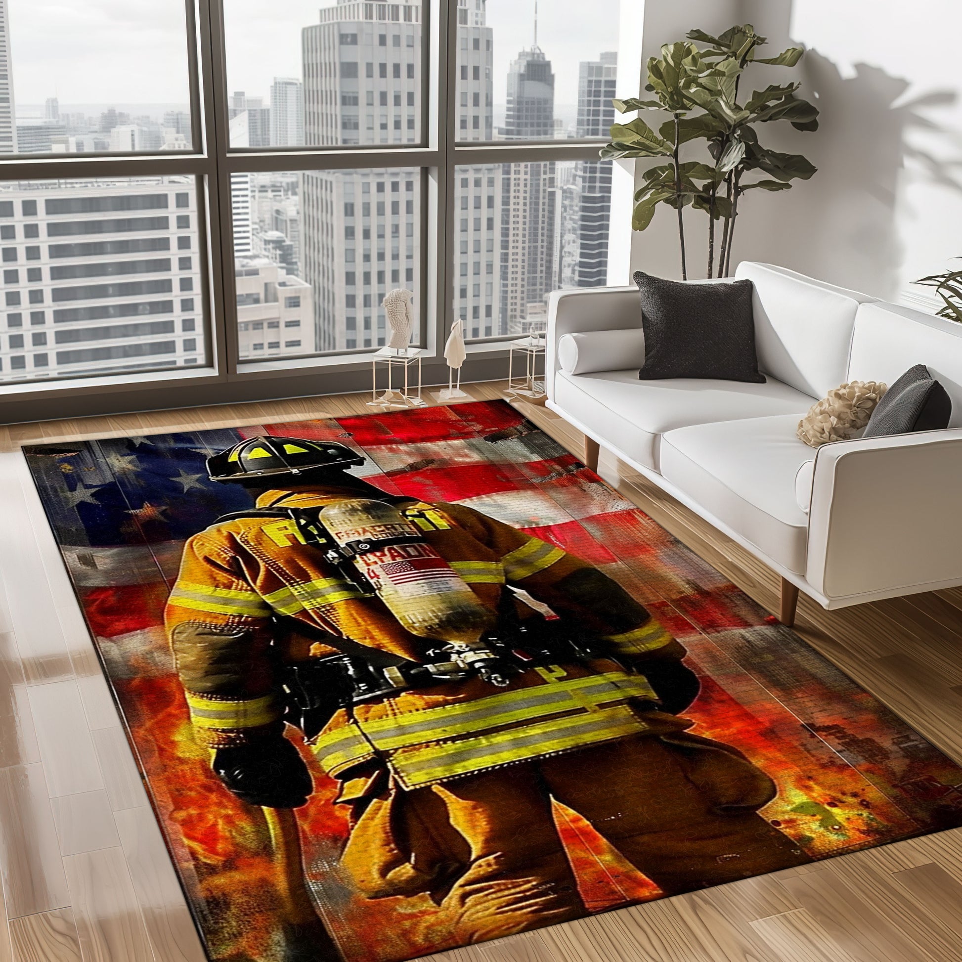 American Flag Firefighter Area Rug for Patriotic Living Spaces, Firefighter Rugs for Living Room Bedroom, Firefighter Rectangular Rugs Full Size FR161