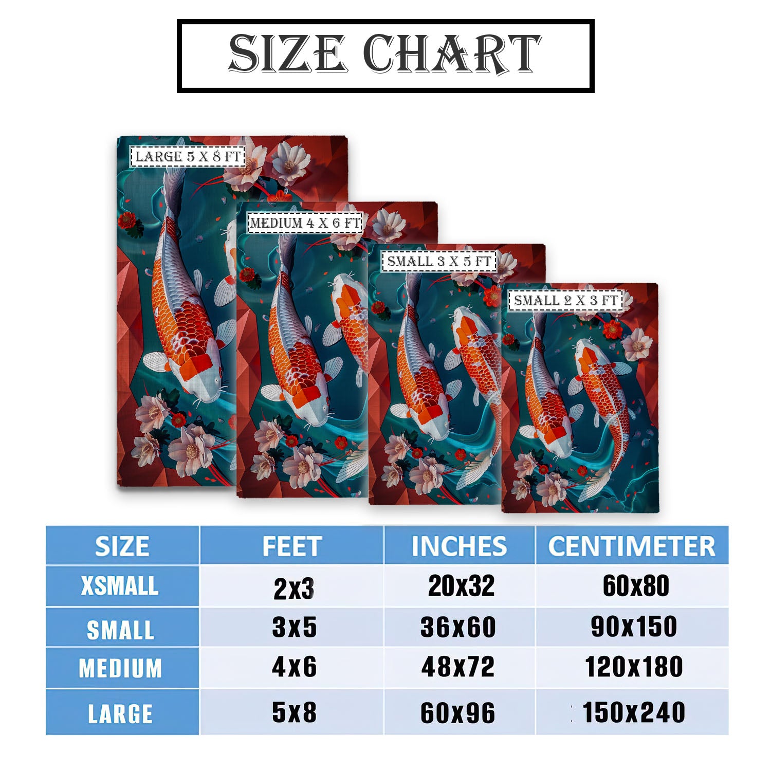 Beautiful Koi Fish Area Rug for Your Living Room or Bedroom - An Excellent Gift for Koi Fish Enthusiasts, Koi Rugs, Koi Fish Rug Carpet for Koi Lovers Size 5x8, 4x6, 3x5, 2x3 FT Koi 73
