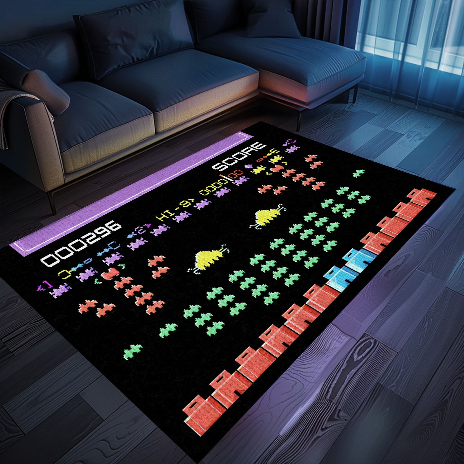 Add a Touch of Retro Gaming Charm with Dark and Neon 80s Arcade Carpet, Paying Homage to Space Invaders, Arcade Decor, Gift for Gamers, Video Game Lovers G169