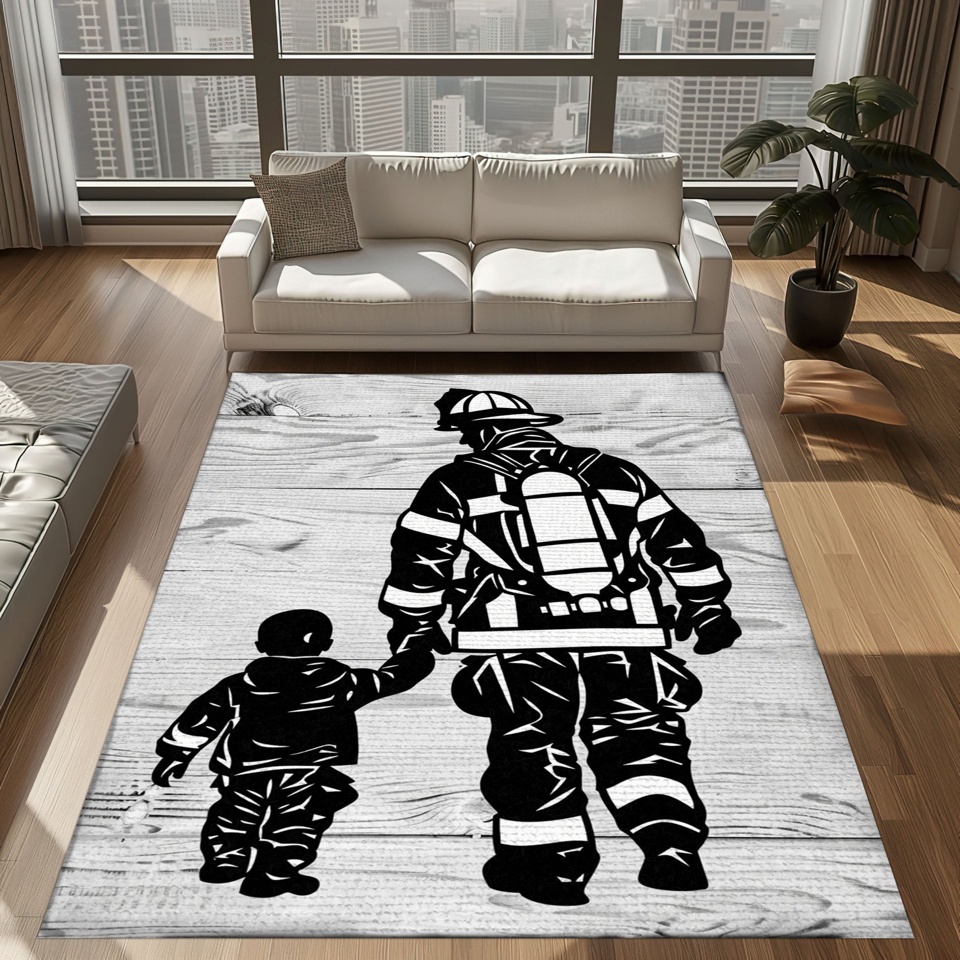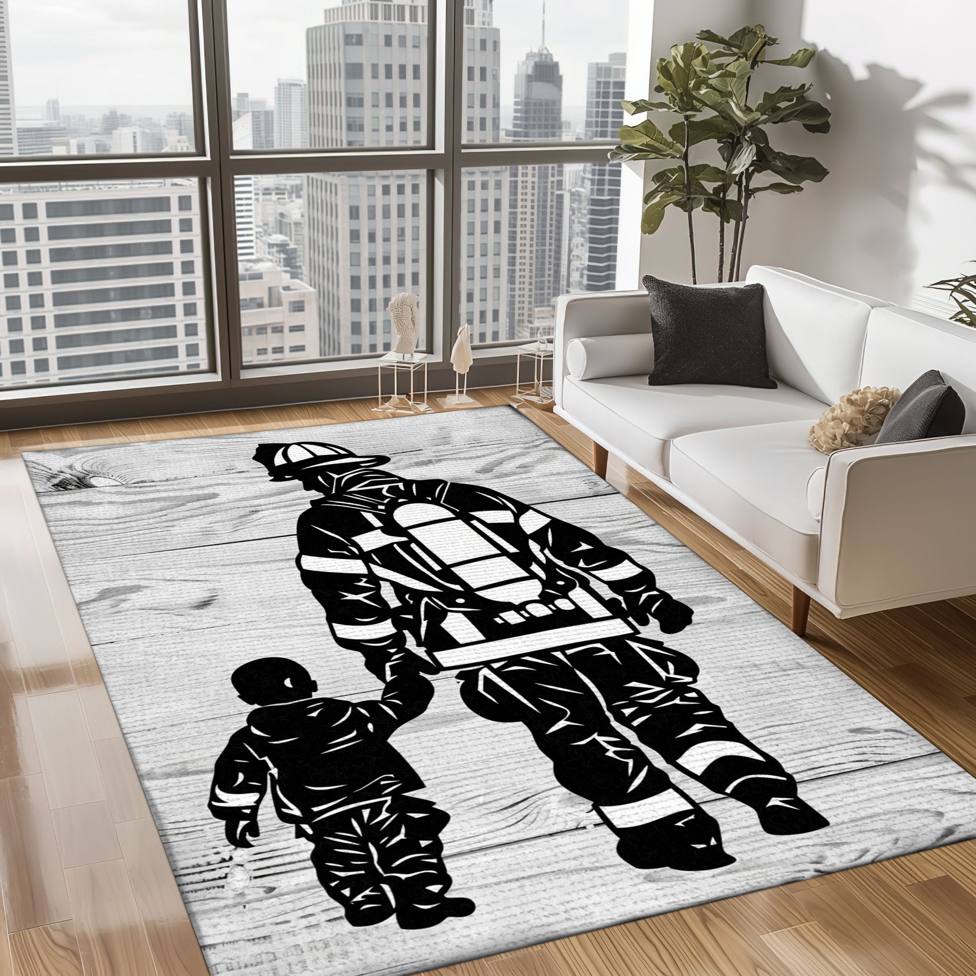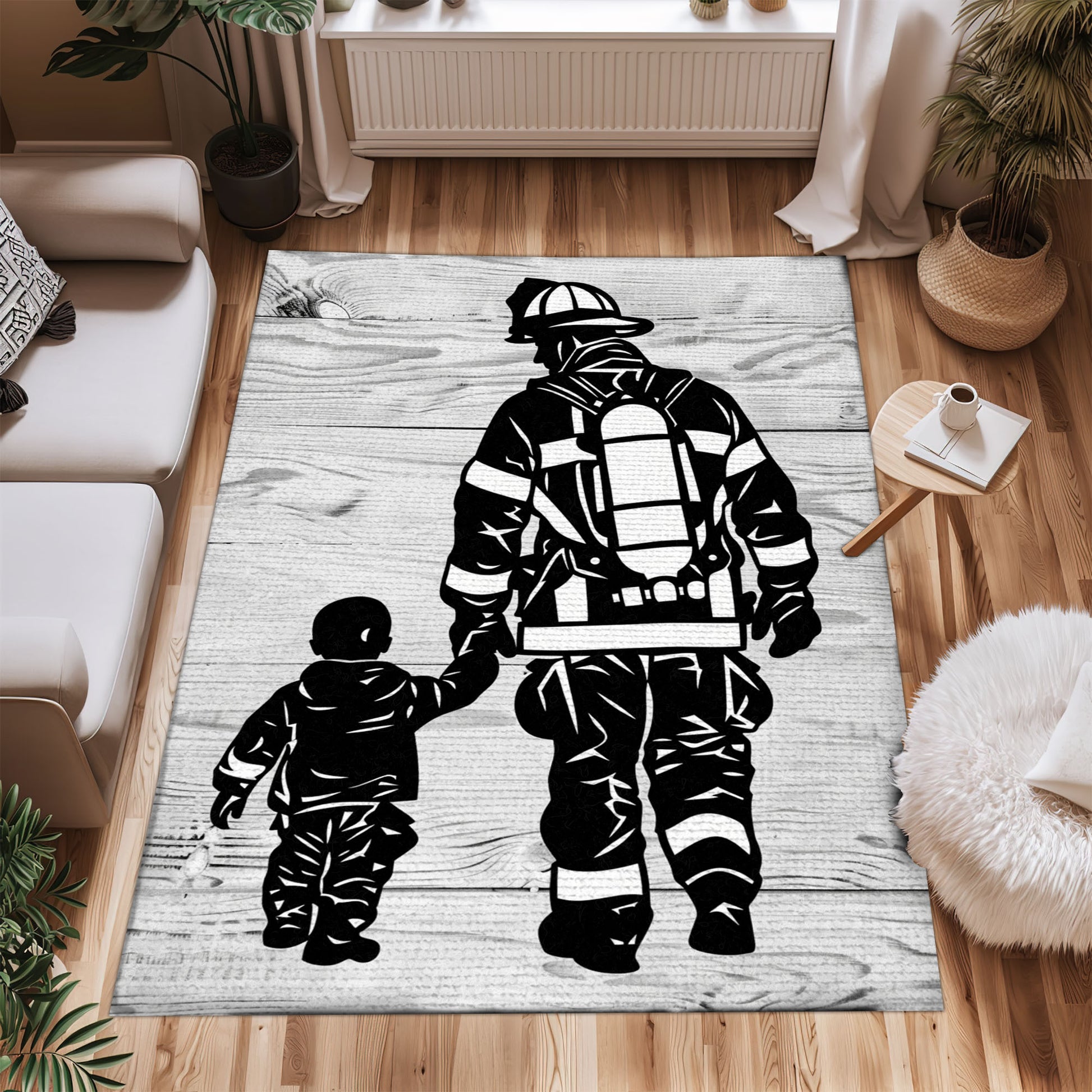 Bond of Courage: Personalized Father and Son Fire Fighter Area Rug, Firefighter Rugs for Living Room Bedroom, Firefighter Rectangular Rugs Full Size FR143