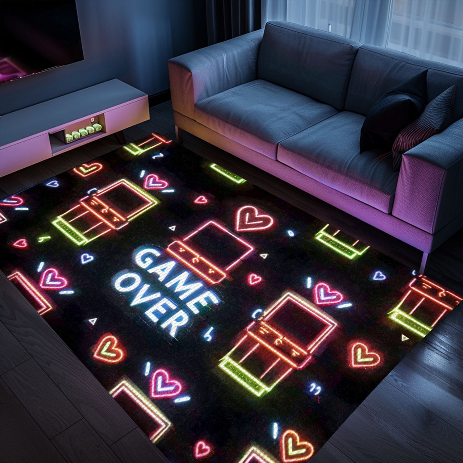 Bright Neon Video Game Retro Arcade Rug for Living Room, Ideal Decor and Gift for Arcade Enthusiasts, Arcade Decor, Gift for Gamers, Video Game Lovers G97