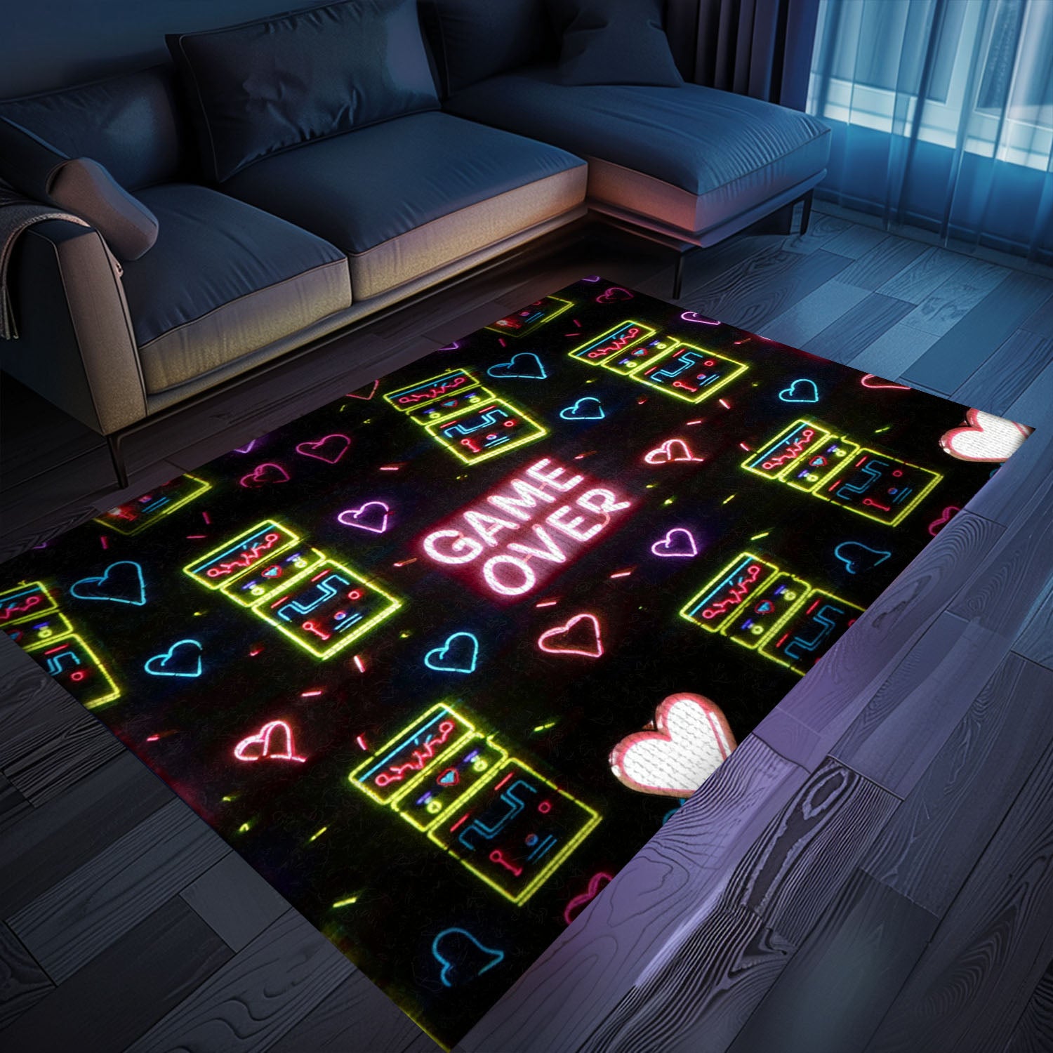 Bright Neon Video Game Retro Arcade Rug for Living Room, Ideal Decor and Perfect Gift for Gamers, Arcade Decor, Gift for Gamers, Video Game Lovers G61