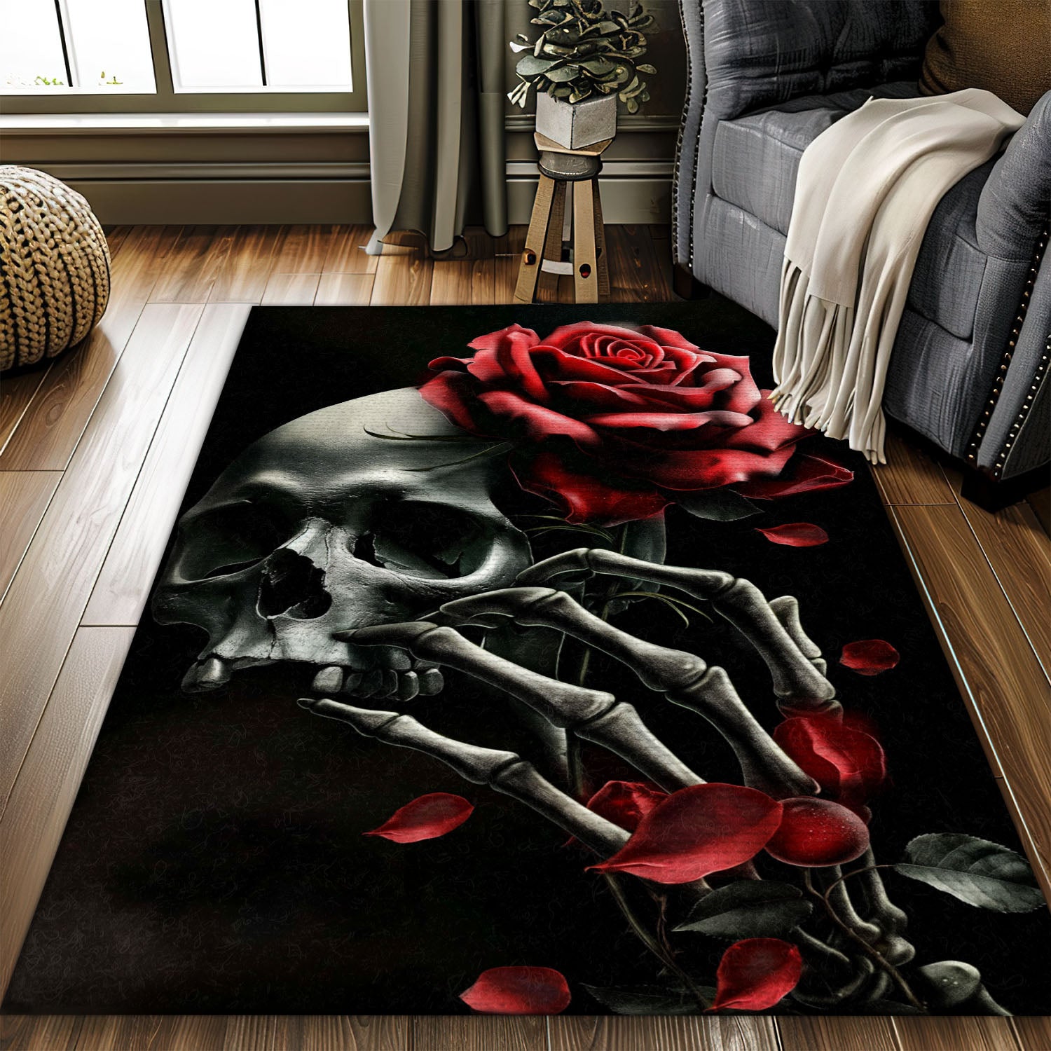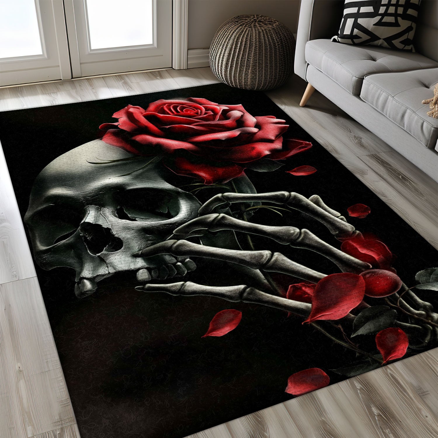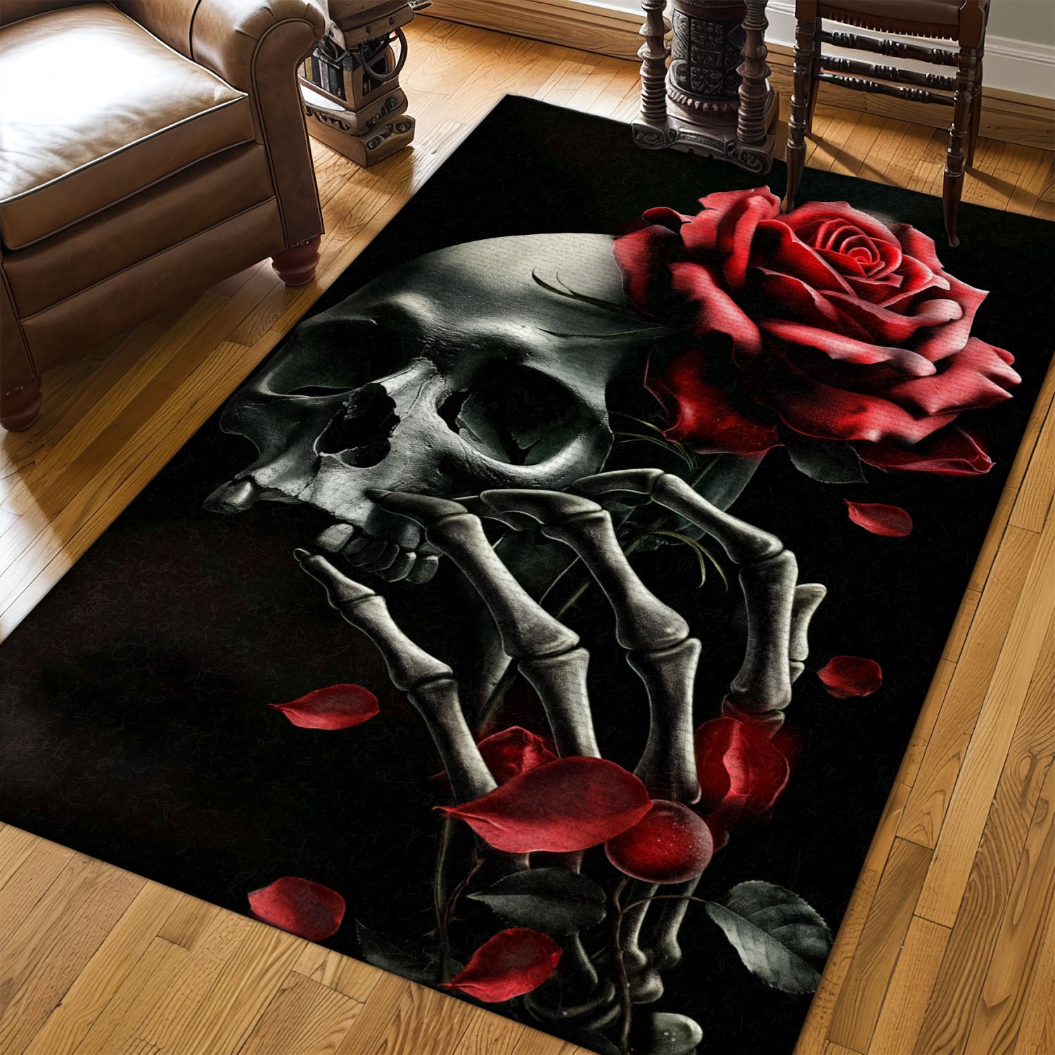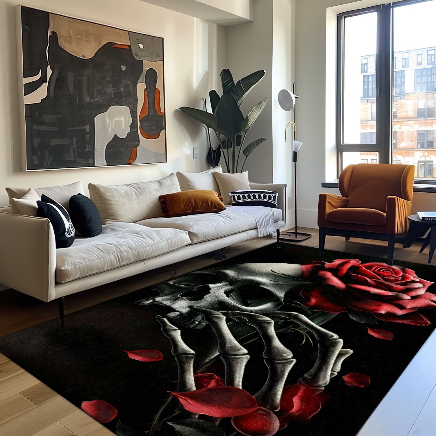 Bring Artistic Flair to Your Living Room with a Floral Skull and Handbone Pattern Rug, Skull Rug, Area Rugs 5x8, 4x6, 3x5 Size for Living Room Bedroom Home Decorative Skull K27