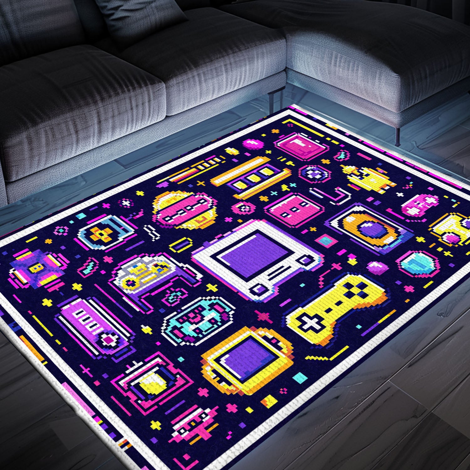 Bring Retro Gaming Home with 80s Game Controller Patterned Room Rugs, Ideal for Gamers' Sanctuaries, Arcade Decor, Gift for Gamers, Video Game Lovers G207