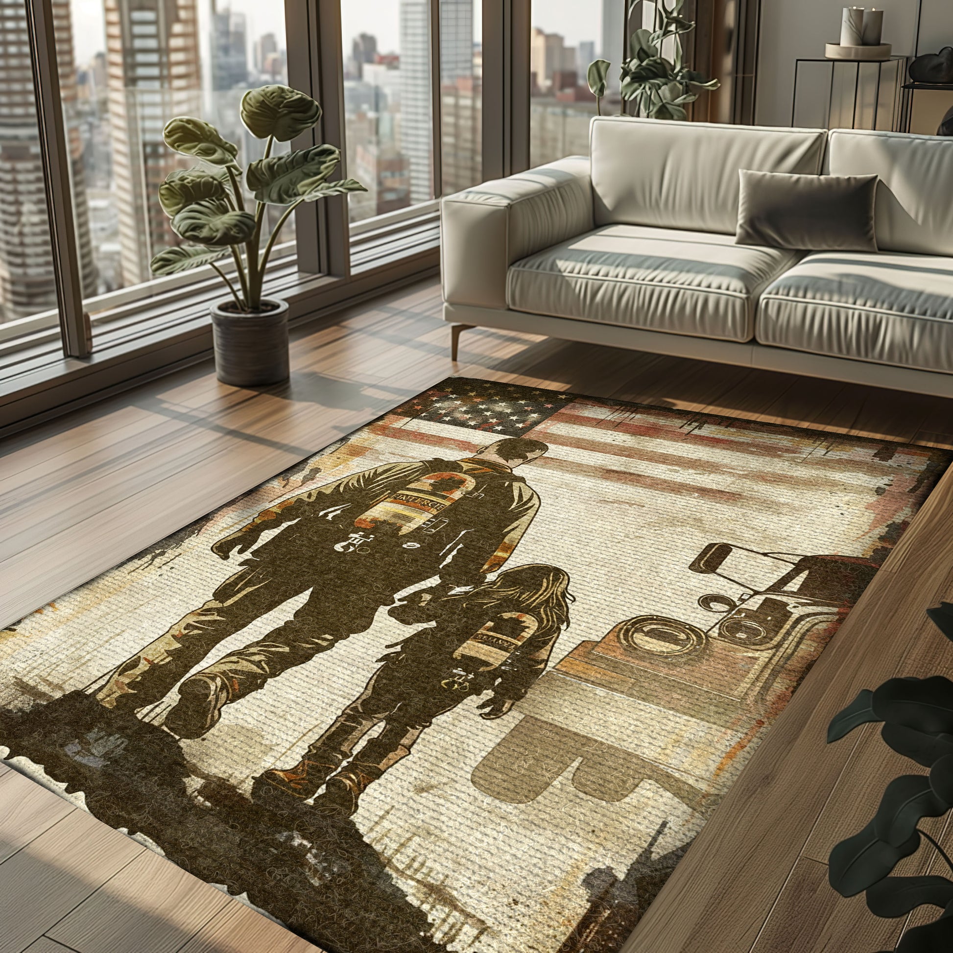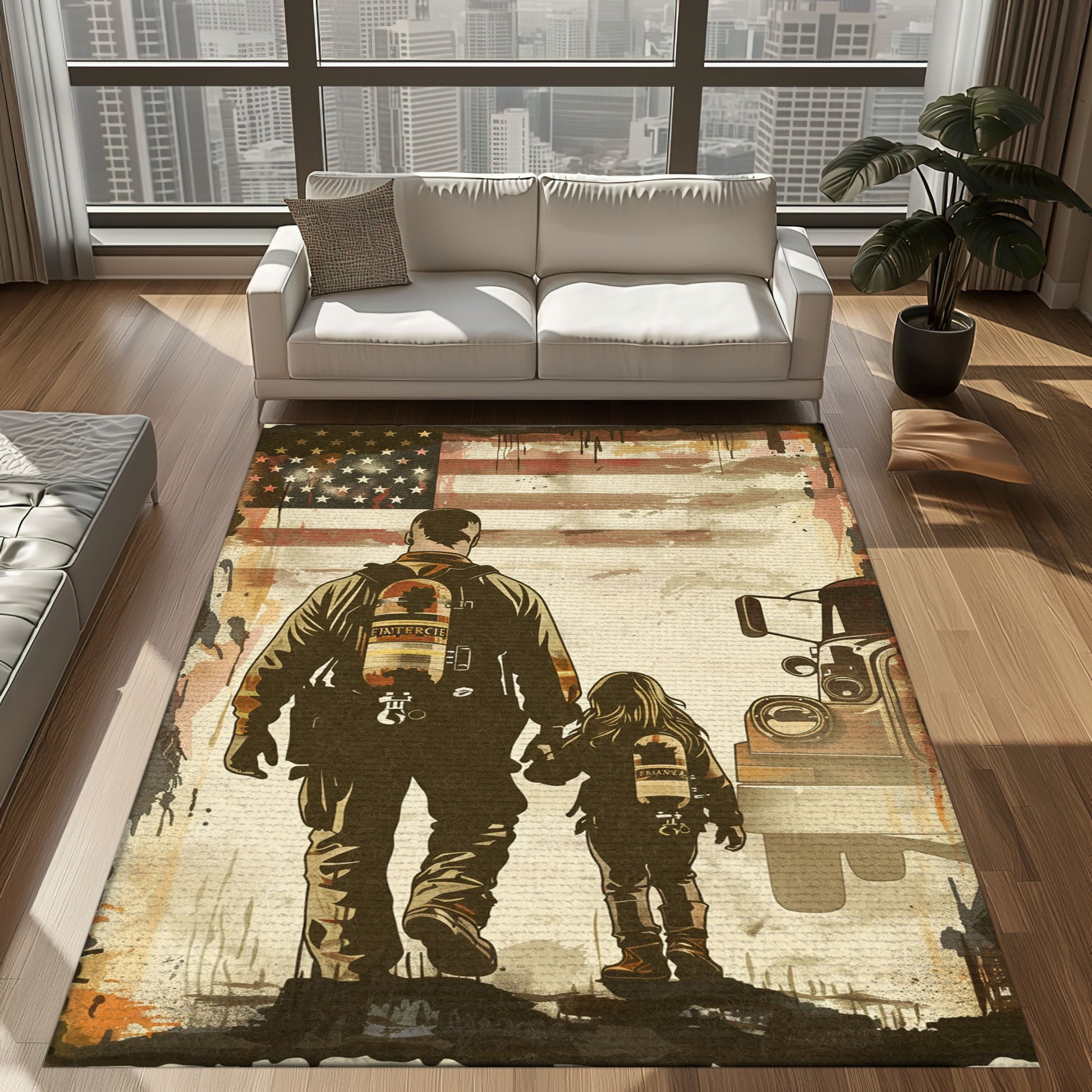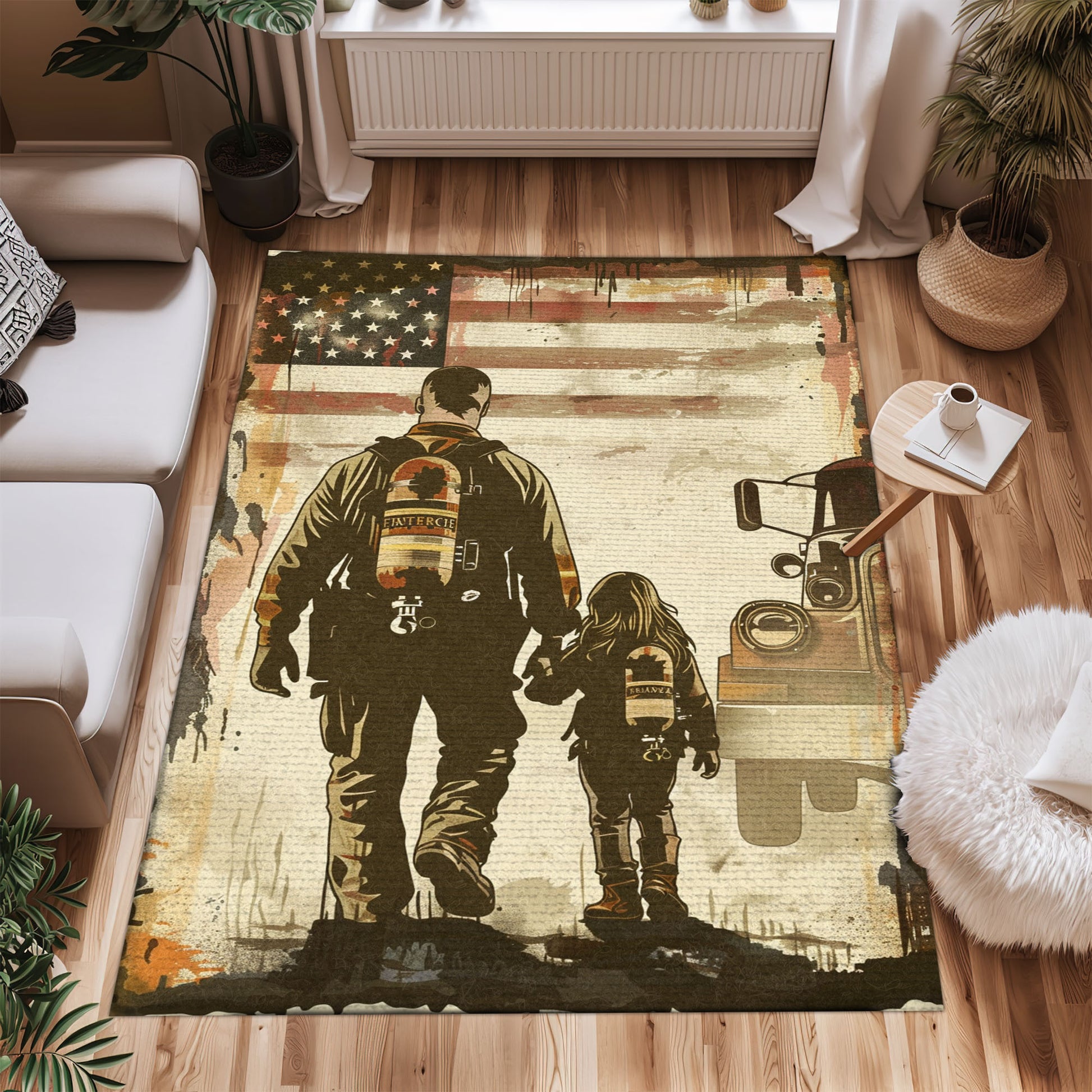 Cherished Moments: Personalized Firefighter Home Decor for Dad and Daughter, Firefighter Rugs for Living Room Bedroom, Firefighter Rectangular Rugs Full Size FR119