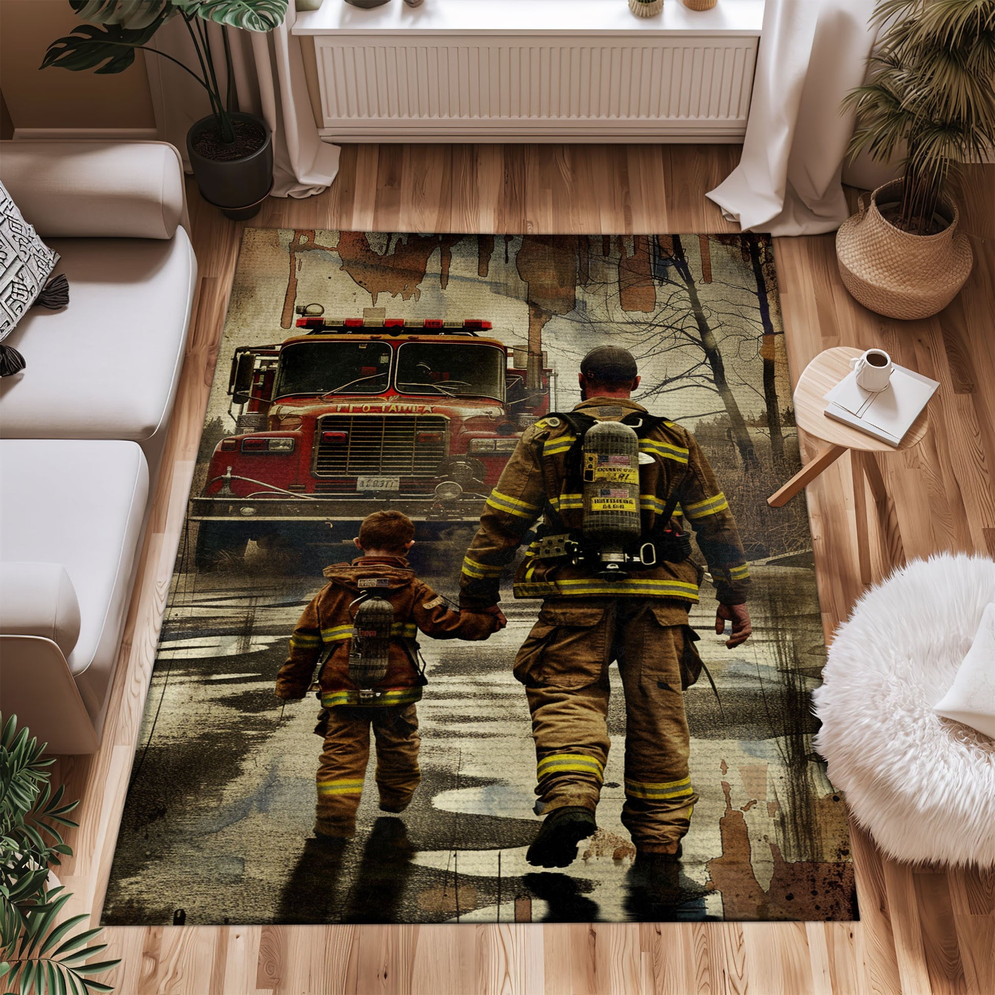 Commemorative Touch: Dad Fire Fighter and Son Firefighter Inspired Personalized Rugs, Firefighter Rugs for Living Room Bedroom, Firefighter Rectangular Rugs Full Size FR89