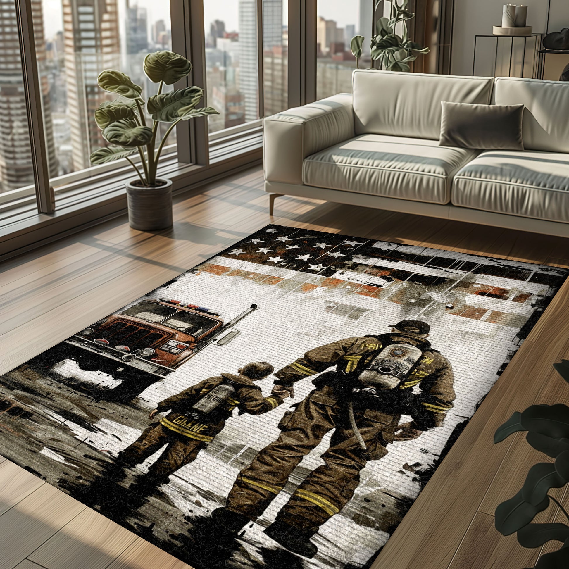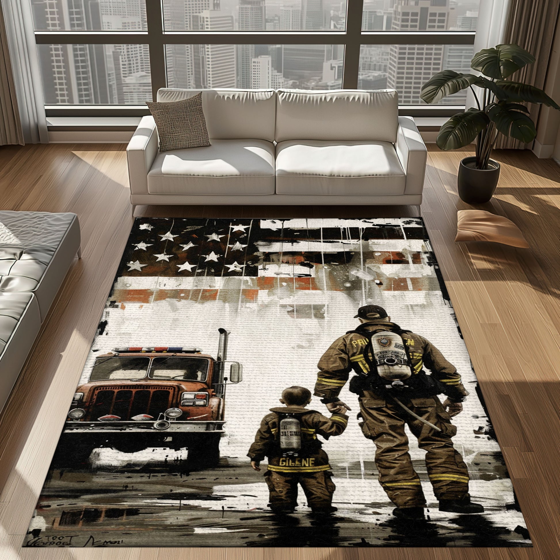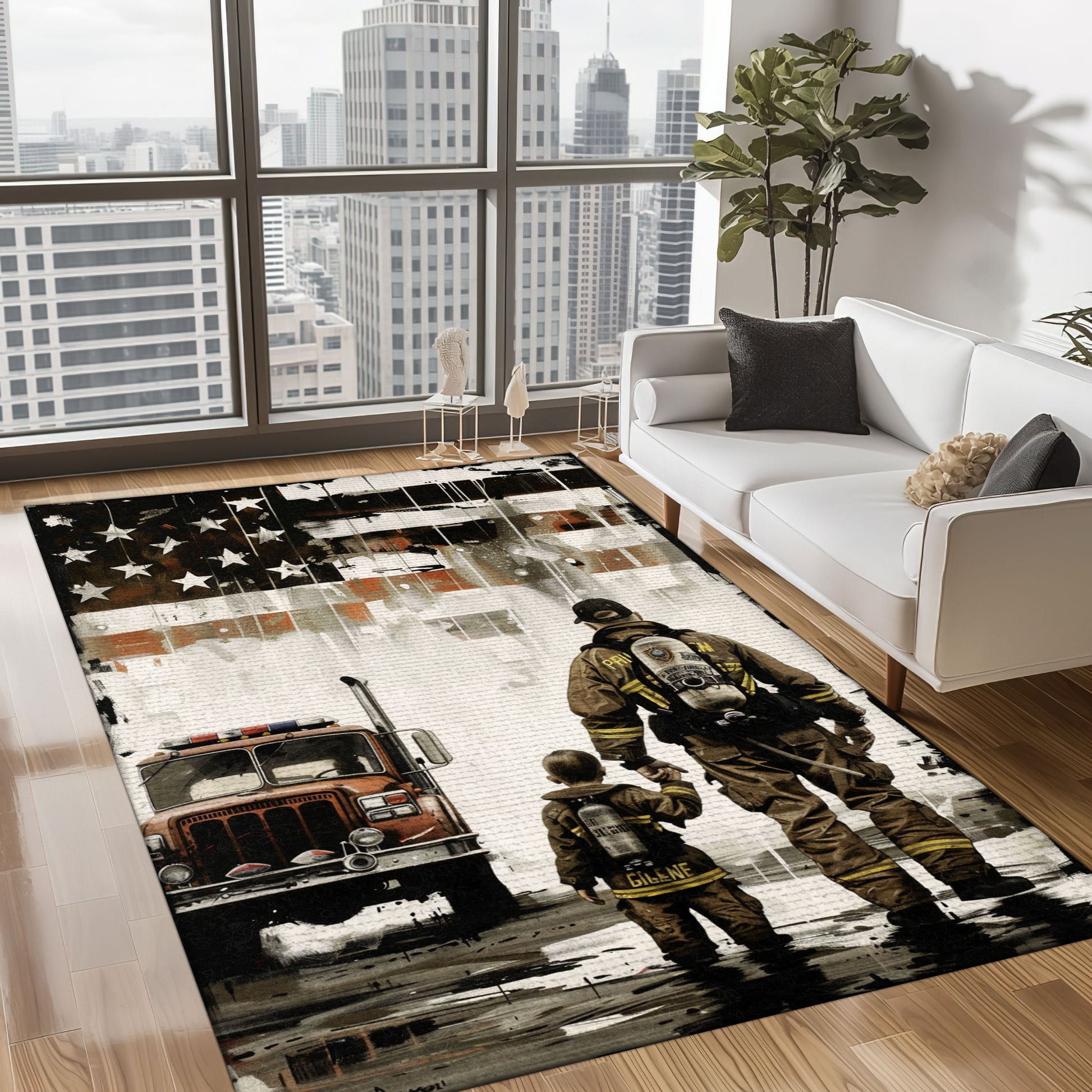 Courageous Firefighter Heroes Custom Carpet: Honor Bravery in Your Home, Firefighter Rugs for Living Room Bedroom, Firefighter Rectangular Rugs Full Size FR70