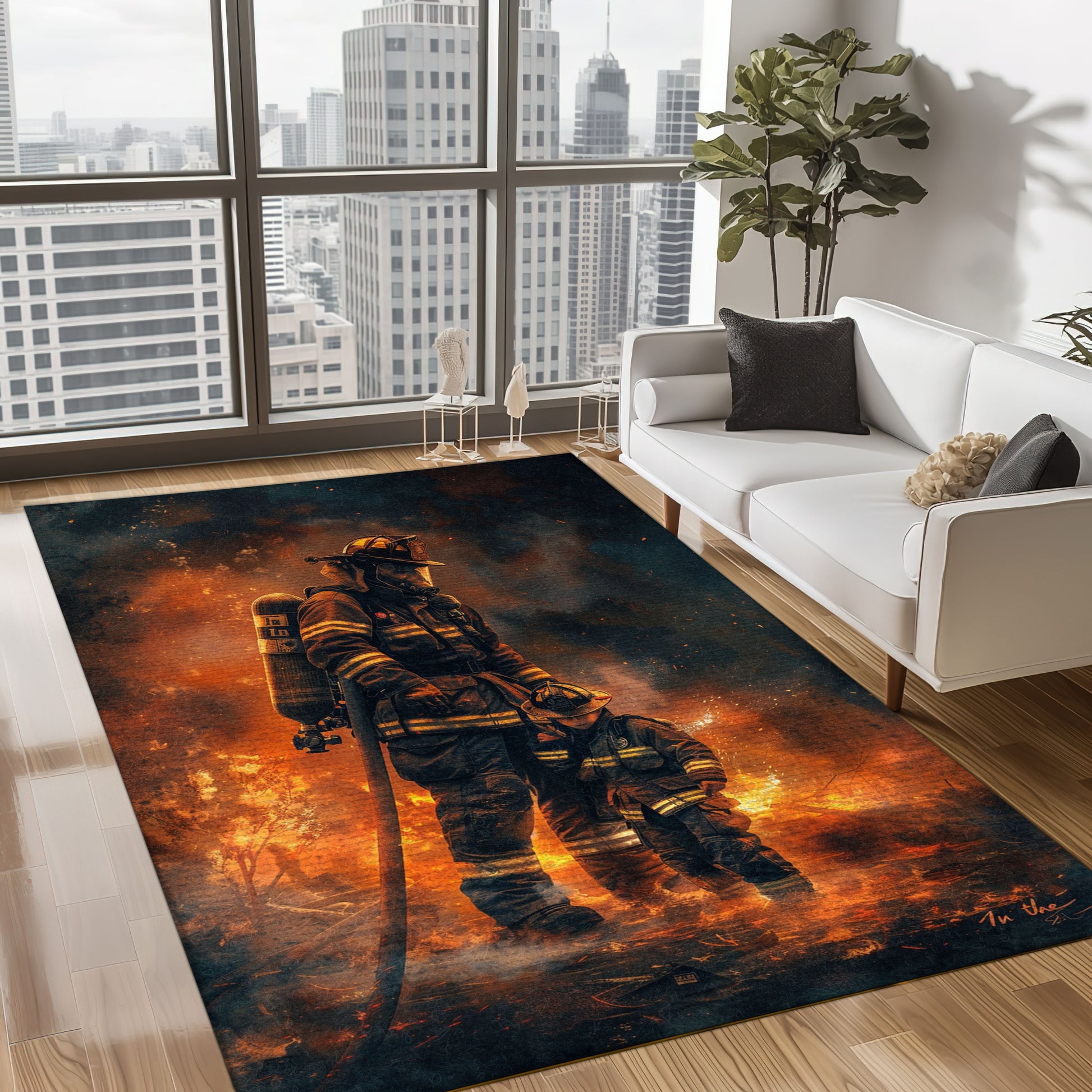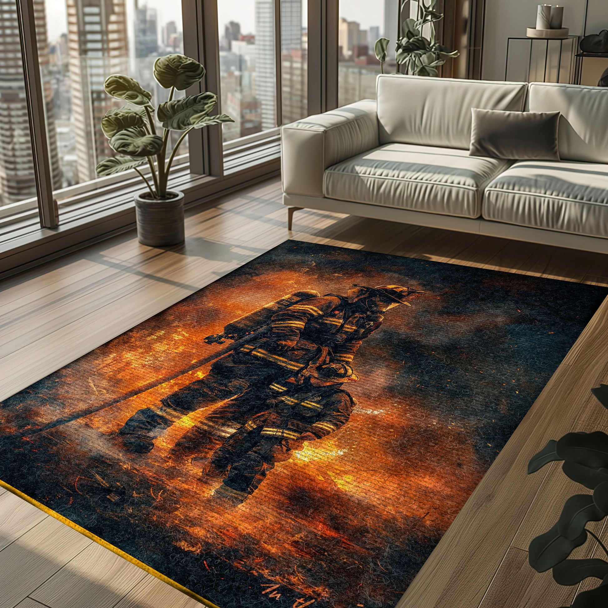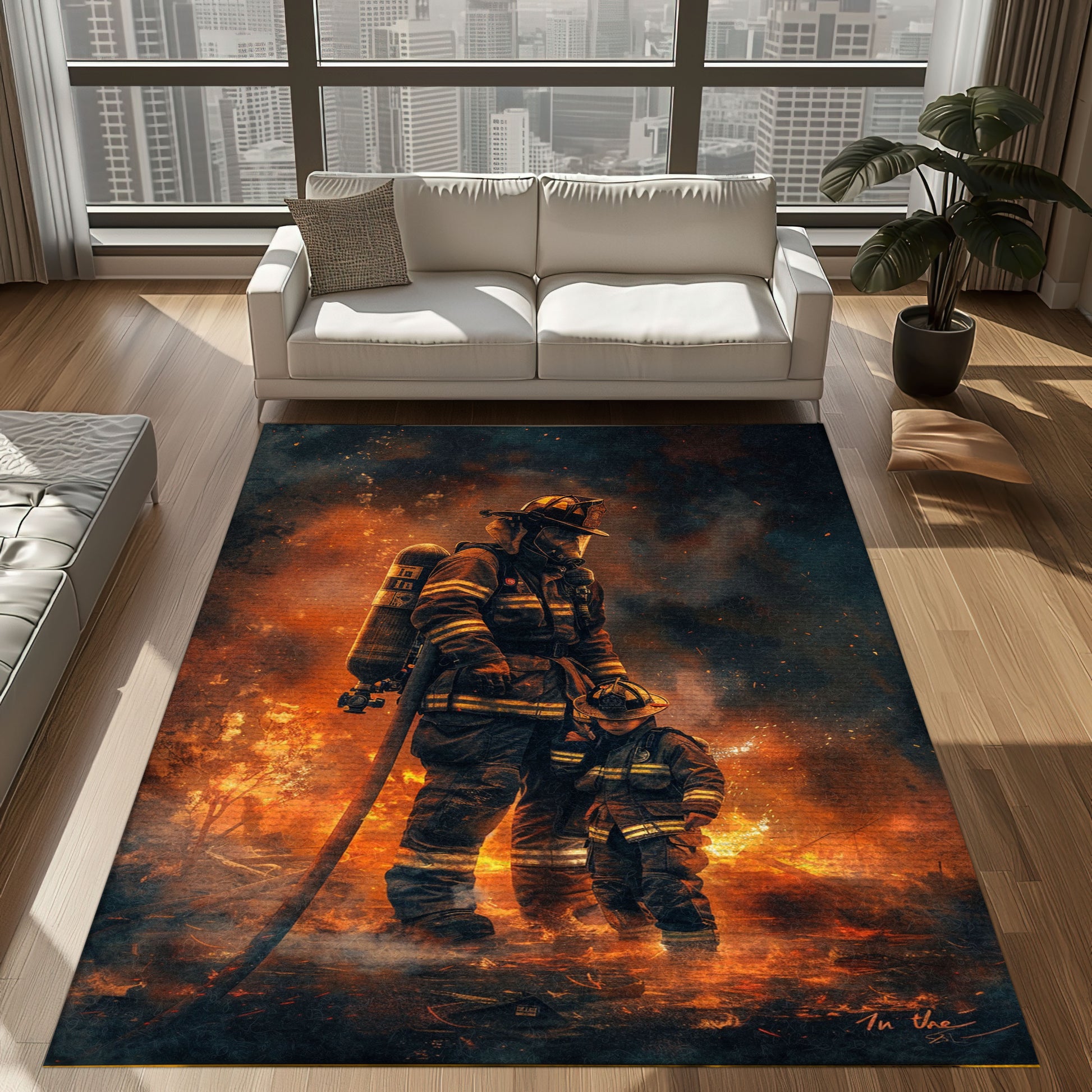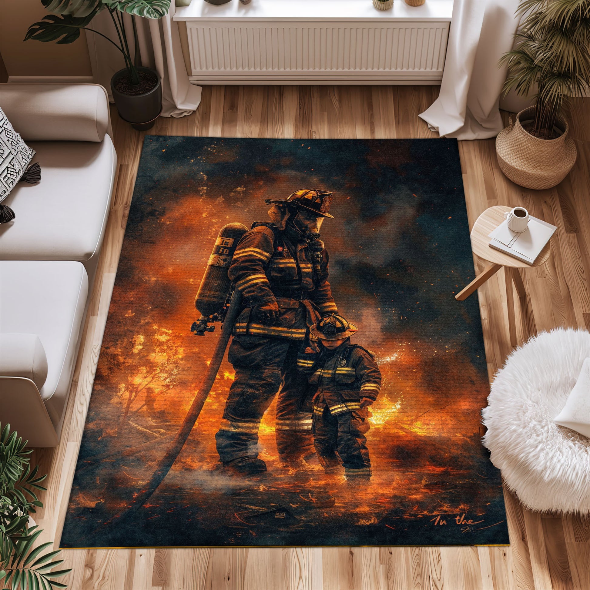 Courageous Legacy: Personalized Father and Son Fire Fighter Rug, Firefighter Rugs for Living Room Bedroom, Firefighter Rectangular Rugs Full Size FR146