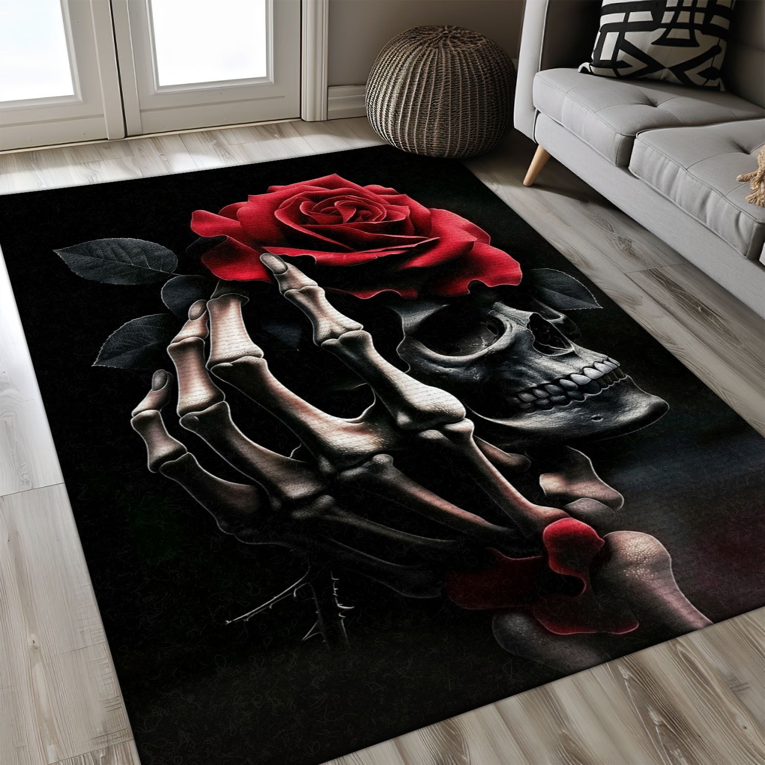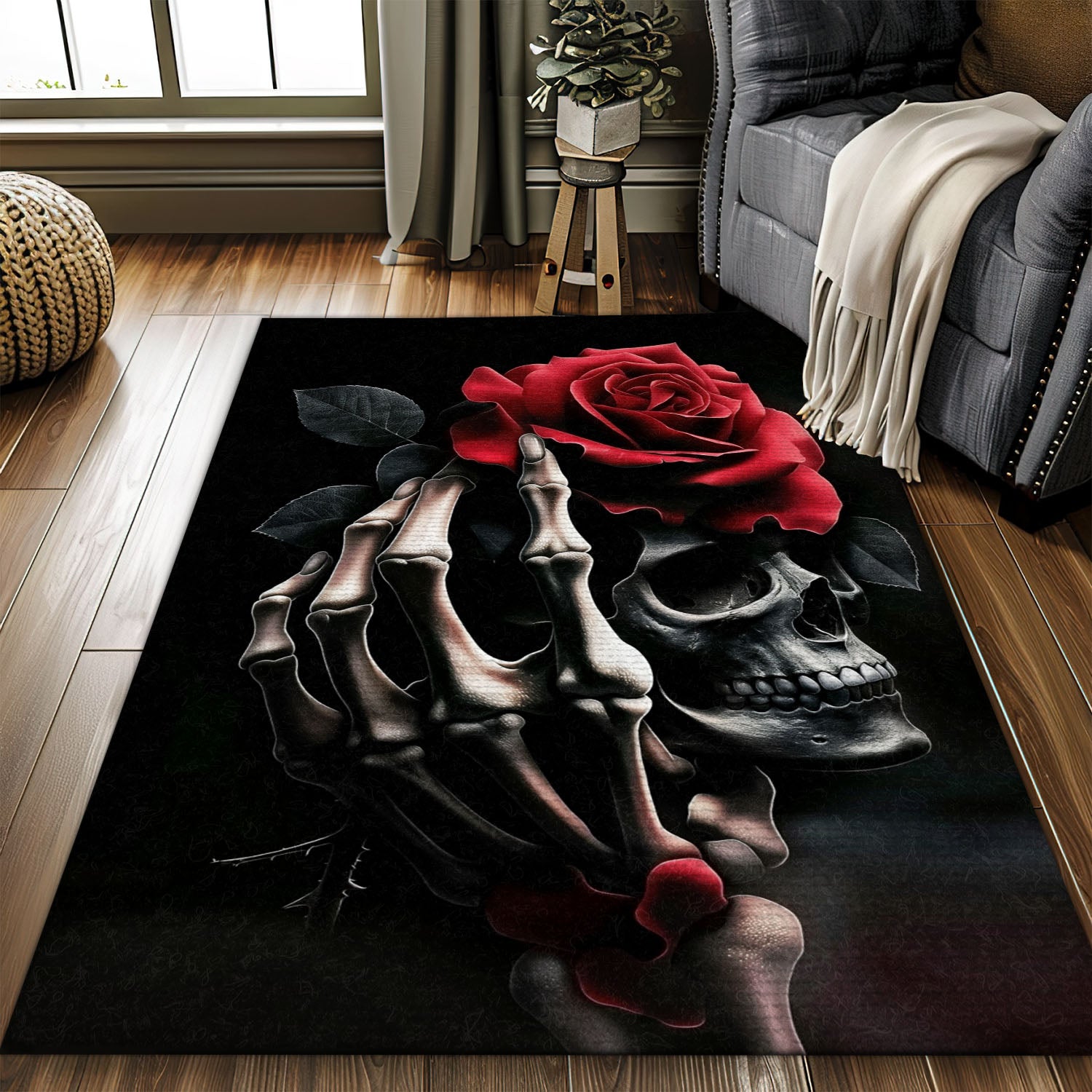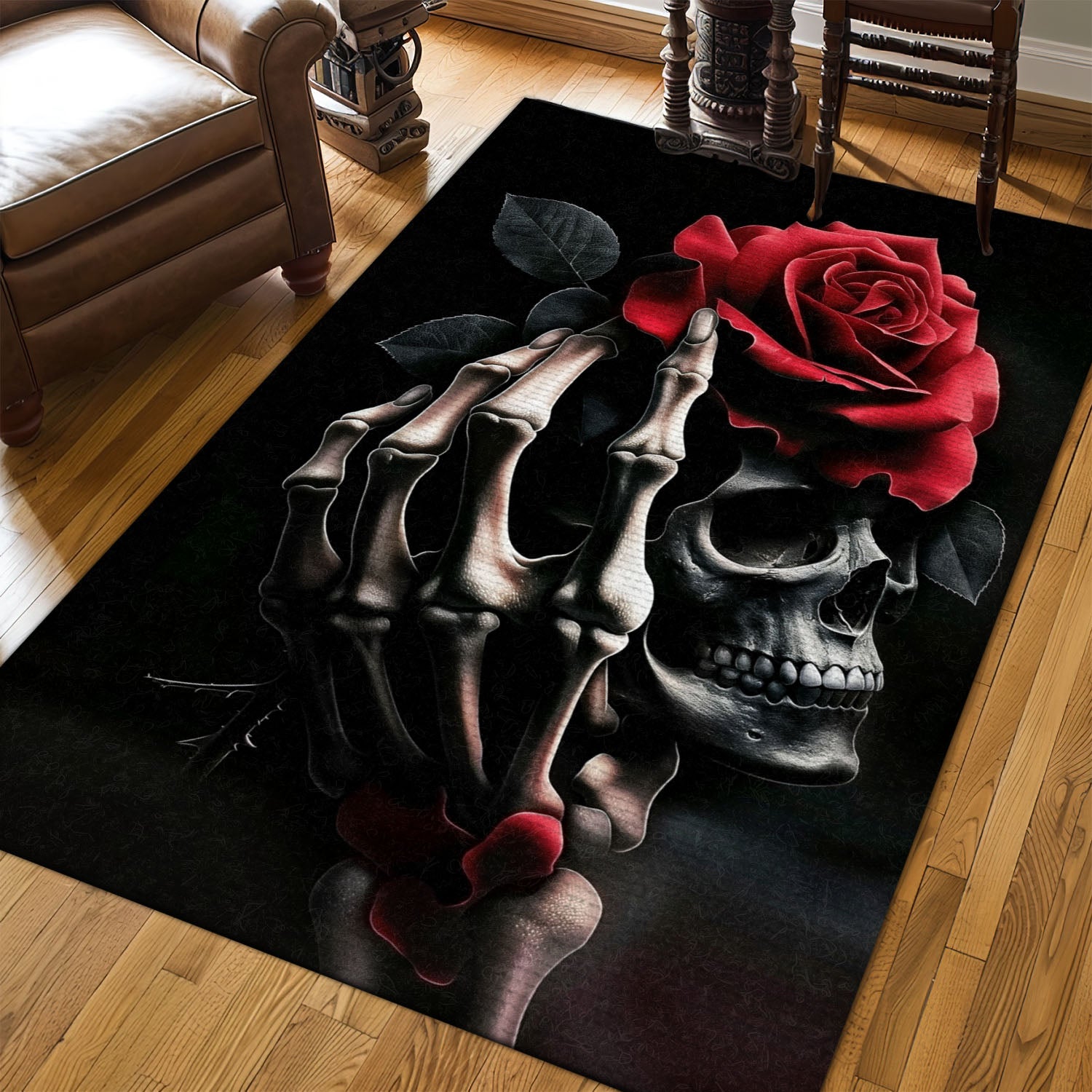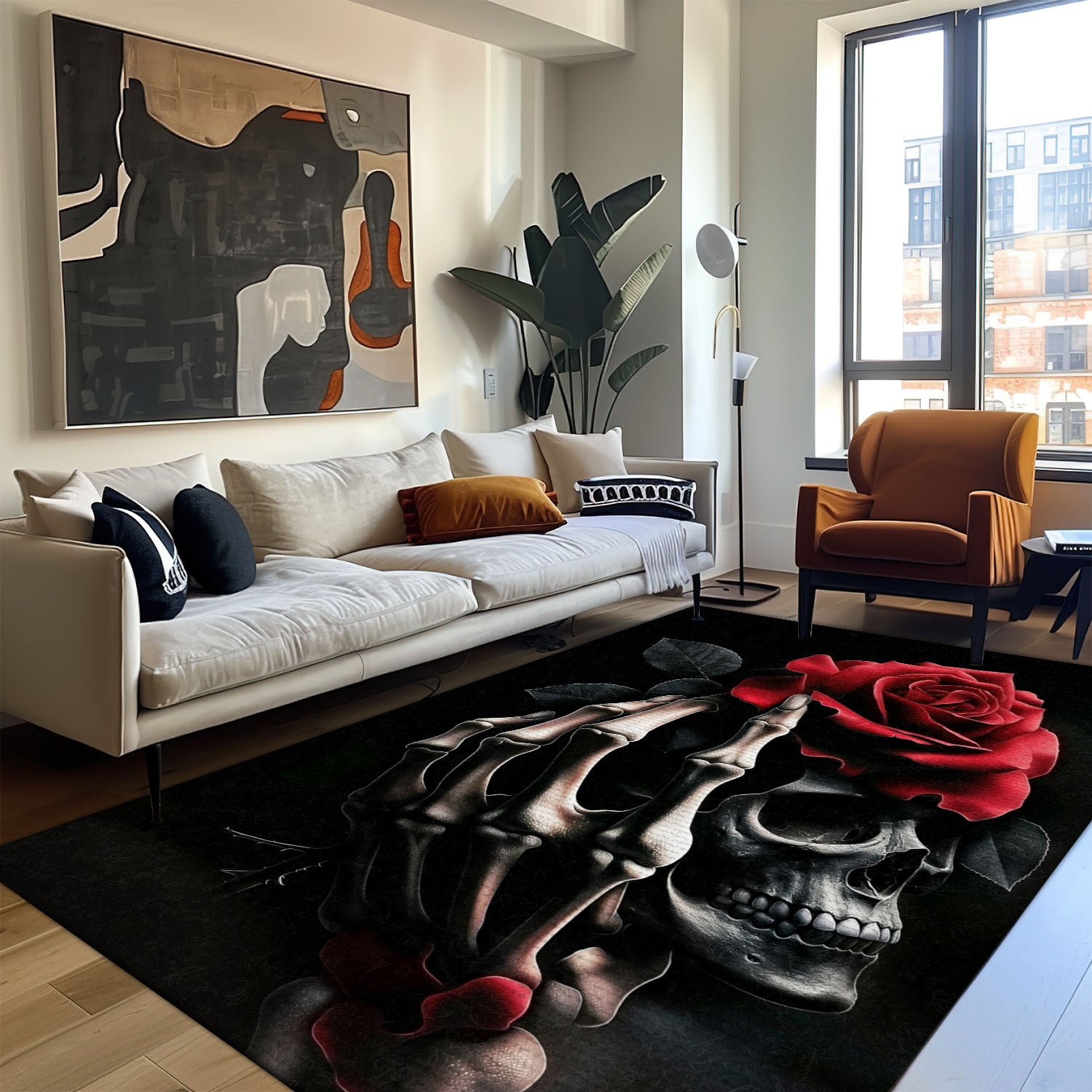 Create a Bold Look in Your Home with a Handbone and Floral Skull Theme Rug, Skull Rug, Area Rugs 5x8, 4x6, 3x5 Size for Living Room Bedroom Home Decorative Skull K13