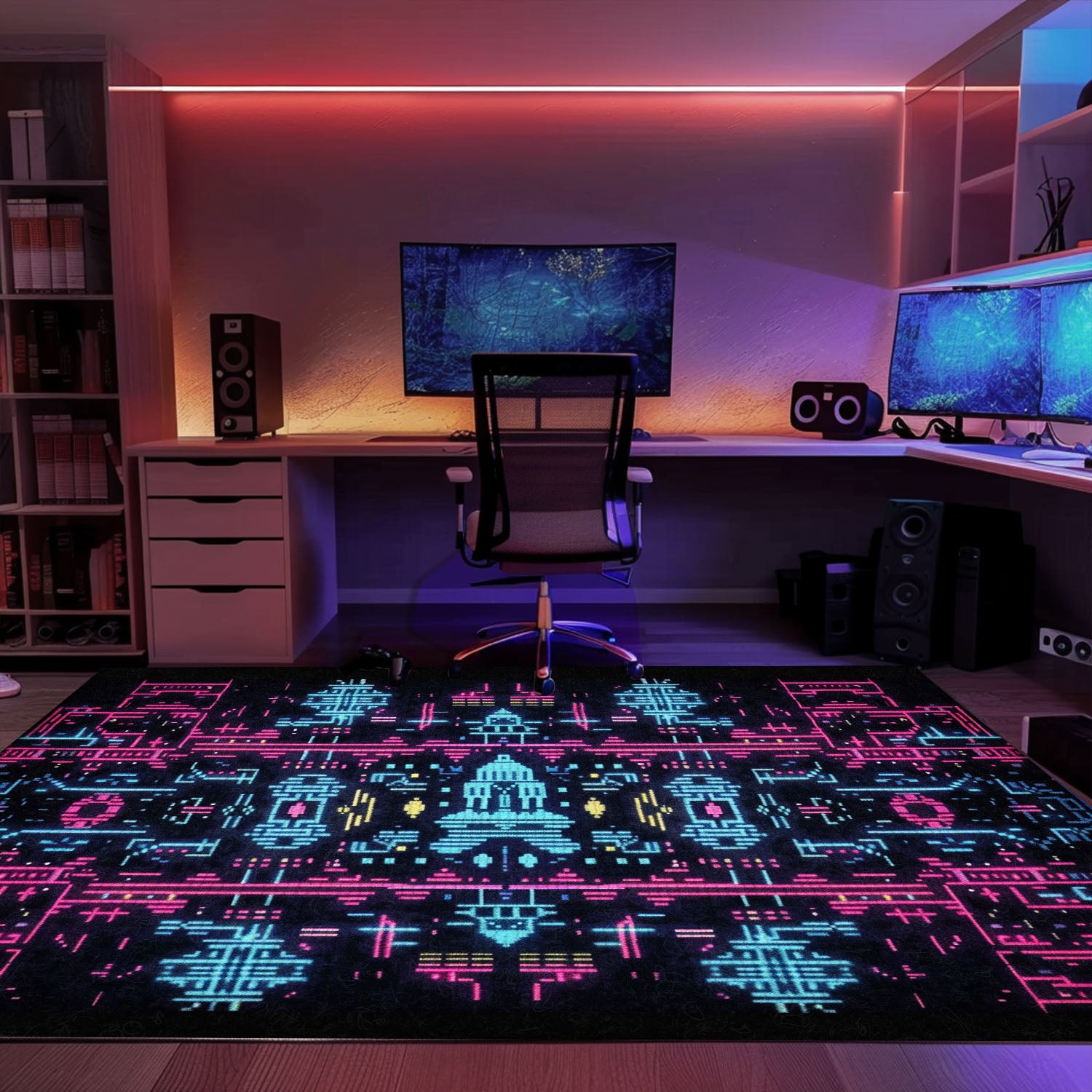 Create a Gaming Paradise in Boys' Rooms with Dark and Neon 80s Arcade NES Game 8bit Rugs, Arcade Decor, Gift for Gamers, Video Game Lovers G279