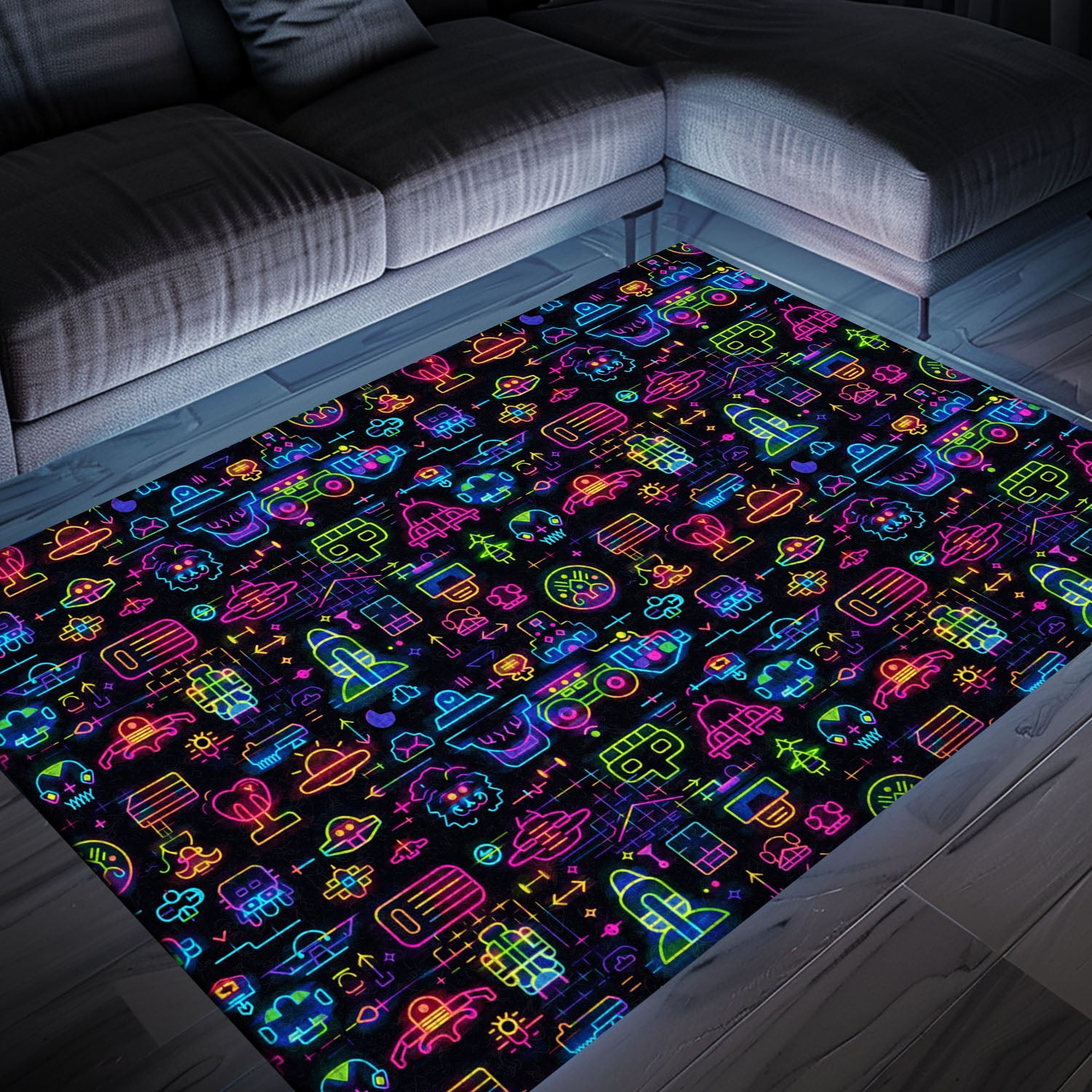 Create the Ultimate Gaming Atmosphere with Dark and Neon 80s Arcade NES Game 8bit Rugs, Arcade Decor, Gift for Gamers, Video Game Lovers G350
