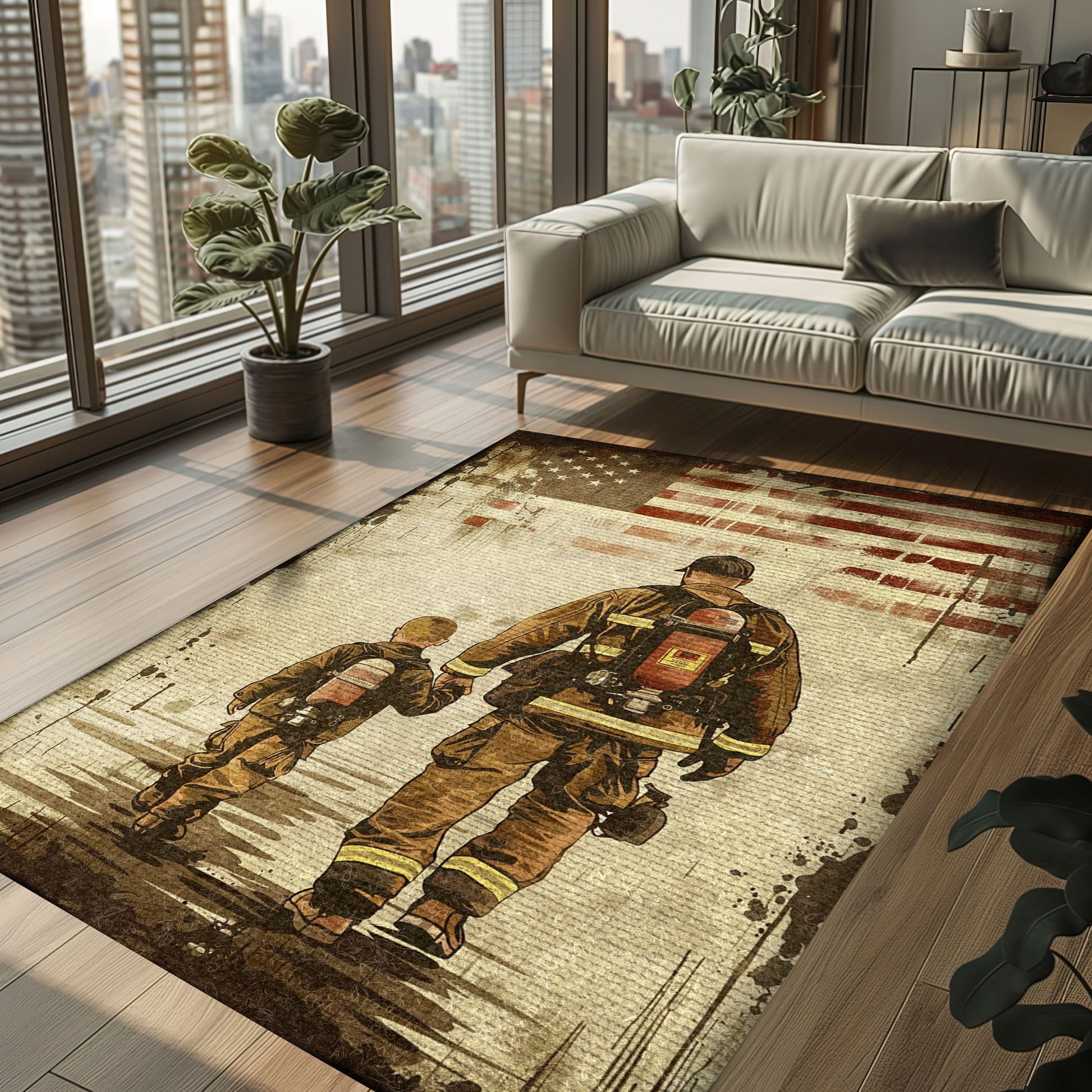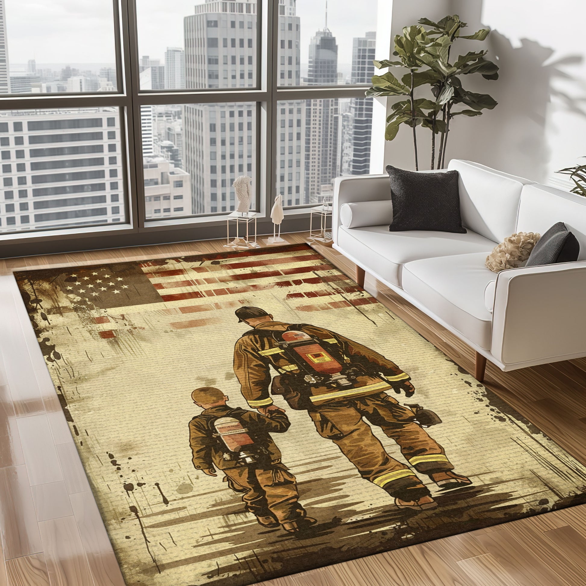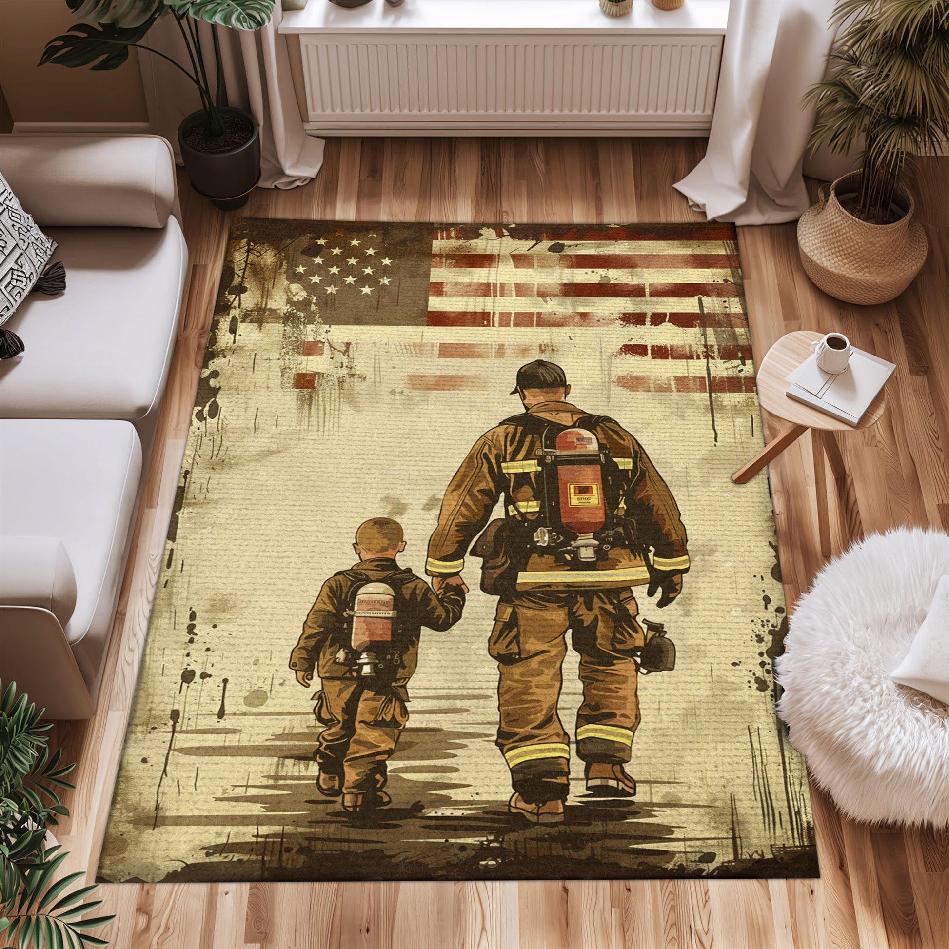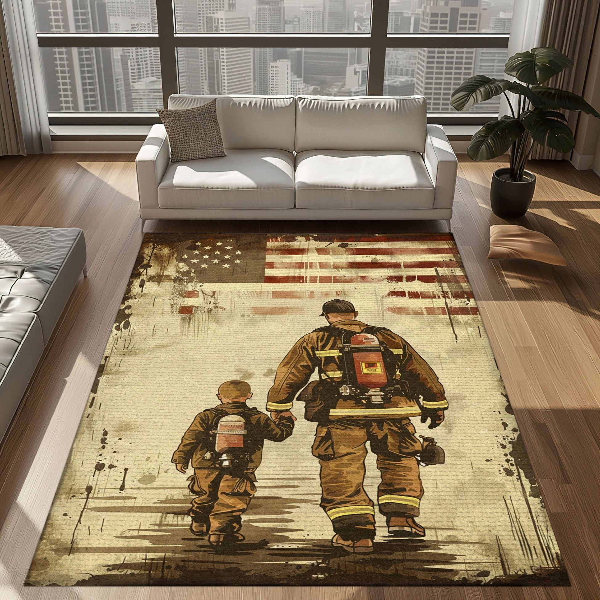 Dad Fire Fighter and Son: Symbolic Fireman Carpet for Home, Firefighter Rugs for Living Room Bedroom, Firefighter Rectangular Rugs Full Size FR84