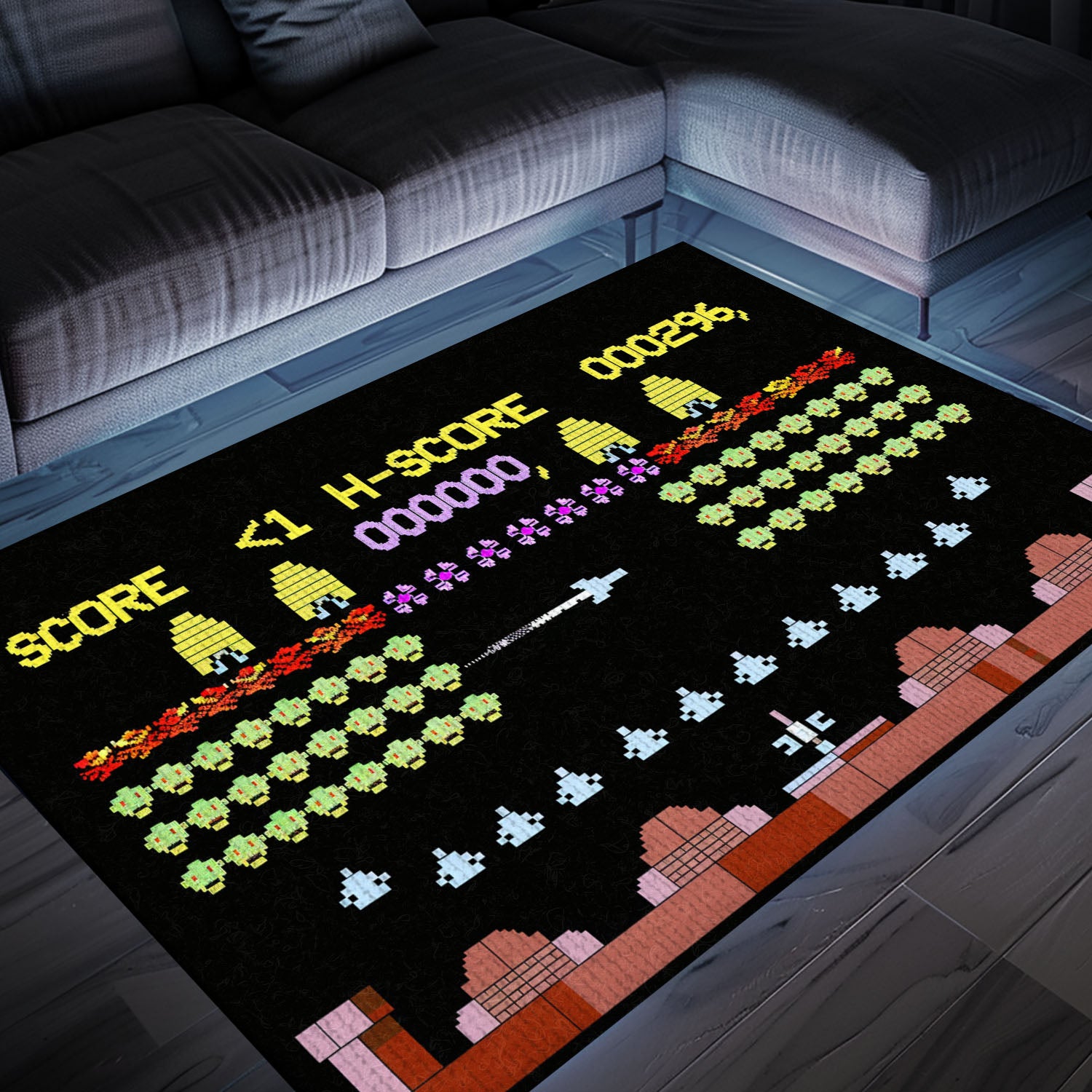 Dark and Neon 80s Arcade Area Rug adorned with Space Invaders: Ideal for Adding Nostalgia to Your Living Space, Arcade Decor, Gift for Gamers, Video Game Lovers G157