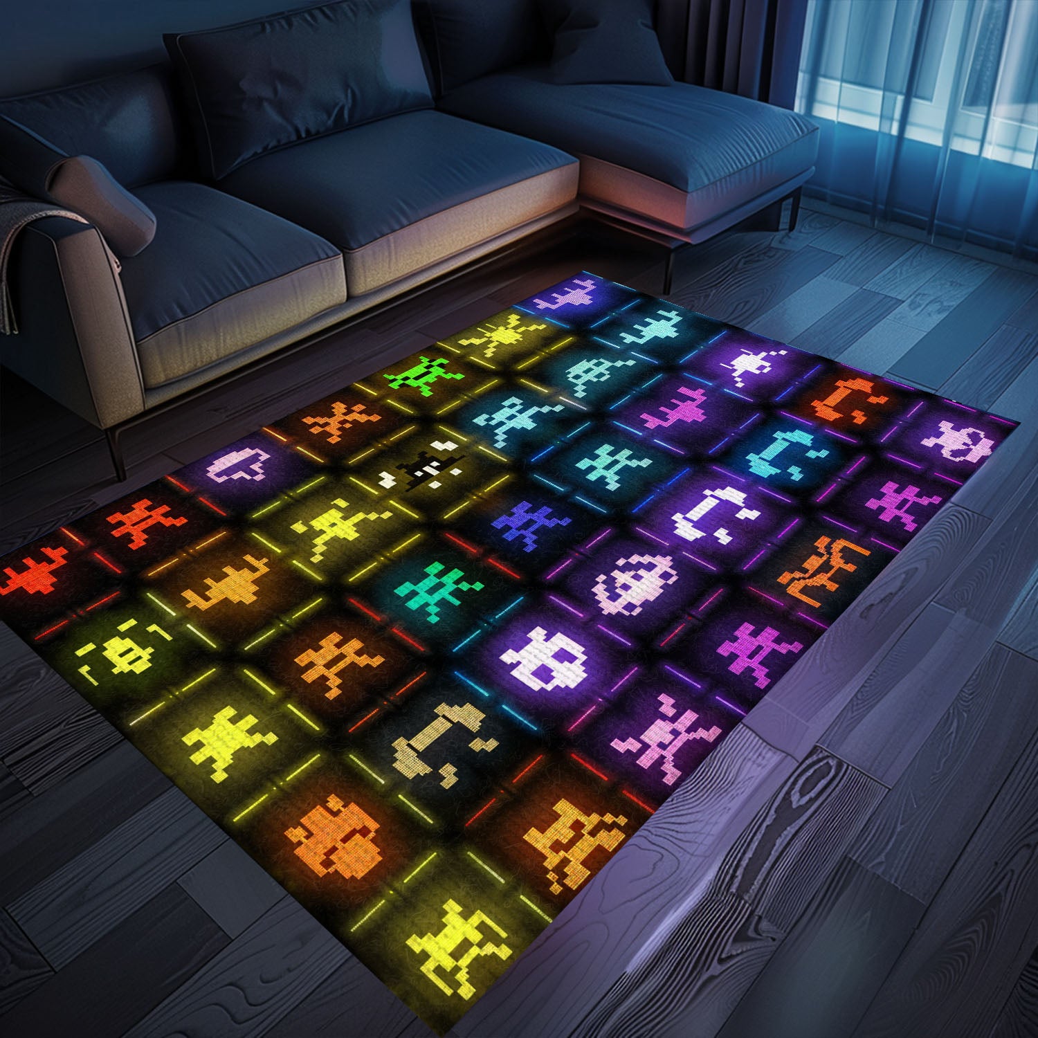 Dark and Neon 80s Arcade Carpet featuring Space Invaders: Perfect for Adding a Touch of Gaming to Your Decor, Arcade Decor, Gift for Gamers, Video Game Lovers G150