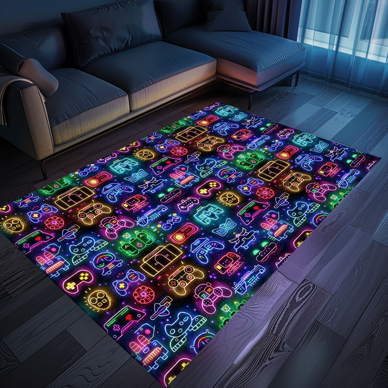 Dark and Neon 80s Arcade NES Game 8bit Area Rug: Redefining Home Entertainment, Arcade Decor, Gift for Gamers, Video Game Lovers G313