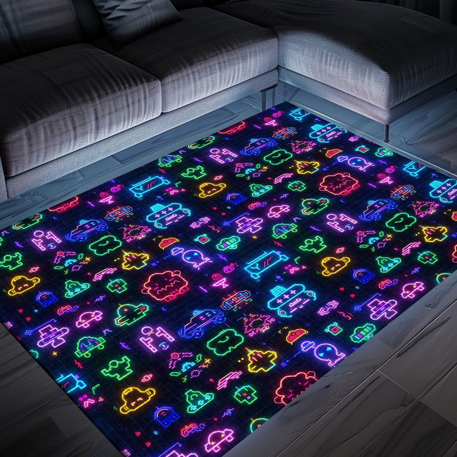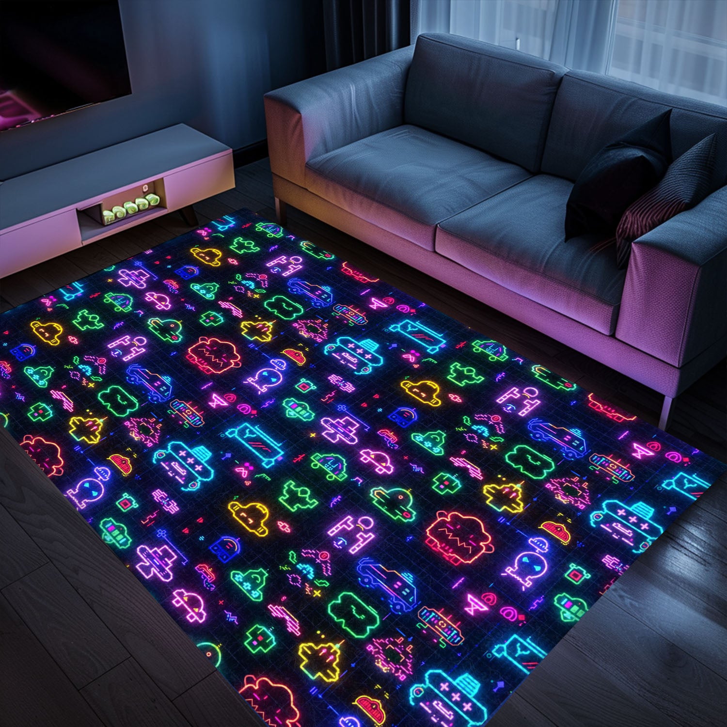 Dark and Neon 80s Arcade NES Game 8bit Area Rug: The Perfect Gift for Gamers of All Ages, Arcade Decor, Gift for Gamers, Video Game Lovers G324