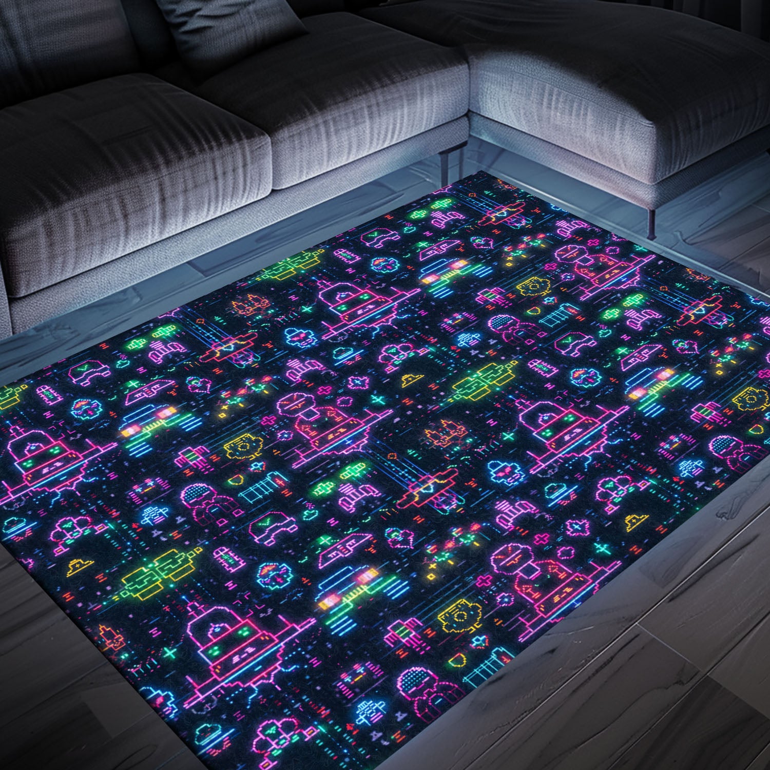 Dark and Neon 80s Arcade NES Game 8bit Rugs: Enhance Your Home Gaming Experience, Arcade Decor, Gift for Gamers, Video Game Lovers G336
