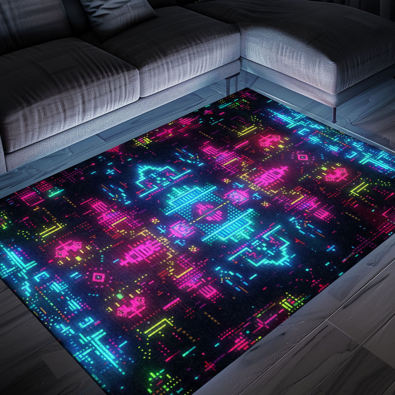 Dark and Neon 80s Arcade NES Game 8bit Rugs: Revamp Your Living Space with Retro Flair, Arcade Decor, Gift for Gamers, Video Game Lovers G355