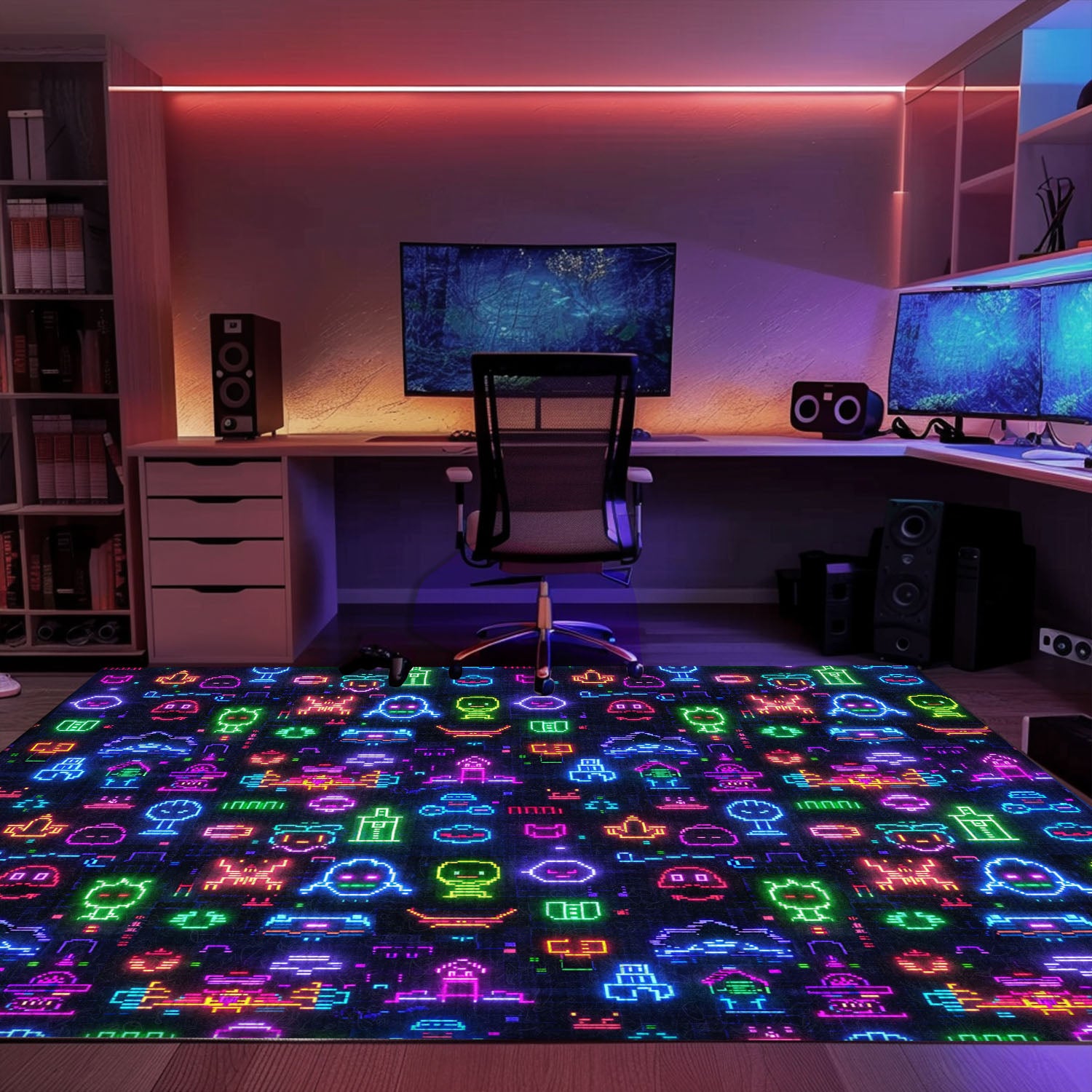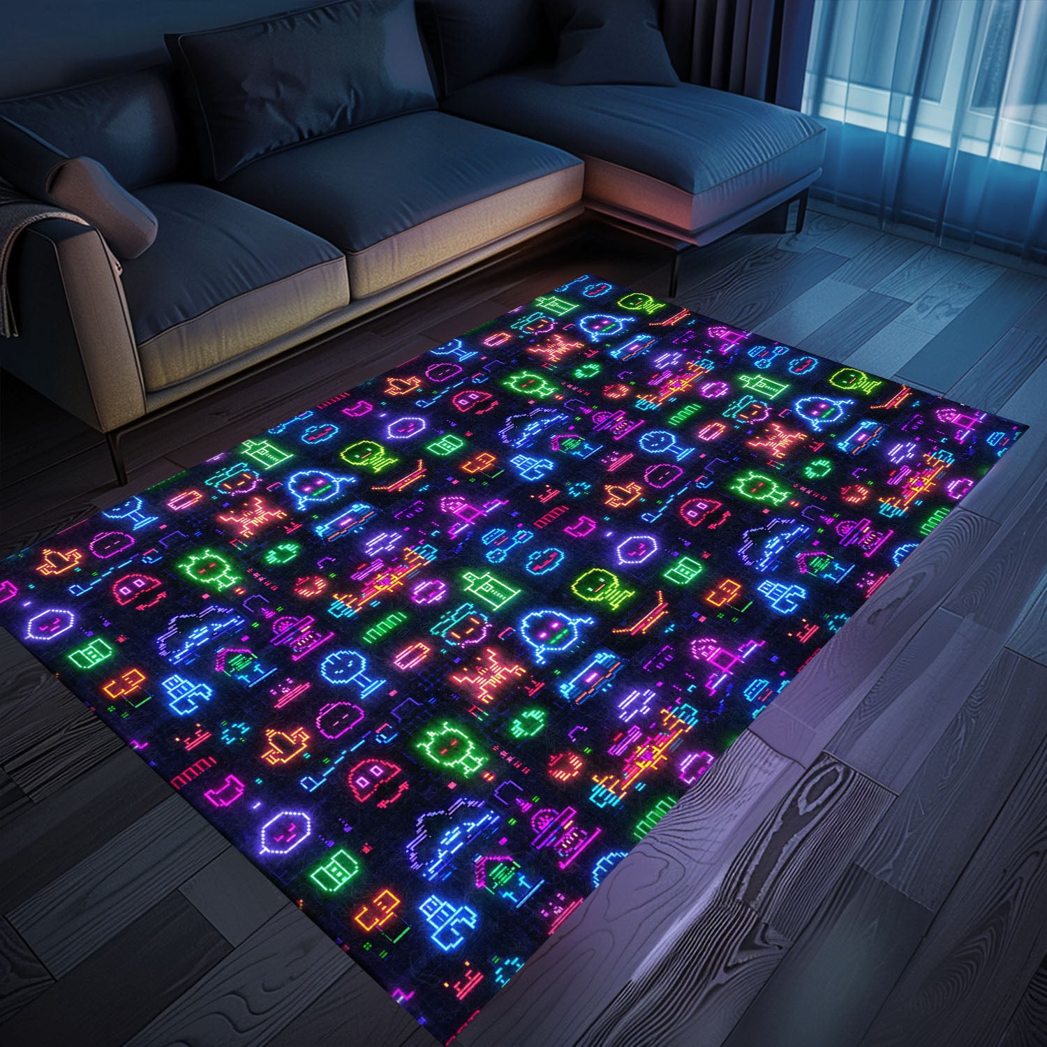 Dark and Neon 80s Arcade NES Game 8bit Rugs: The Perfect Décor for Gaming Enthusiasts, Arcade Decor, Gift for Gamers, Video Game Lovers G338