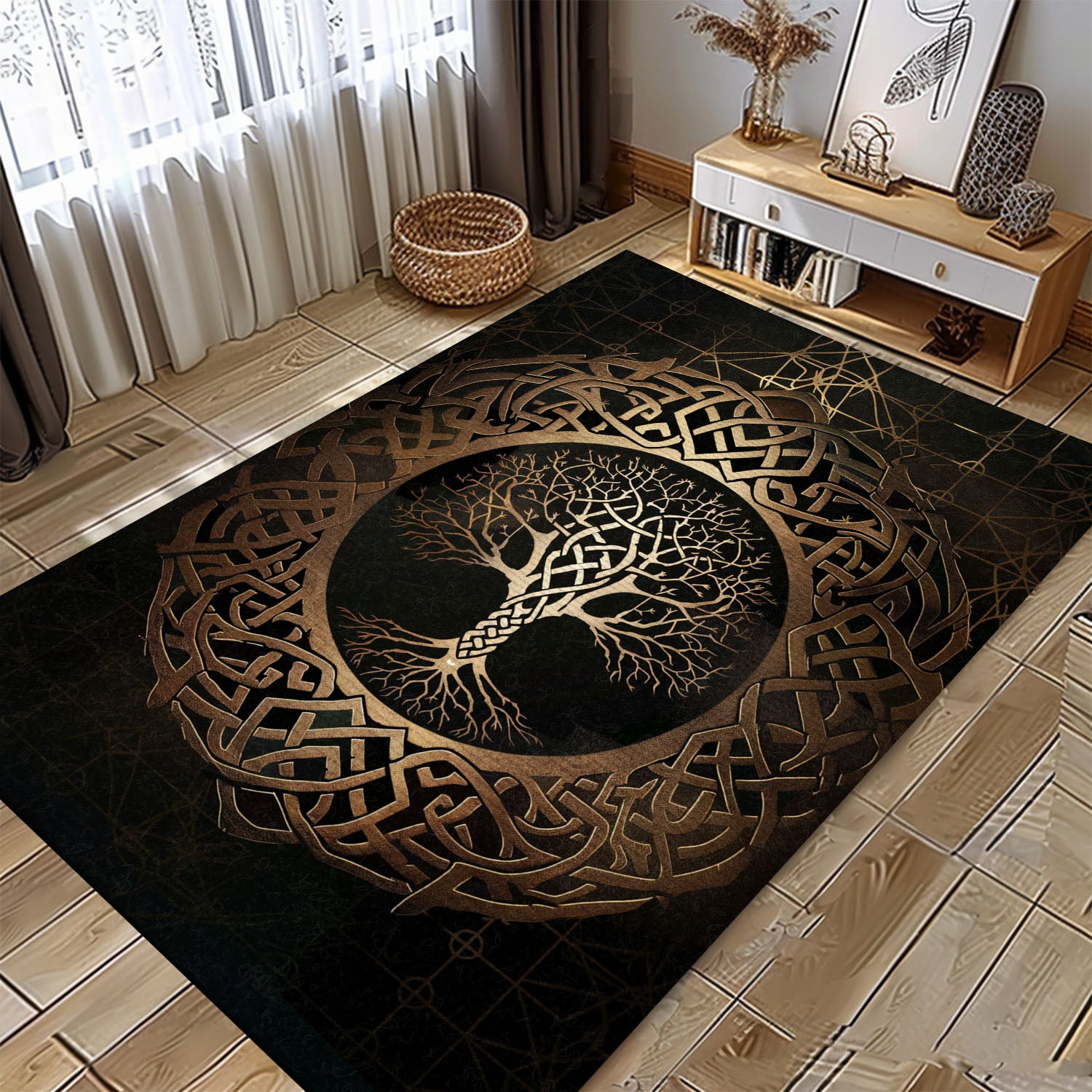 Decorative Celtic Tree of Life Viking Rug – Perfect for Adding a Historical Touch to Your Living Space, Personalized Carpet Viking, Popular Rug Full Size (3x5, 4x6, 5x8) V13