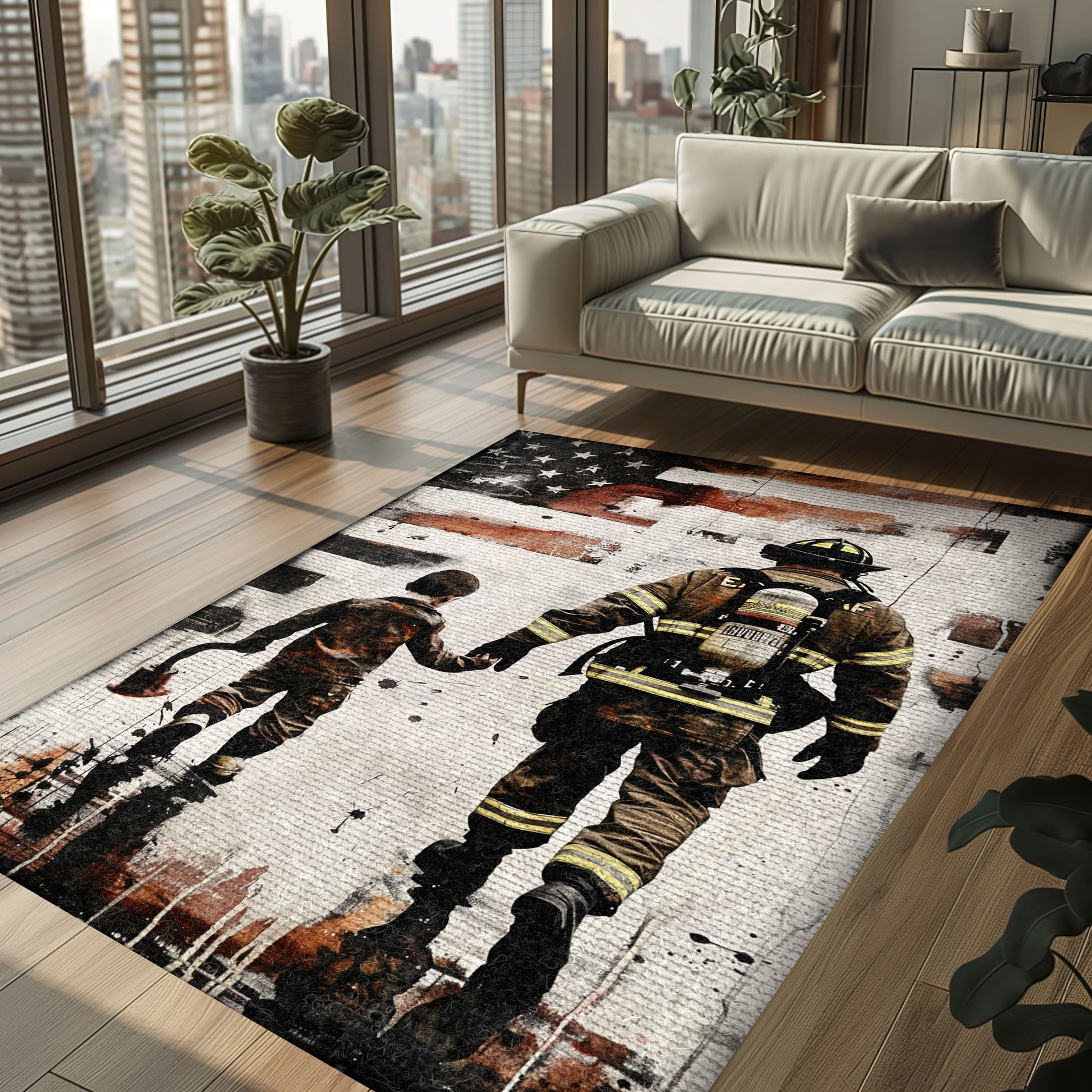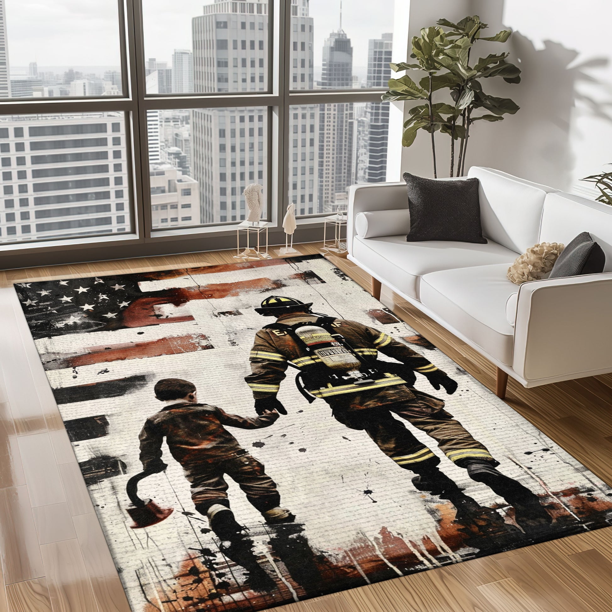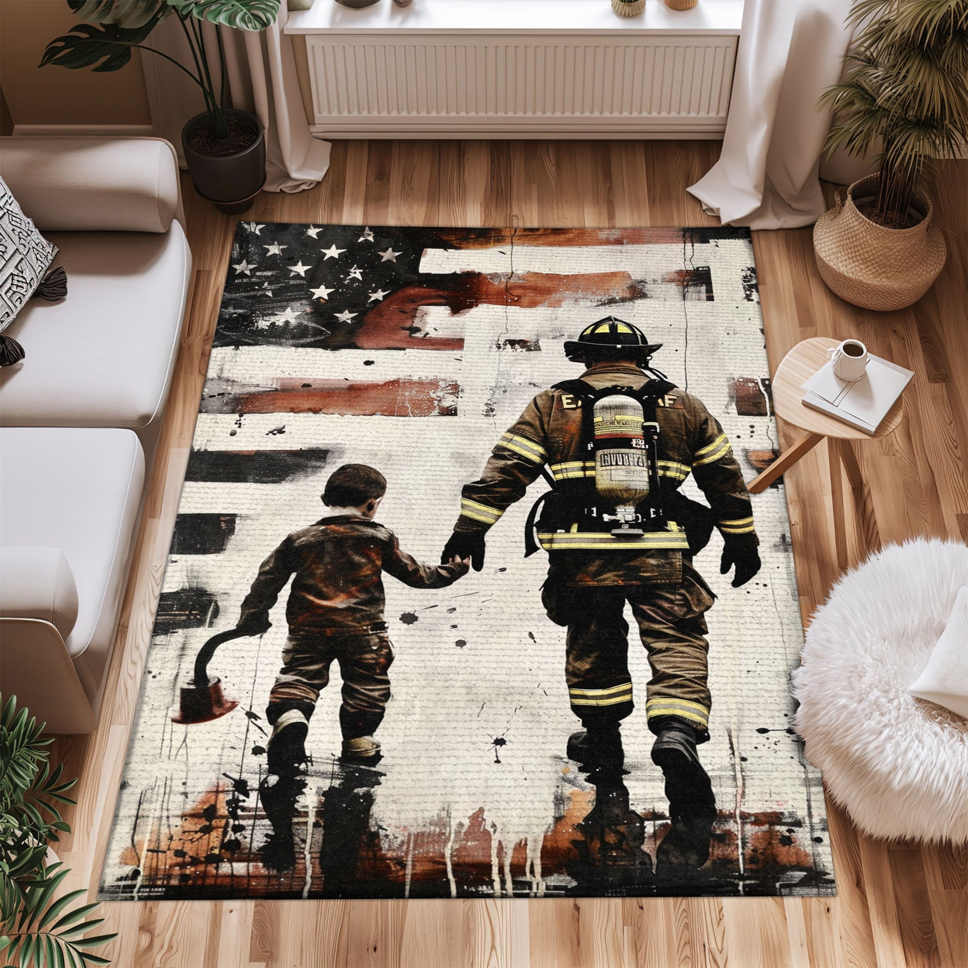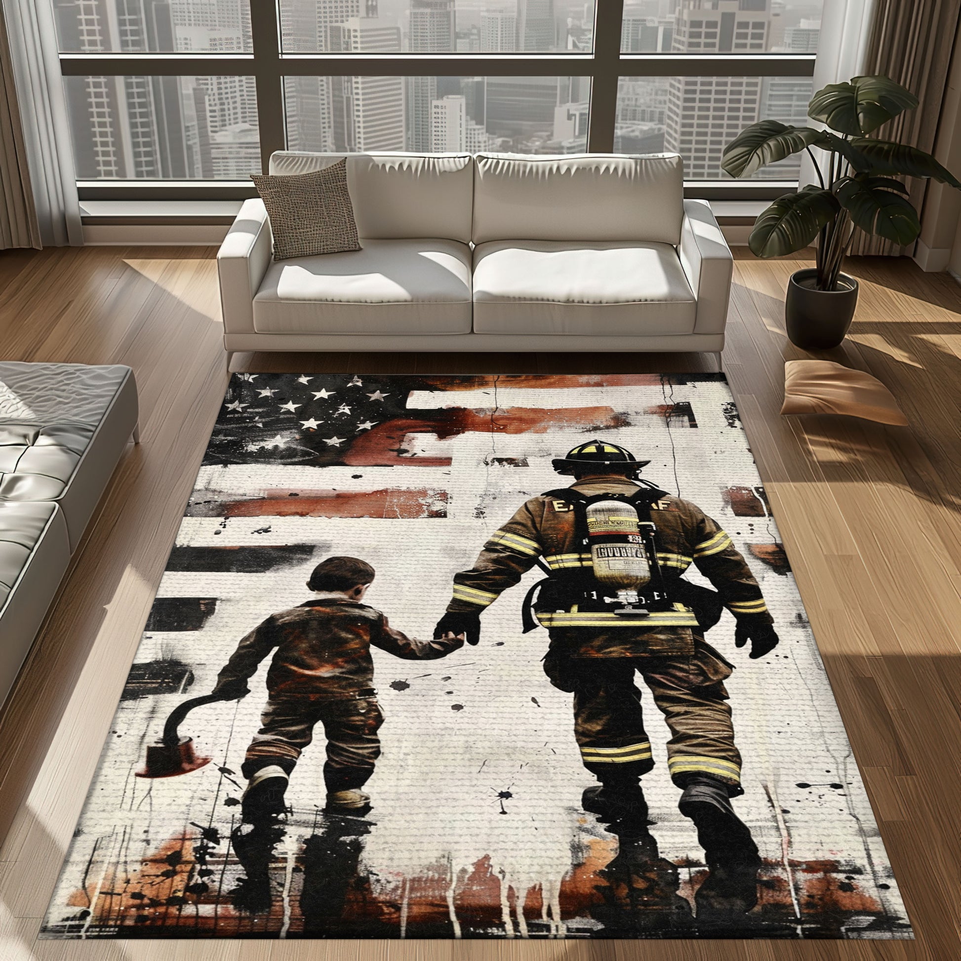 Dynamic Dad Firefighter and Son Personalized Rug: Symbolize Family and Heroism, Firefighter Rugs for Living Room Bedroom, Firefighter Rectangular Rugs Full Size FR71
