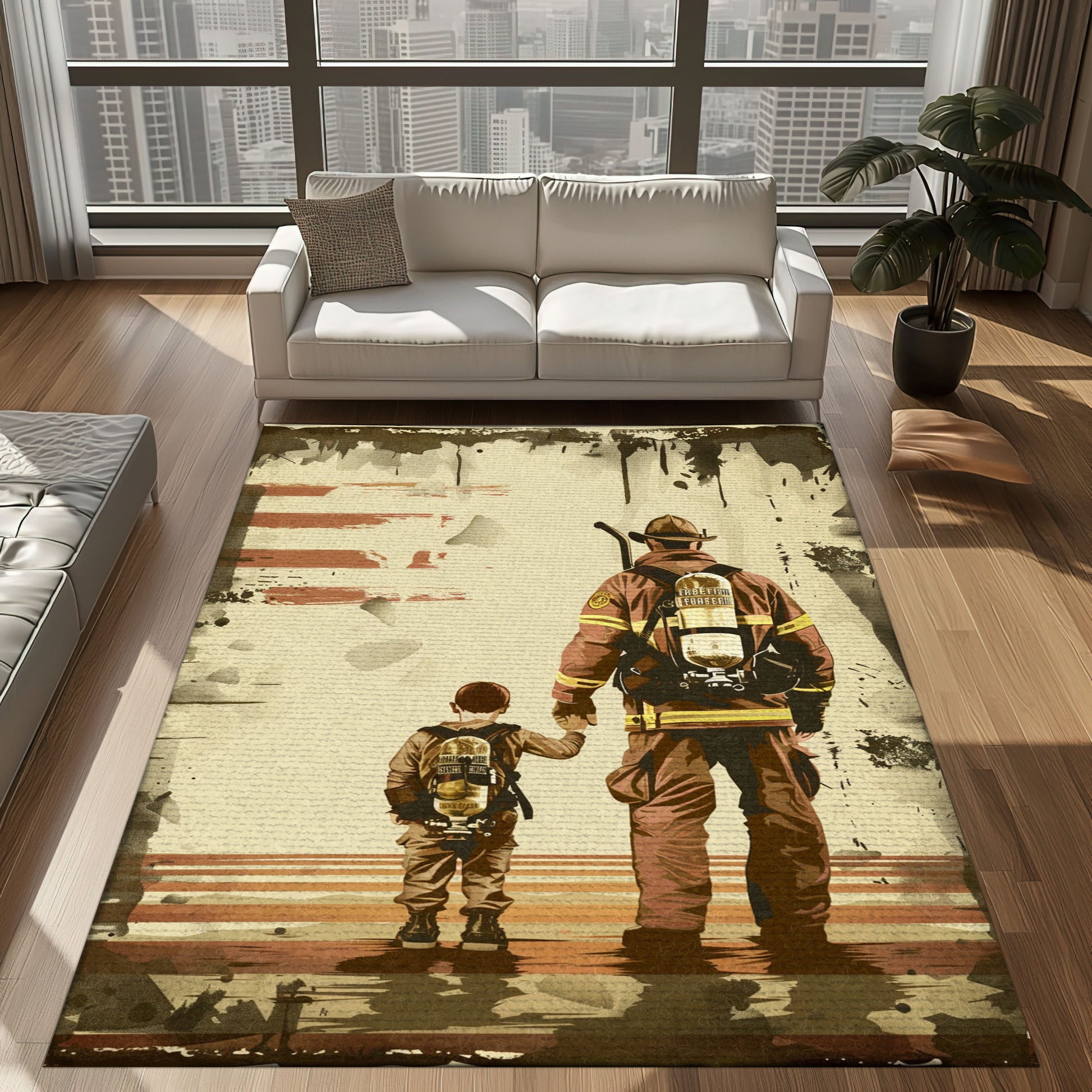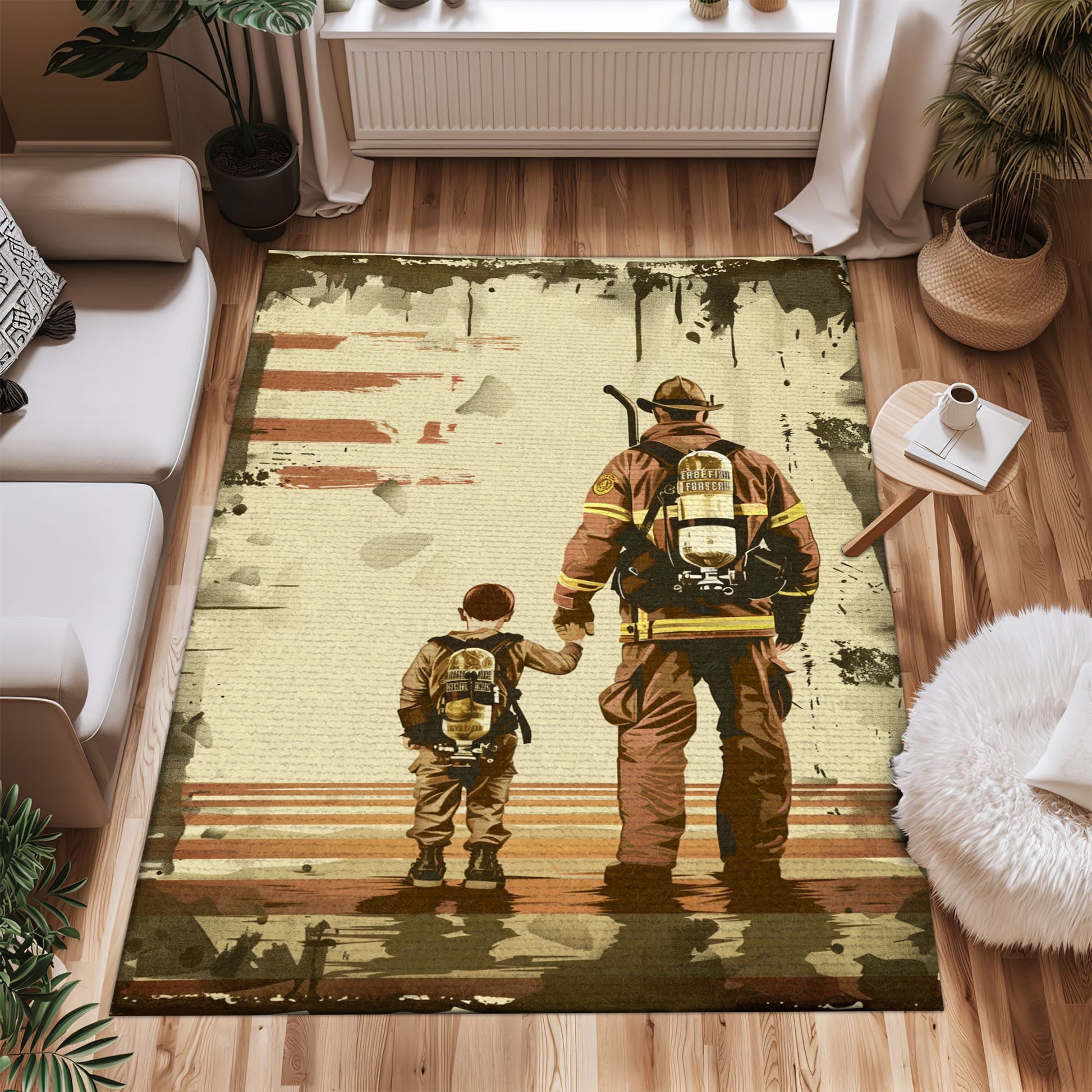 Dynamic Firefighter Heroes Design Personalized Rug: Symbolize Courage and Dedication, Firefighter Rugs for Living Room Bedroom, Firefighter Rectangular Rugs Full Size FR78