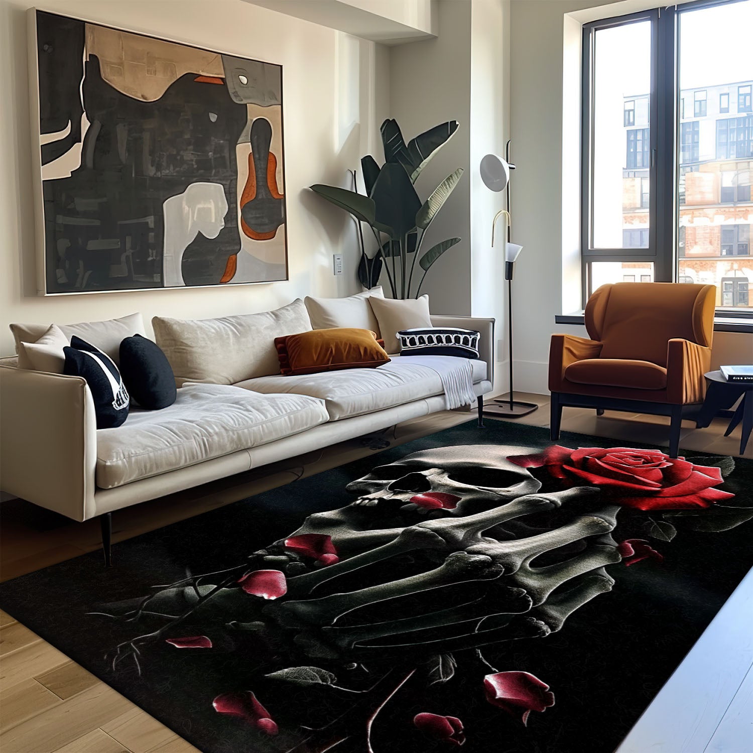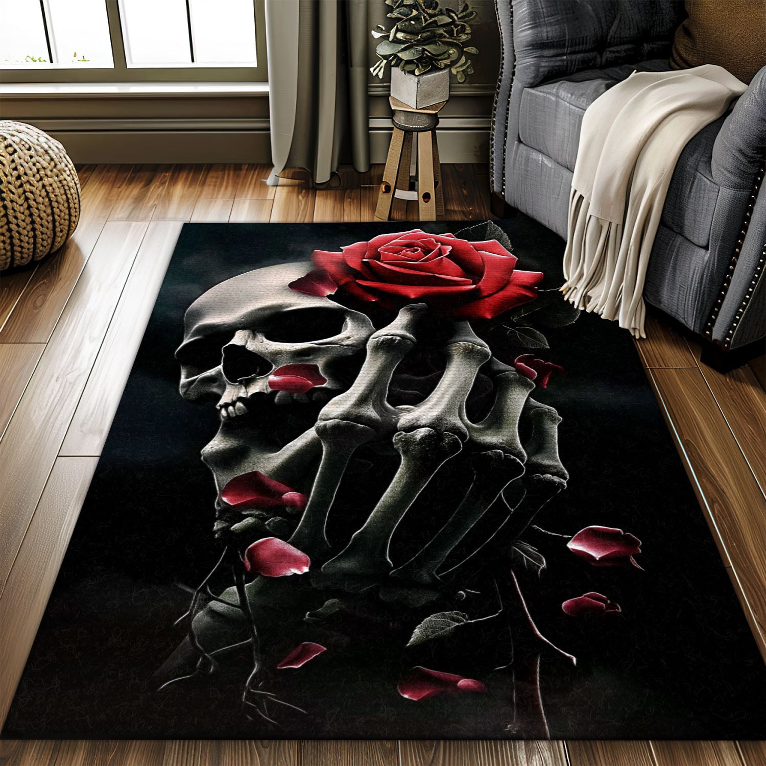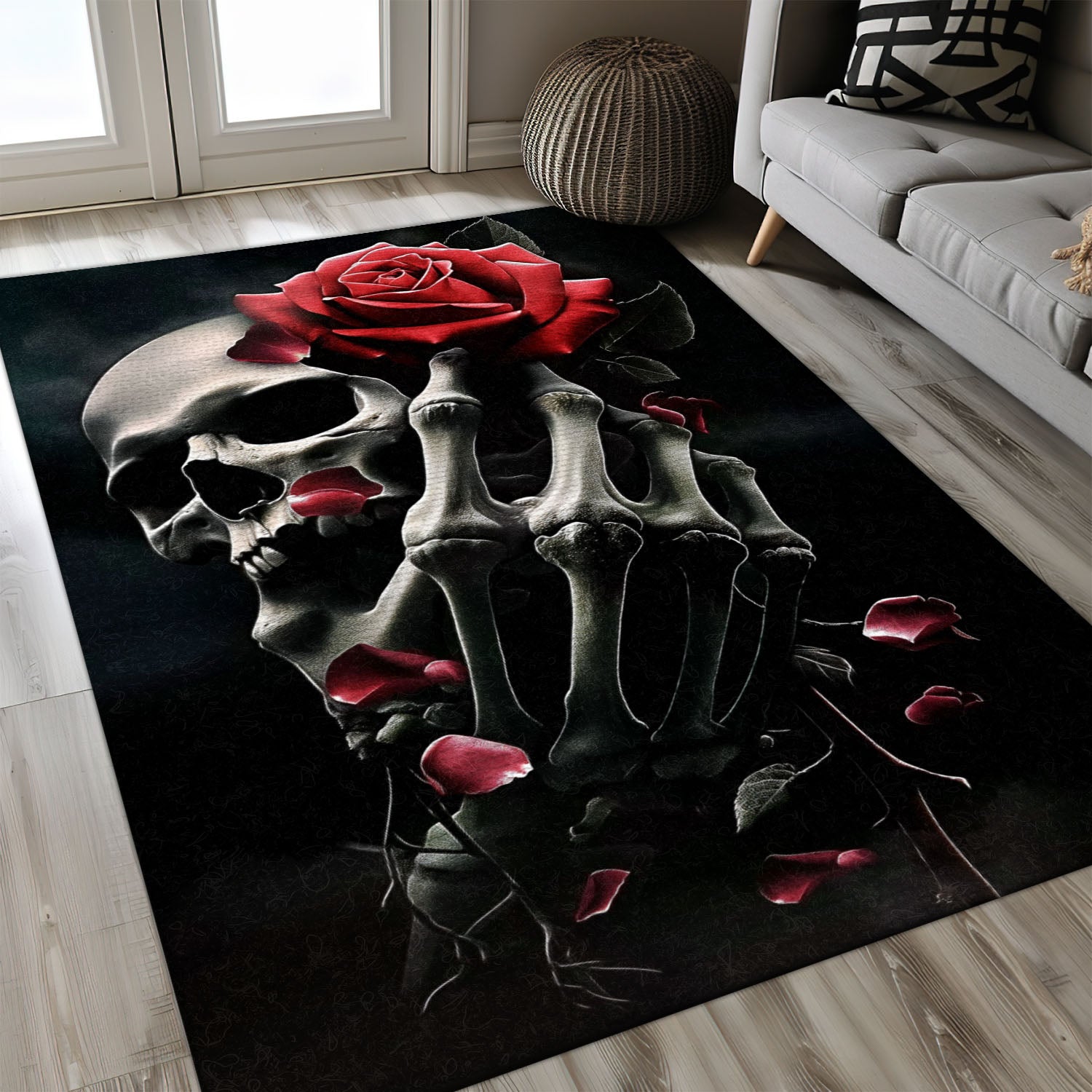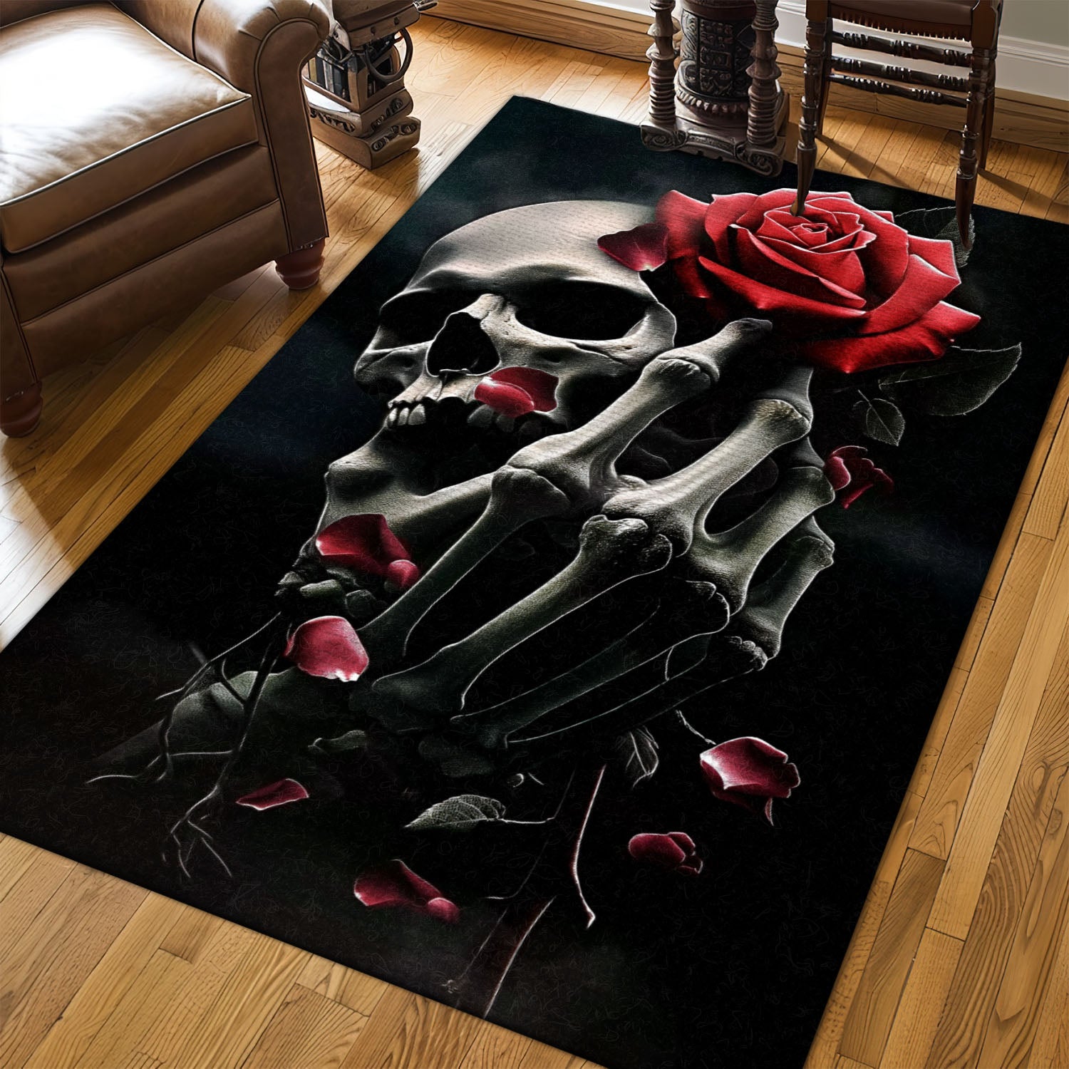 Elevate Your Home Decor with a Handbone and Rose Skull Pattern Rug, Skull Rug, Area Rugs 5x8, 4x6, 3x5 Size for Living Room Bedroom Home Decorative Skull K08