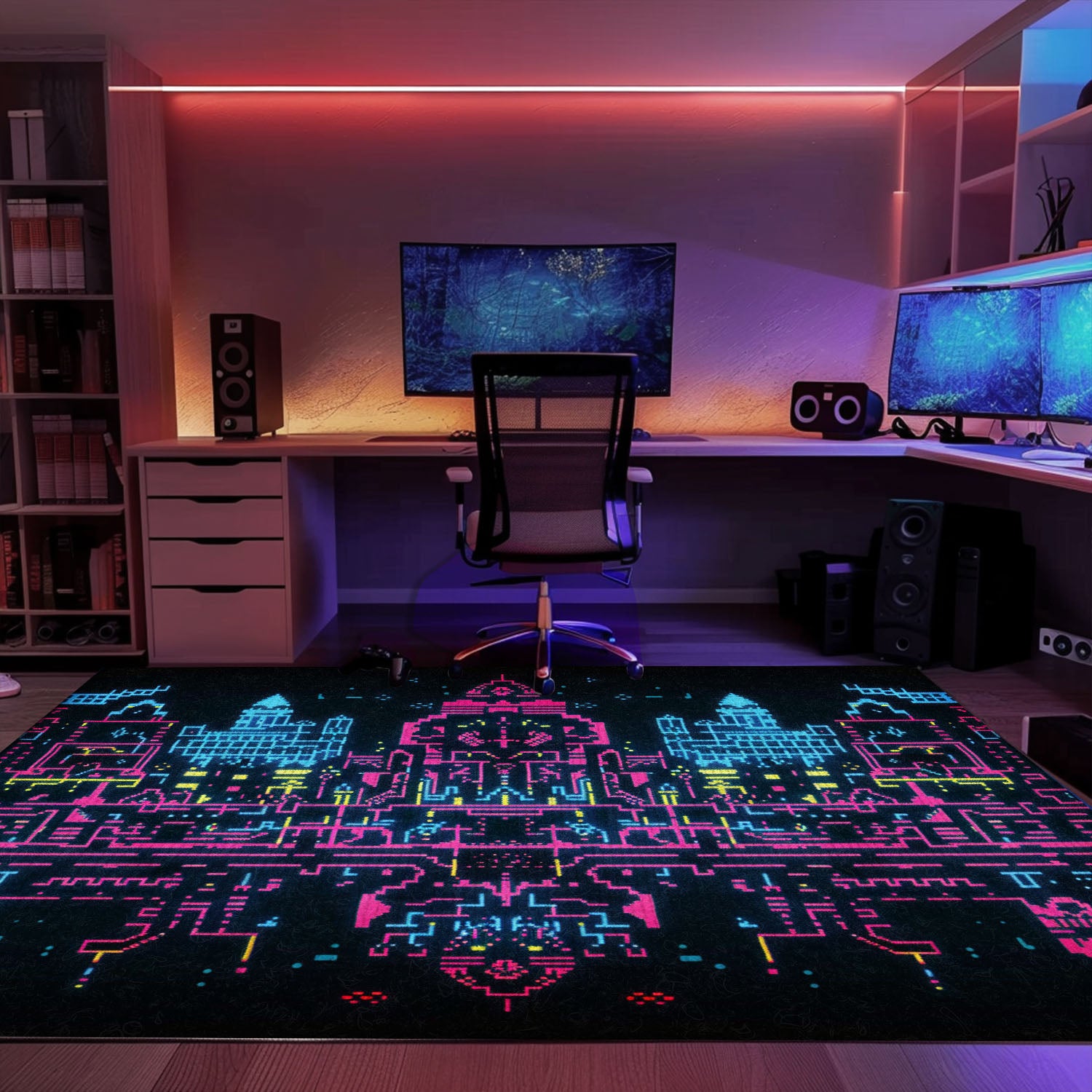 Elevate Your Home Décor with Dark and Neon 80s Arcade NES Game 8bit Rugs for Boys, Arcade Decor, Gift for Gamers, Video Game Lovers G282