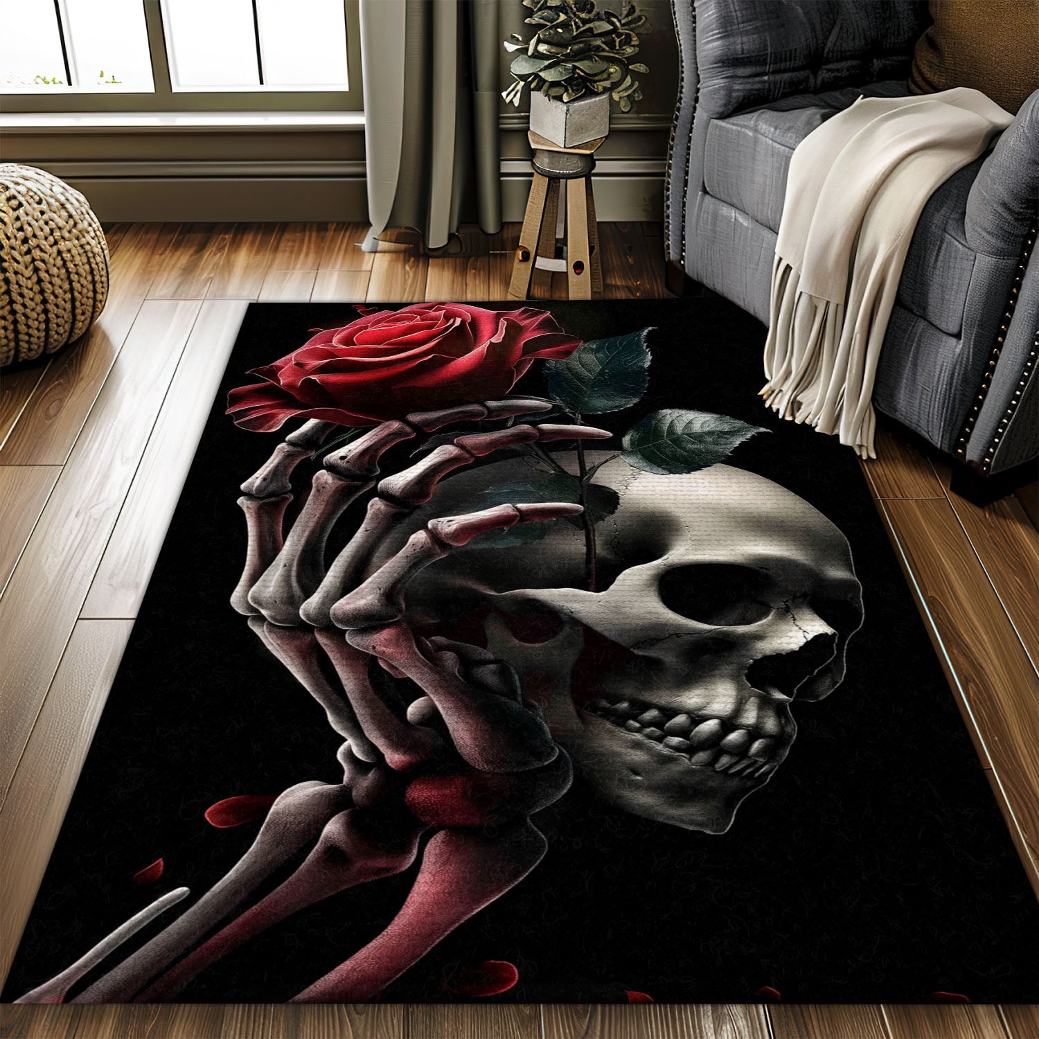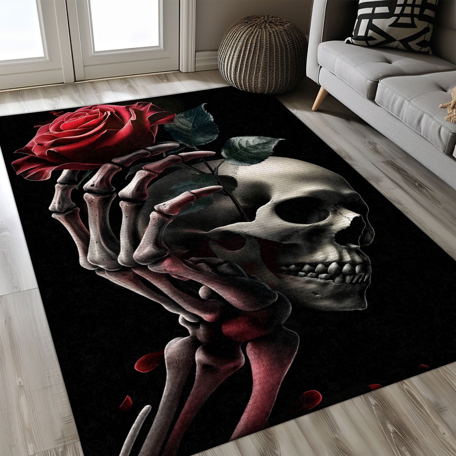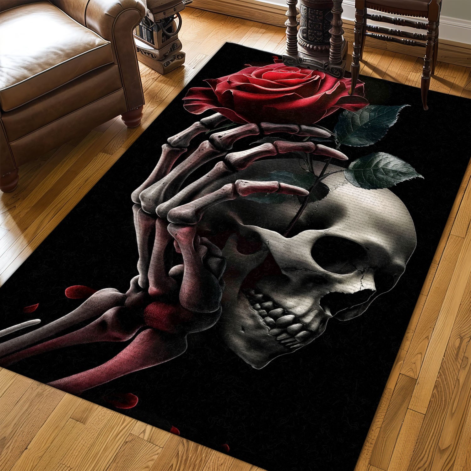 Express Your Unique Style with a Sugar Skull Rose and Handbone Pattern Rug, Skull Rug, Area Rugs 5x8, 4x6, 3x5 Size for Living Room Bedroom Home Decorative Skull K18