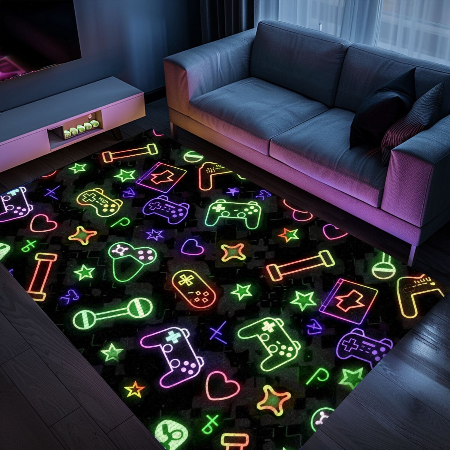 Eye-Catching Neon Retro Video Game Arcade Rug for Bedroom, Ideal Gift for Gamers and Video Game Fans, Arcade Decor, Gift for Gamers, Video Game Lovers G89