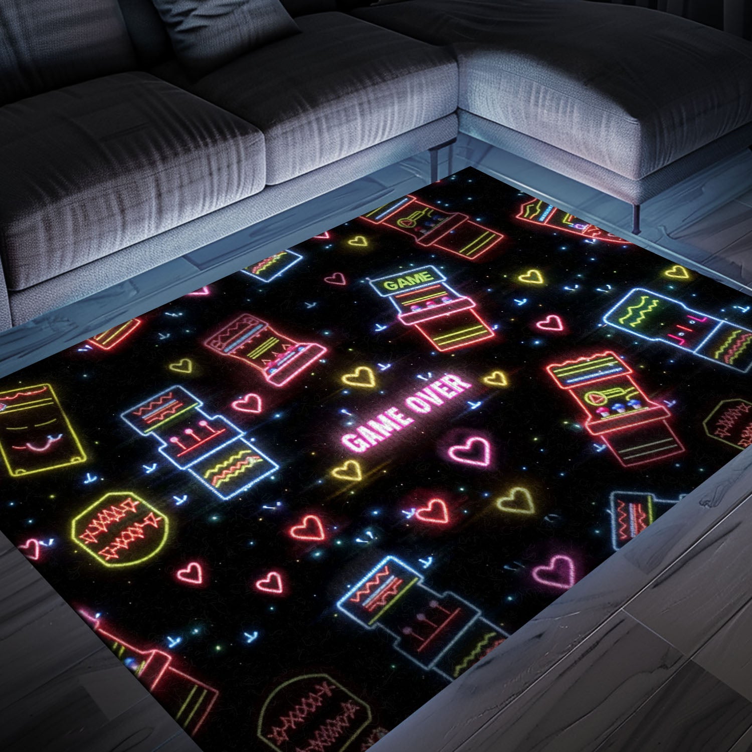 Eye-Catching Neon Video Game Retro Arcade Game Room Area Rug: Enhance Your Living Space with Arcade Vibes, Arcade Decor, Gift for Gamers, Video Game Lovers G103
