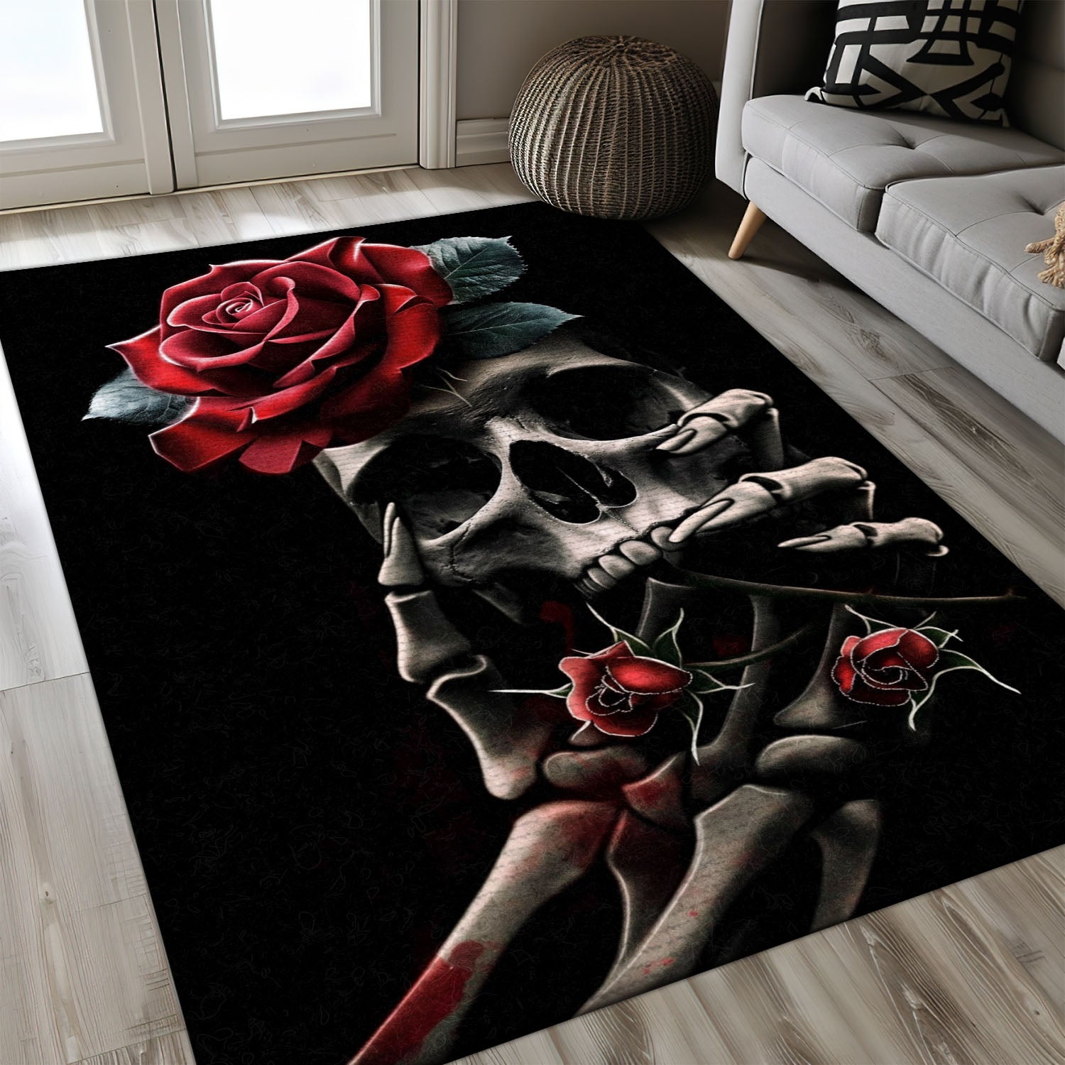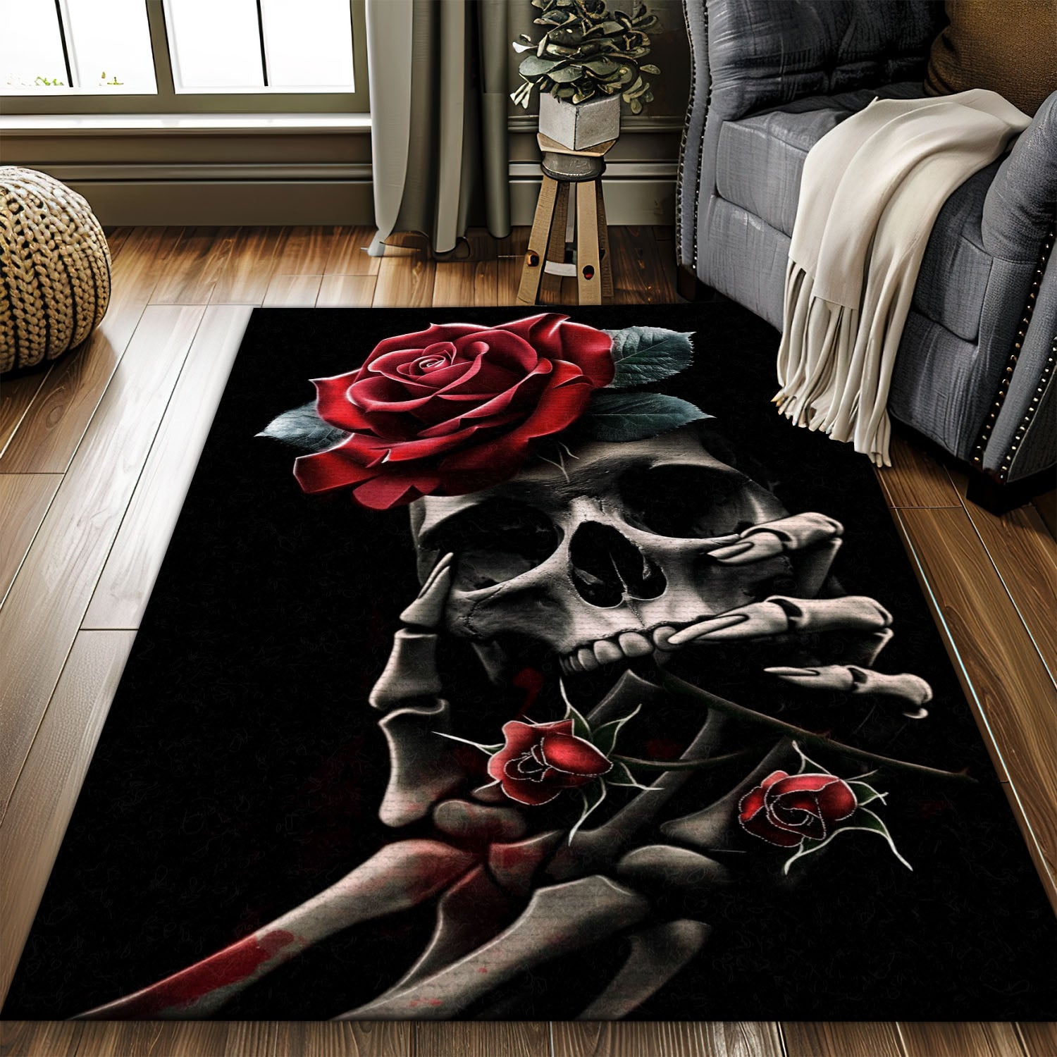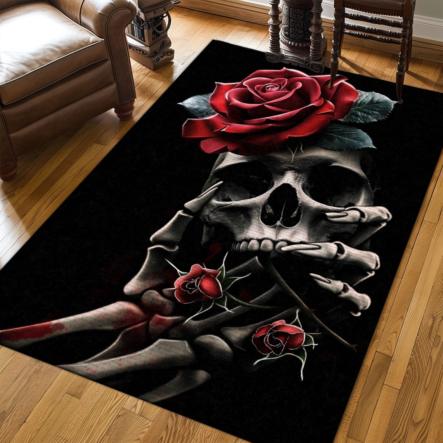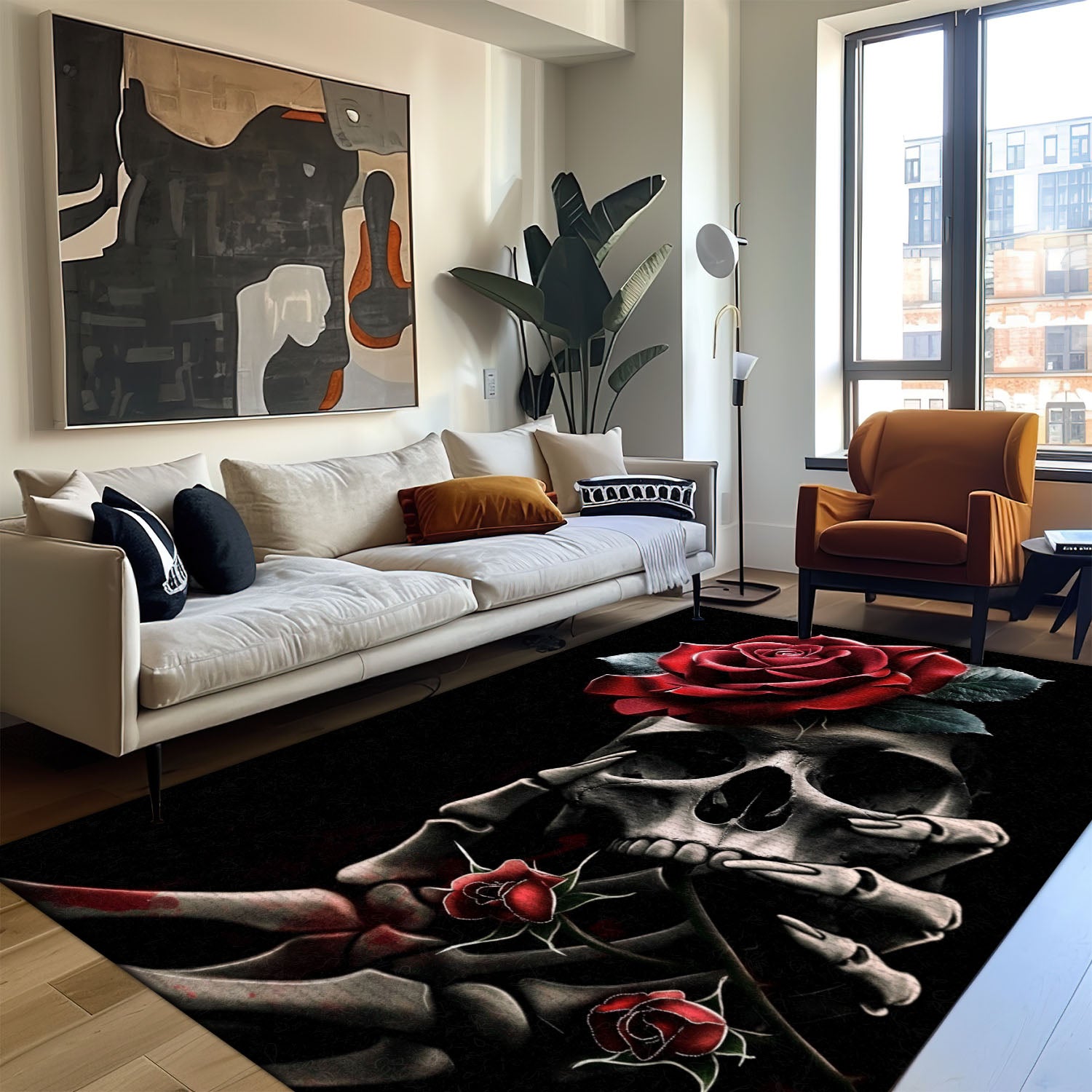 Eye-Catching Skull and Rose Pattern Area Rug: Perfect for Bedroom Living Room, Skull Rug, Area Rugs 5x8, 4x6, 3x5 Size for Living Room Bedroom Home Decorative Skull K03