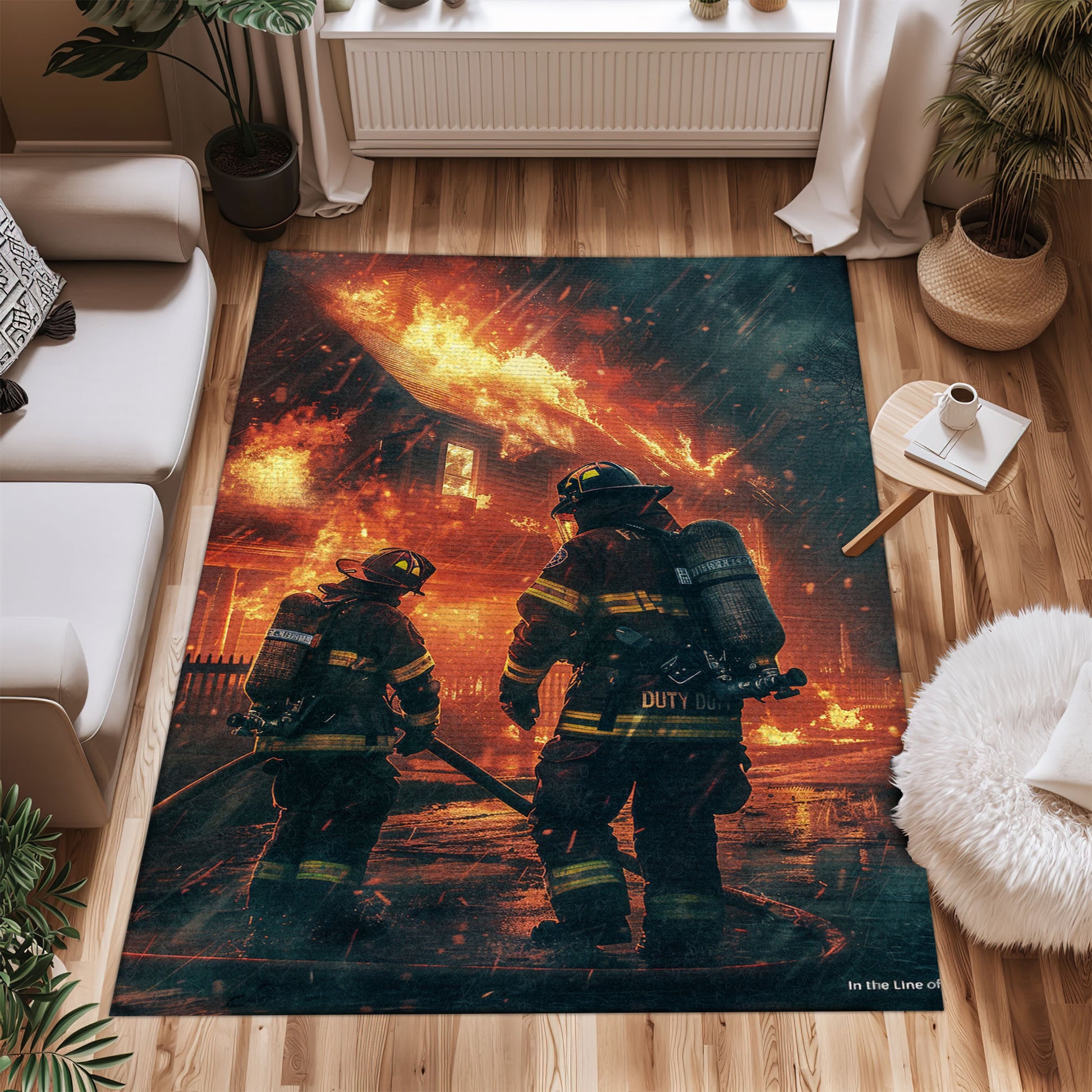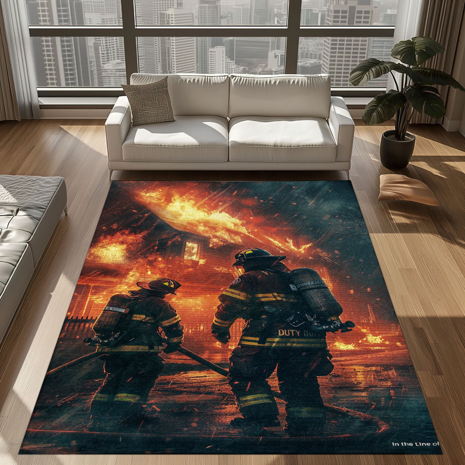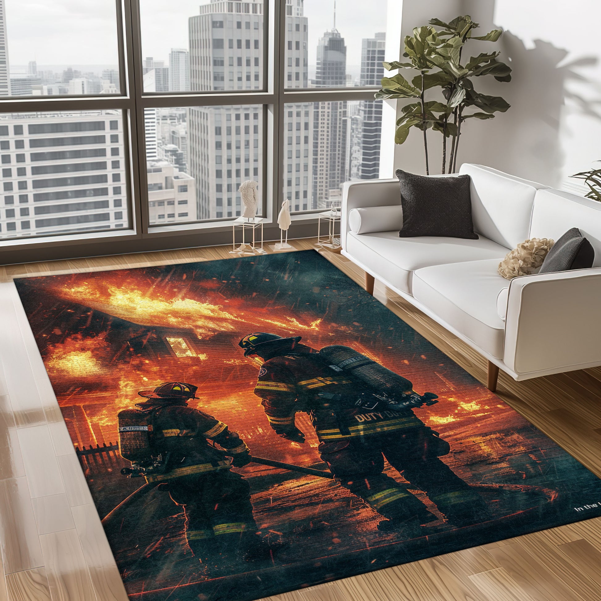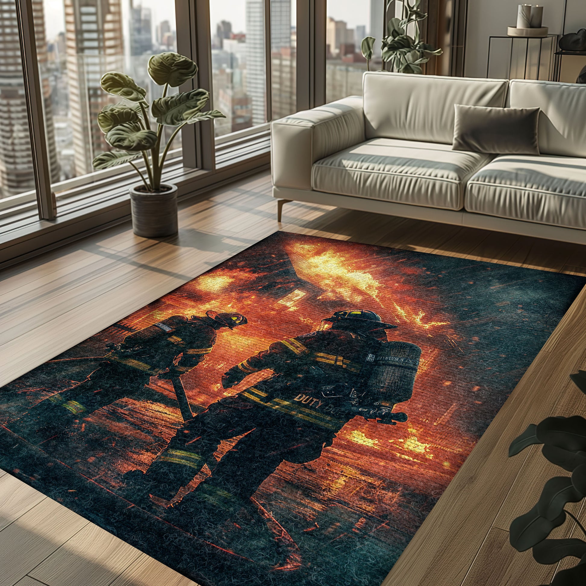Family of Heroes: Personalized Father and Son Fire Fighter Area Rug, Firefighter Rugs for Living Room Bedroom, Firefighter Rectangular Rugs Full Size FR147