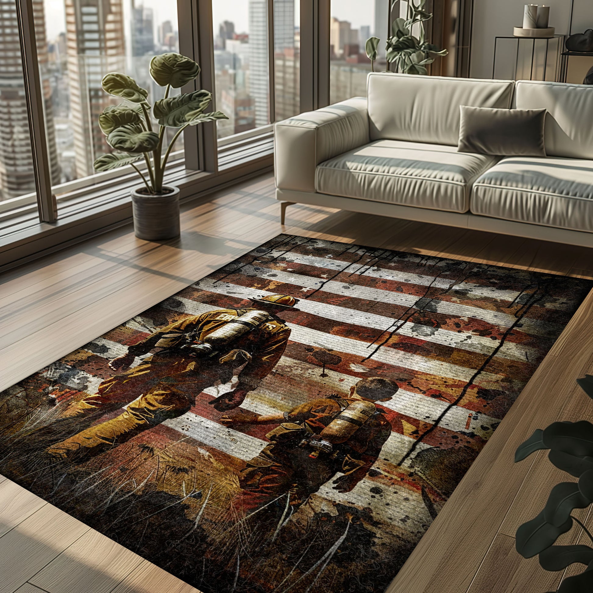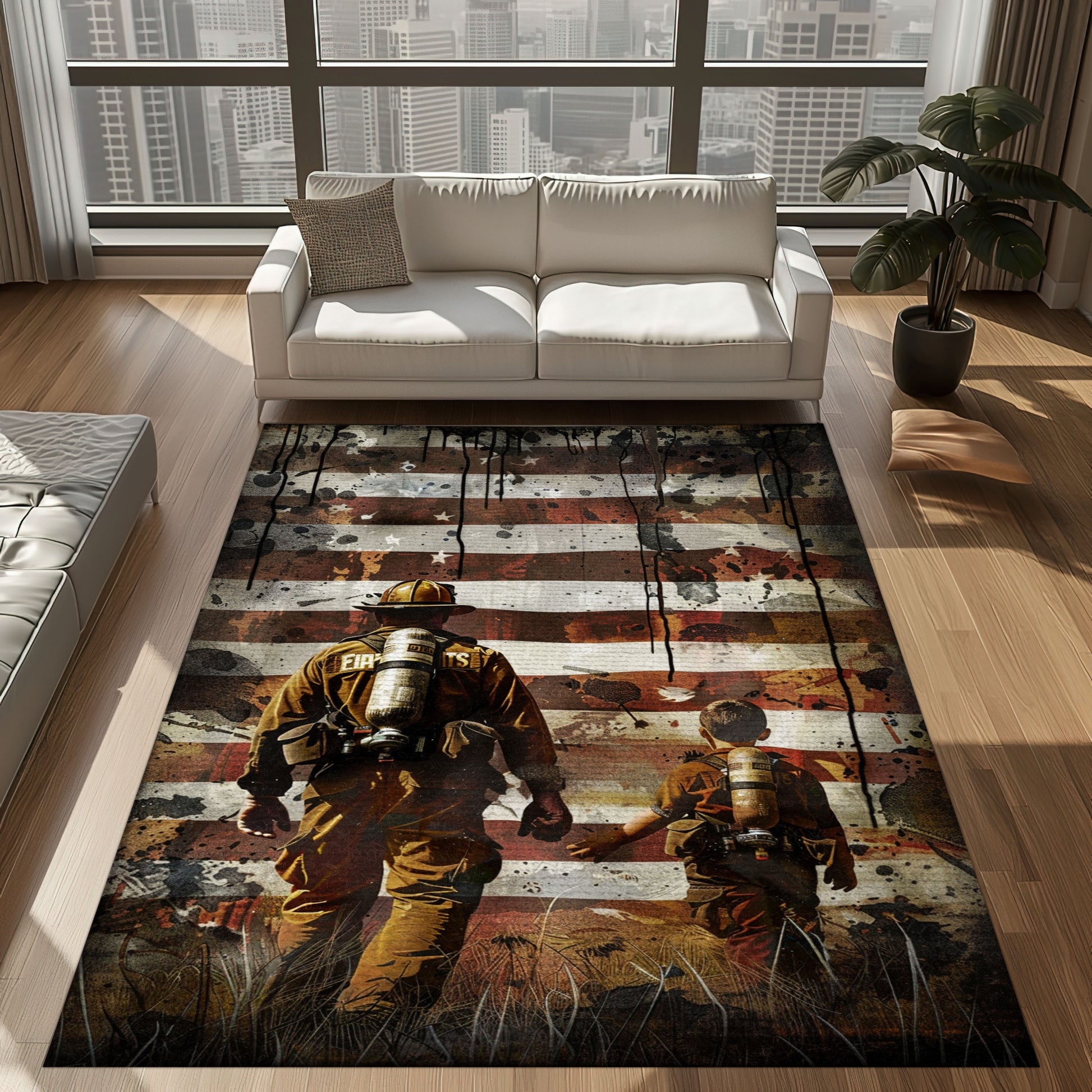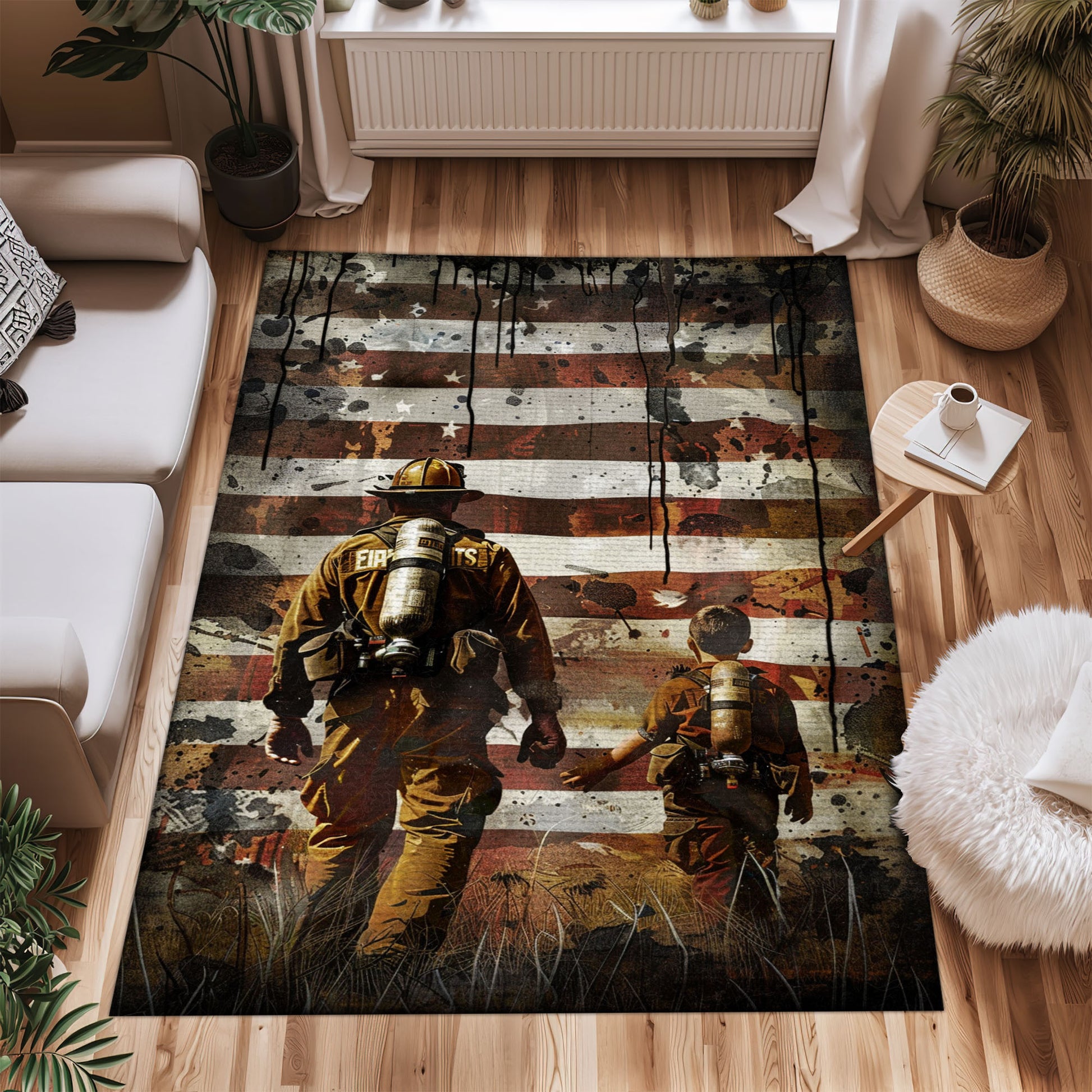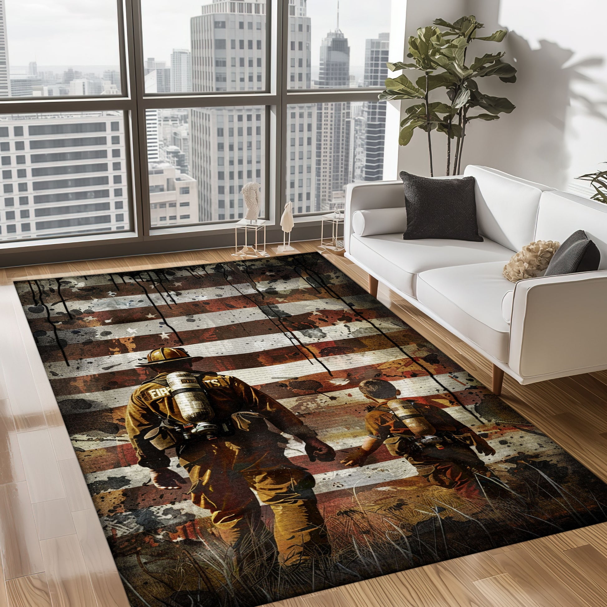 Fireman Carpet: Dad and Son Edition for Your Personalized Living Room, Firefighter Rugs for Living Room Bedroom, Firefighter Rectangular Rugs Full Size FR104