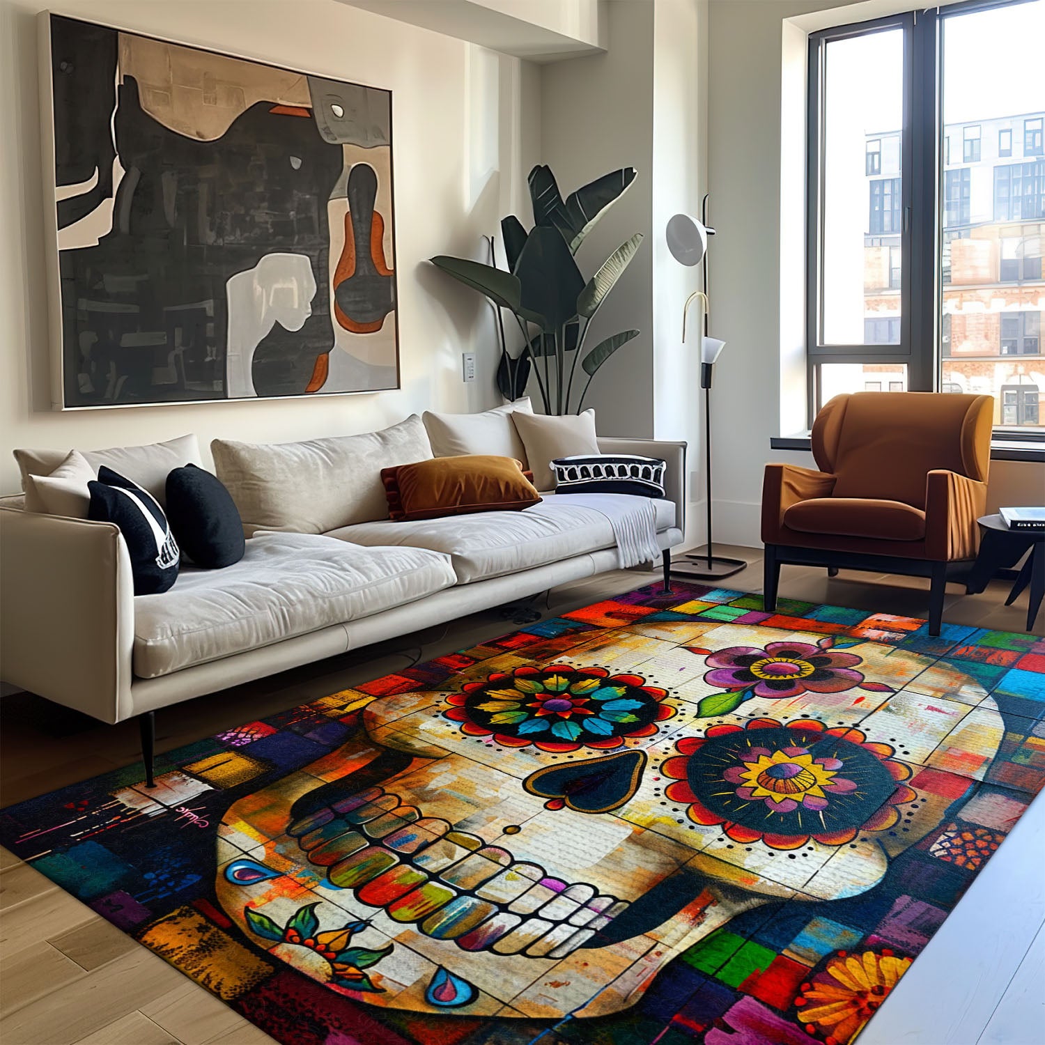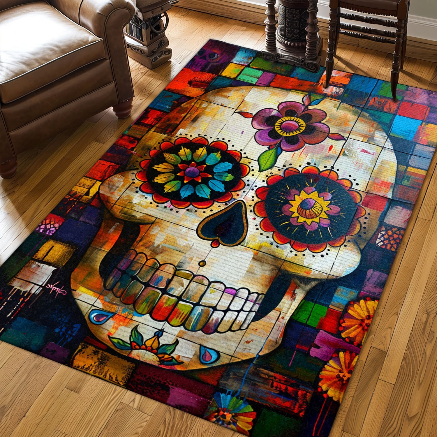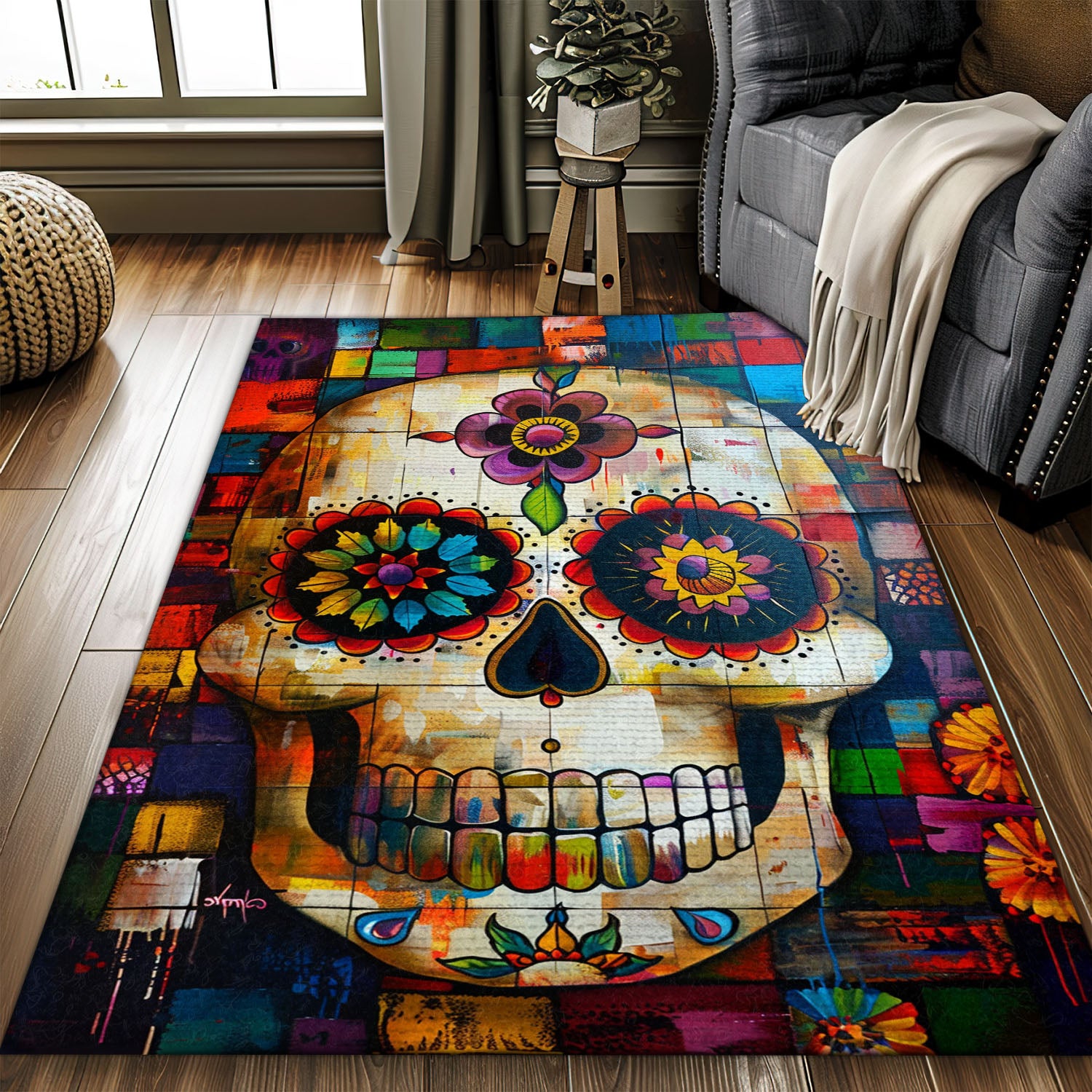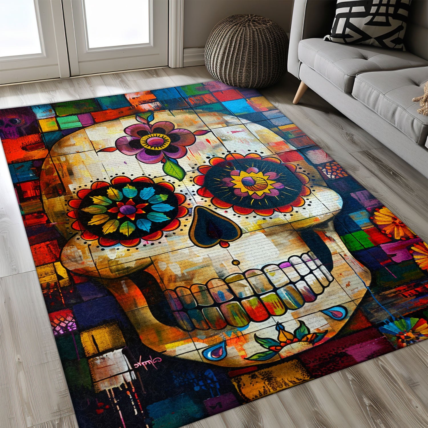 Symbolize Life and Remembrance in Your Home with a Mexican Dia de los Muertos Rug, Skull Rug, Area Rugs 5x8, 4x6, 3x5 Size for Living Room Bedroom Home Decorative Skull K45
