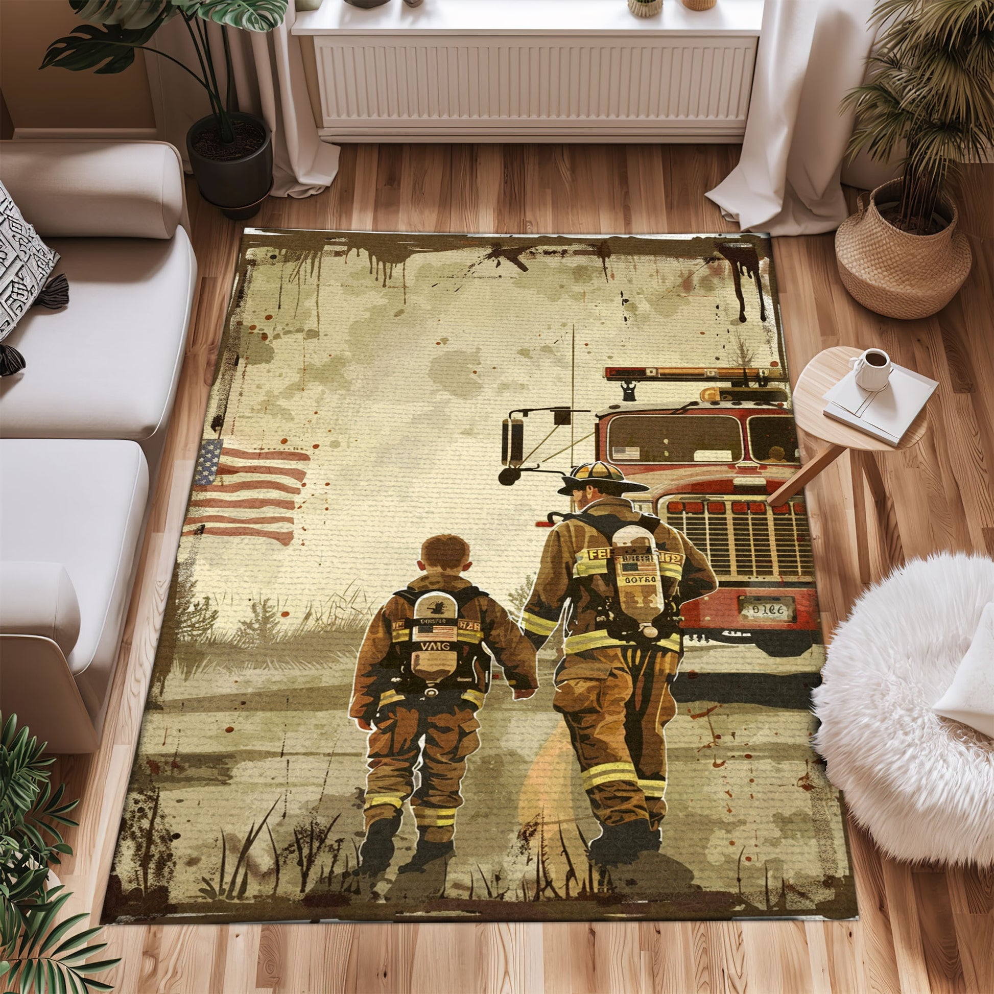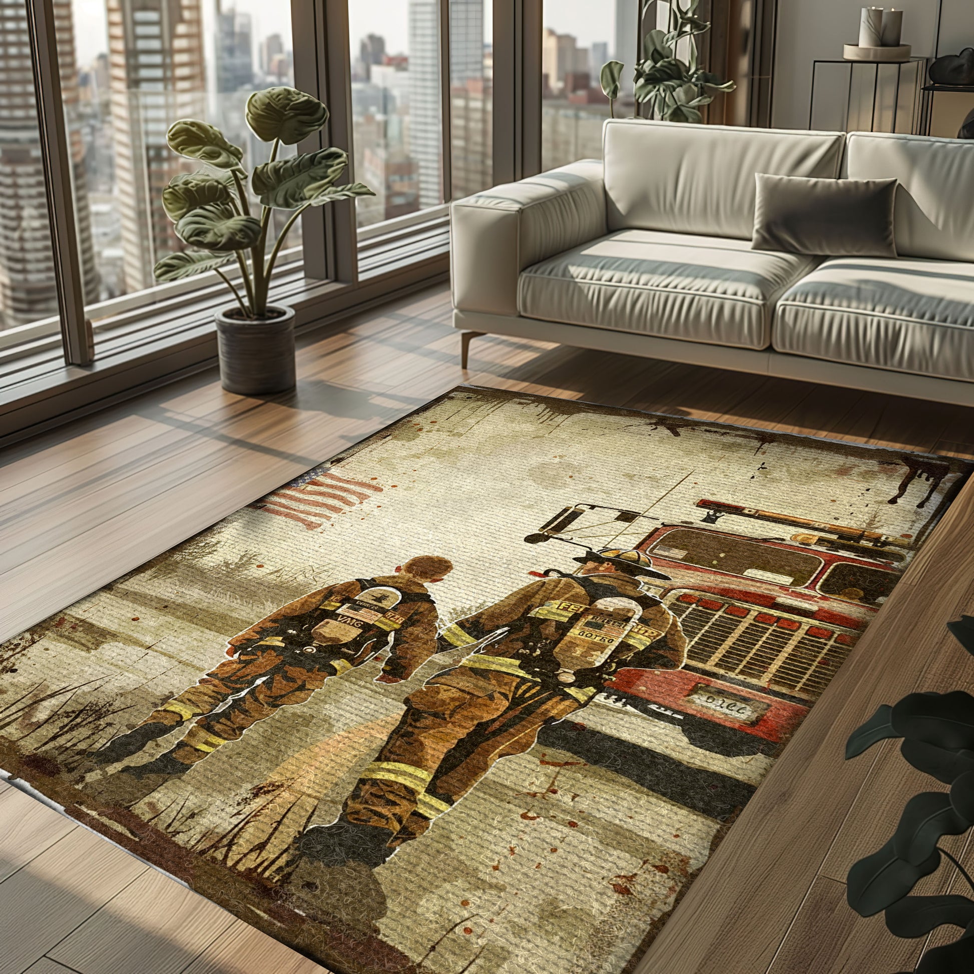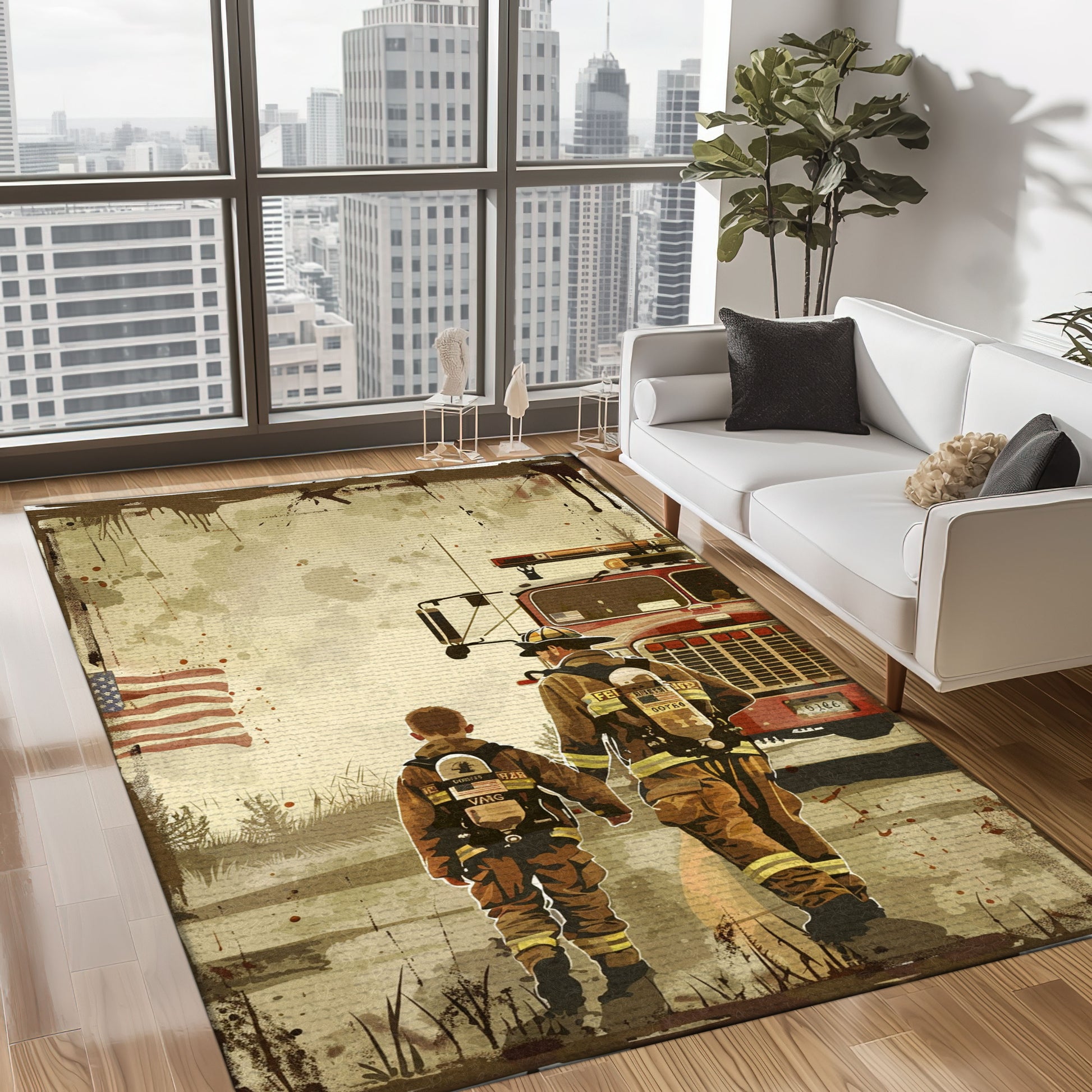 Heartwarming Firefighter Heroes Design Personalized Area Rug: Pay Tribute to Courageous Service, Firefighter Rugs for Living Room Bedroom, Firefighter Rectangular Rugs Full Size FR72