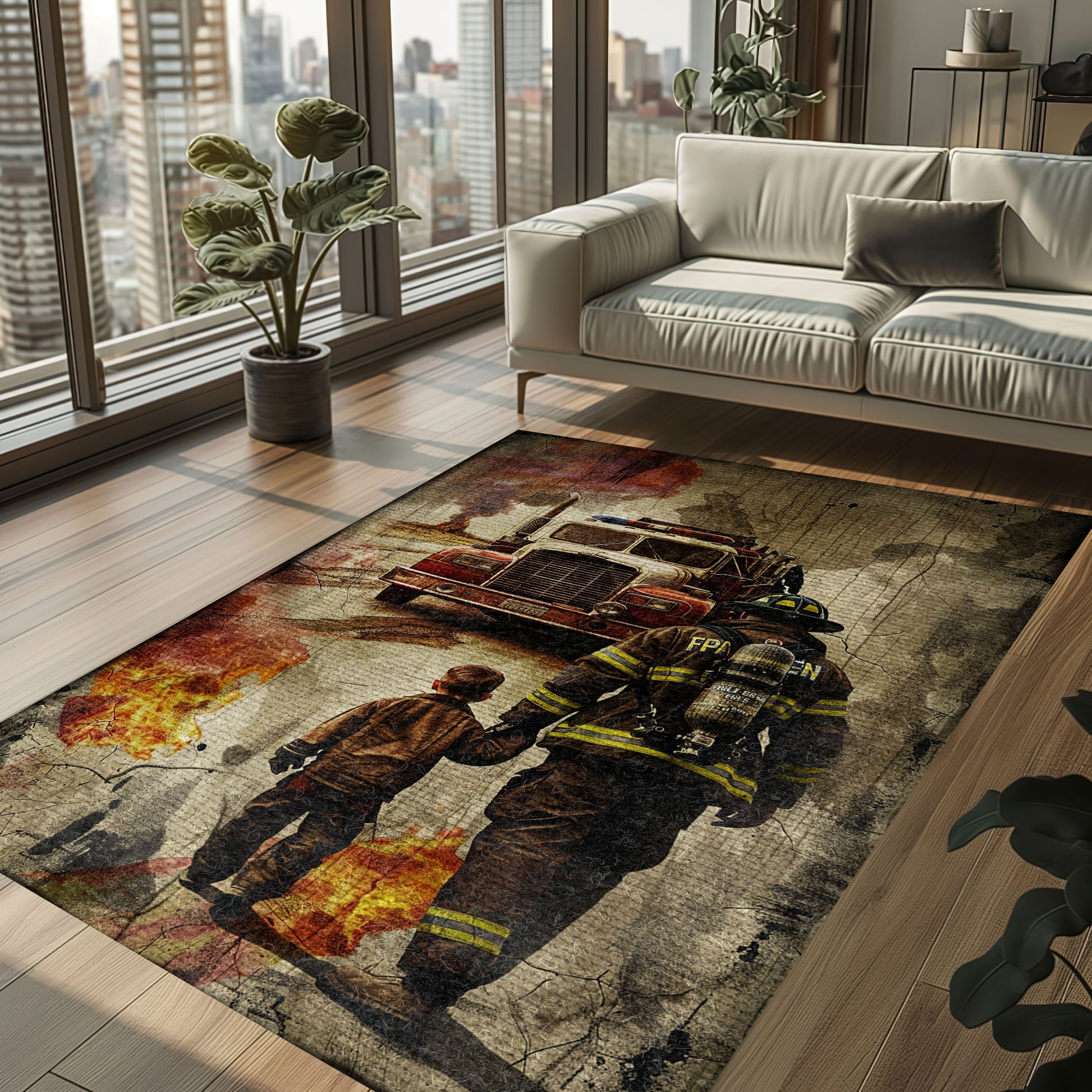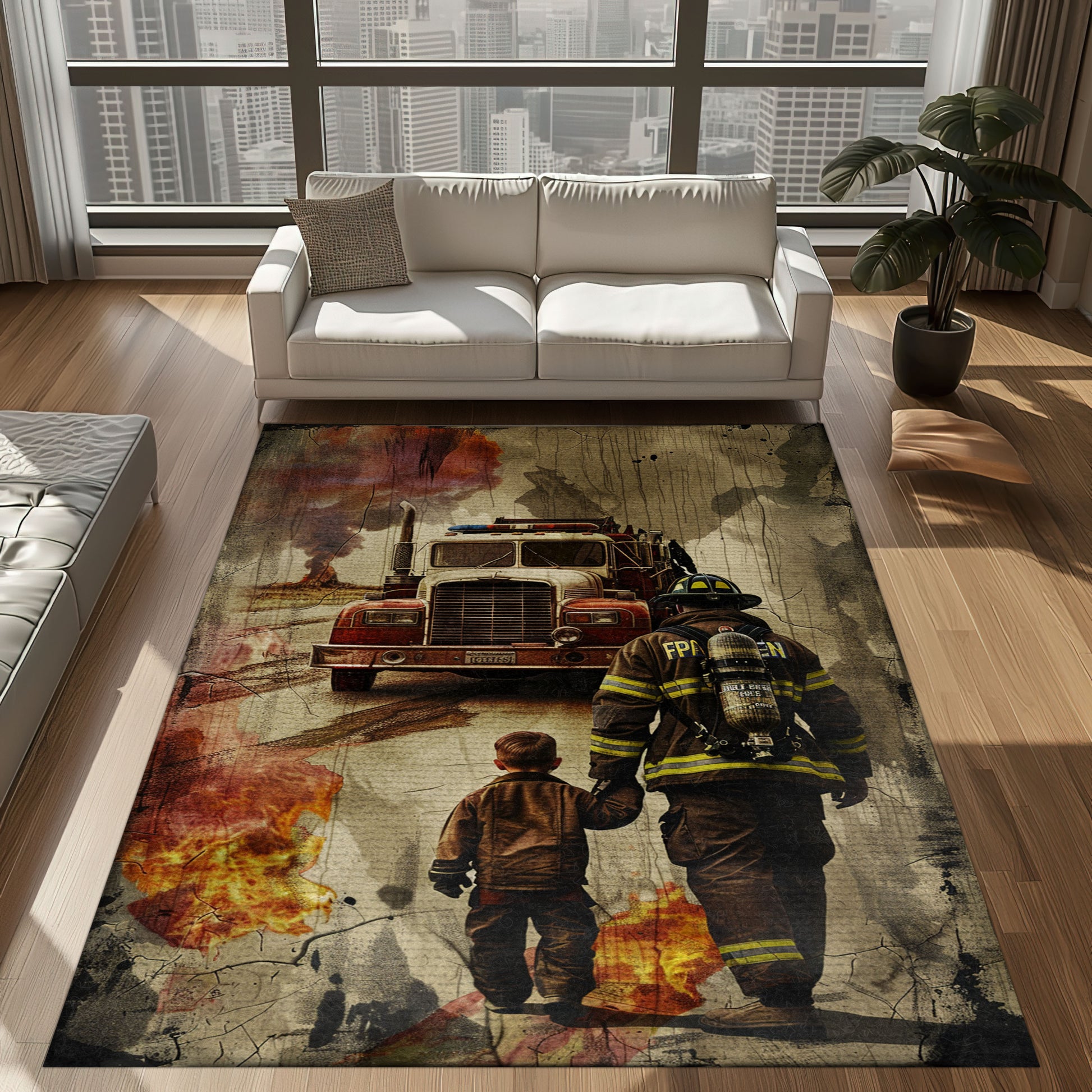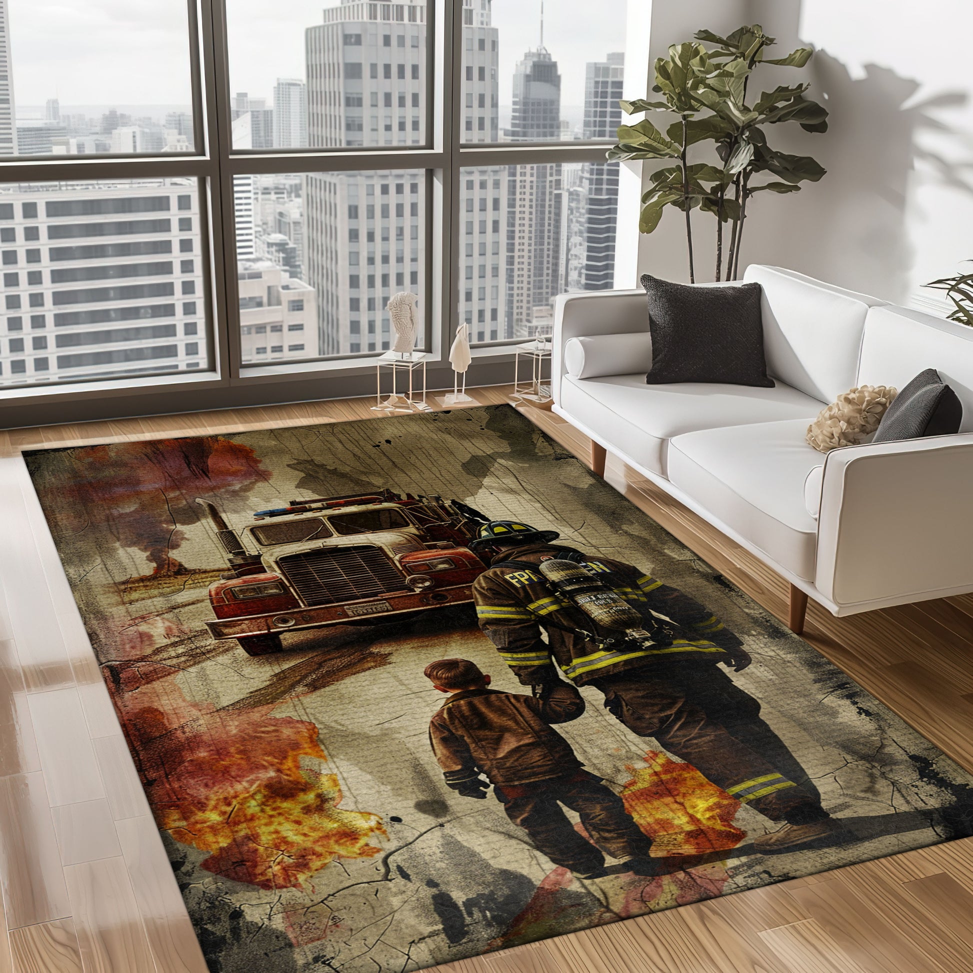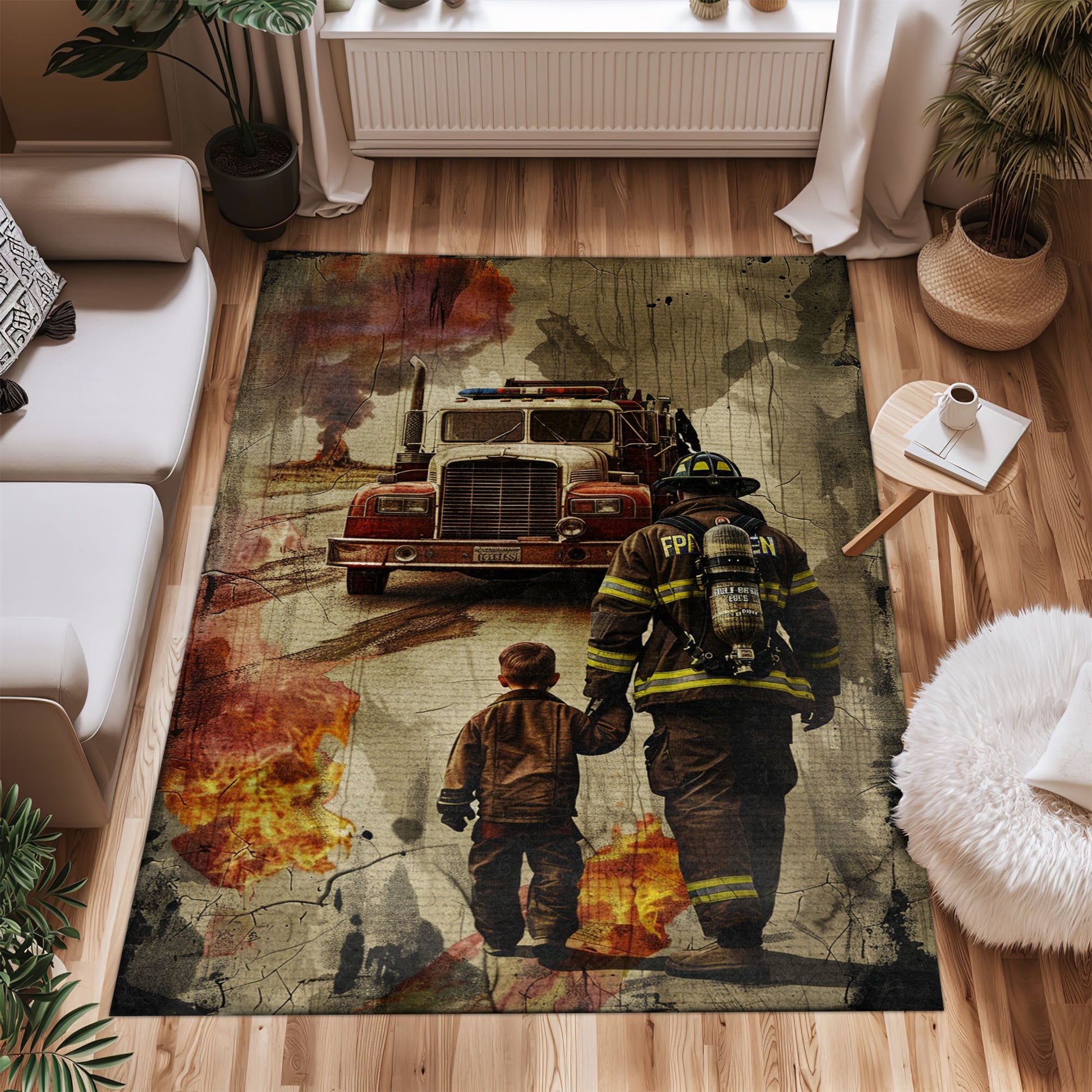Heroic Dad: Personalized Firefighter Area Rug for Home Decor, Firefighter Rugs for Living Room Bedroom, Firefighter Rectangular Rugs Full Size FR103