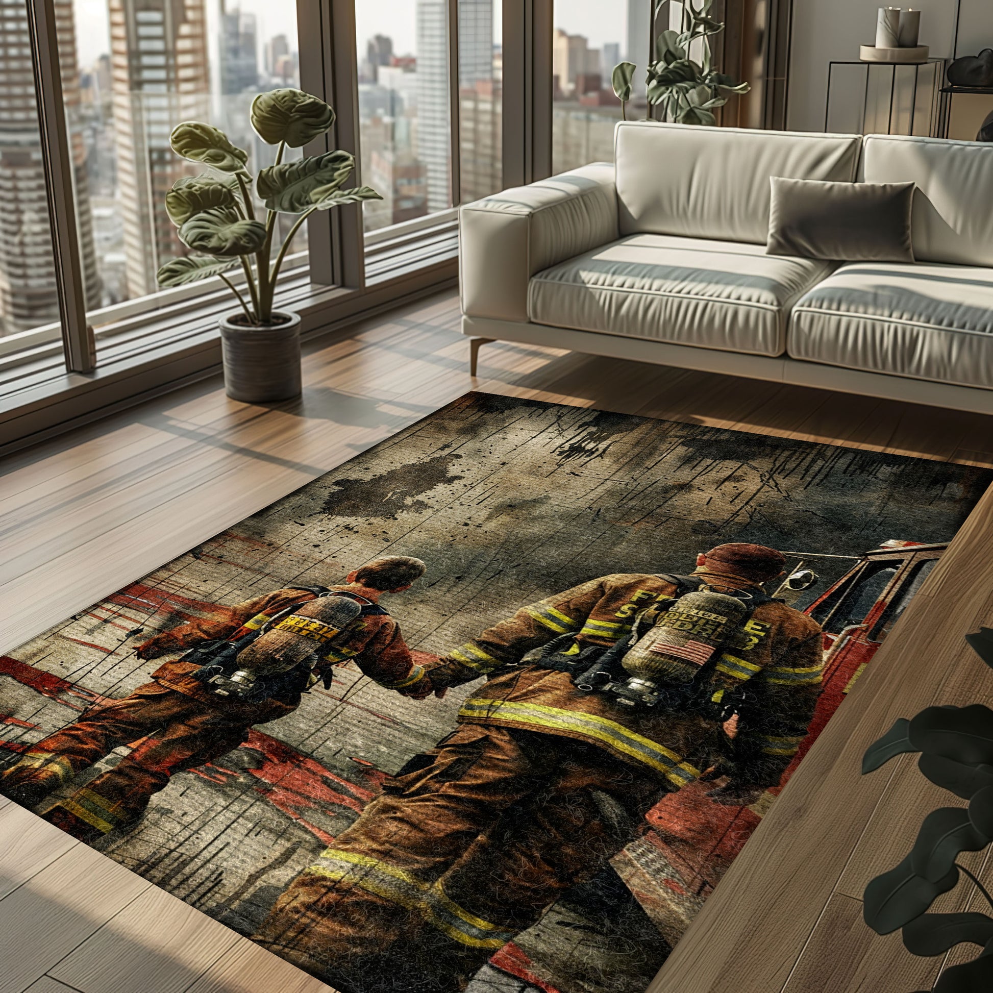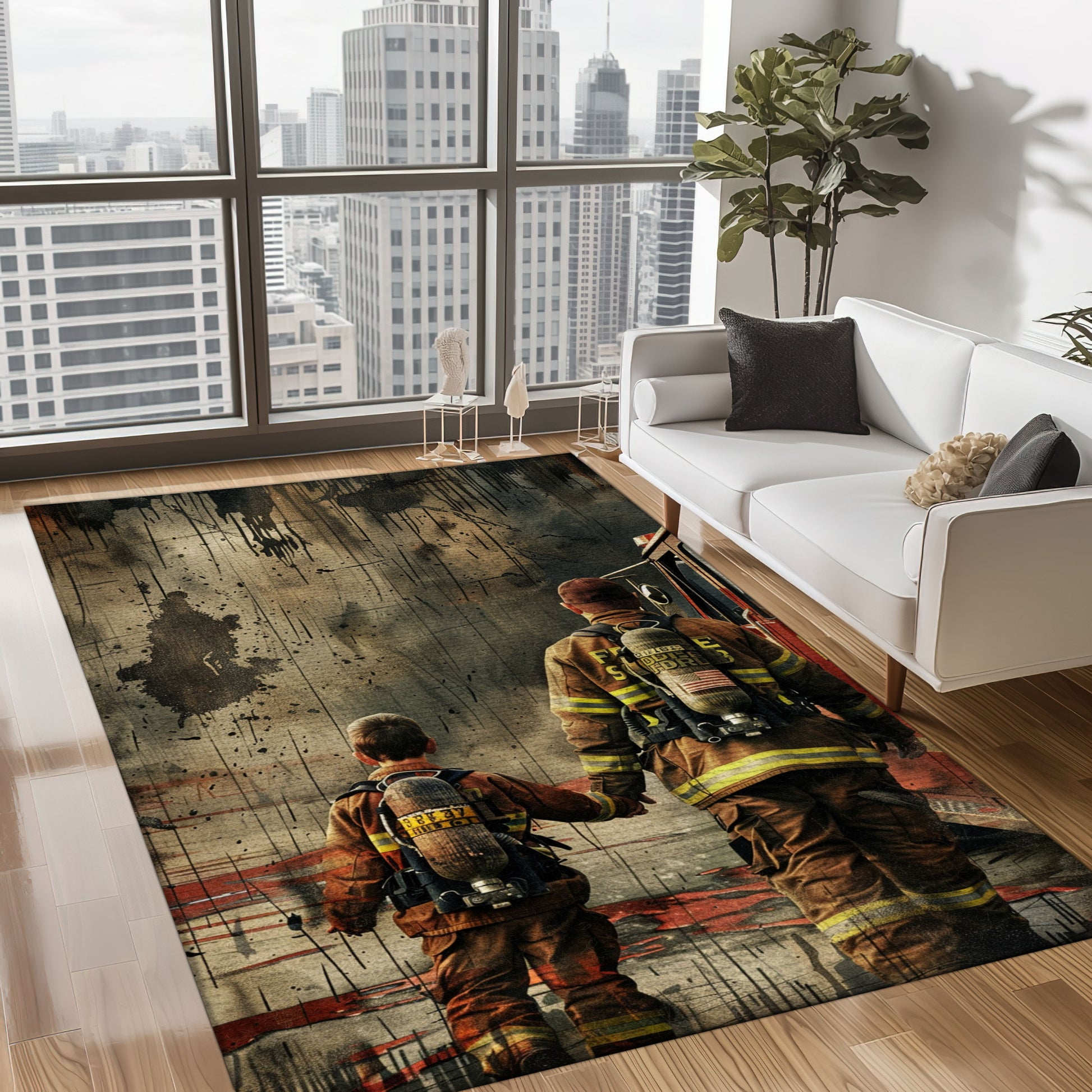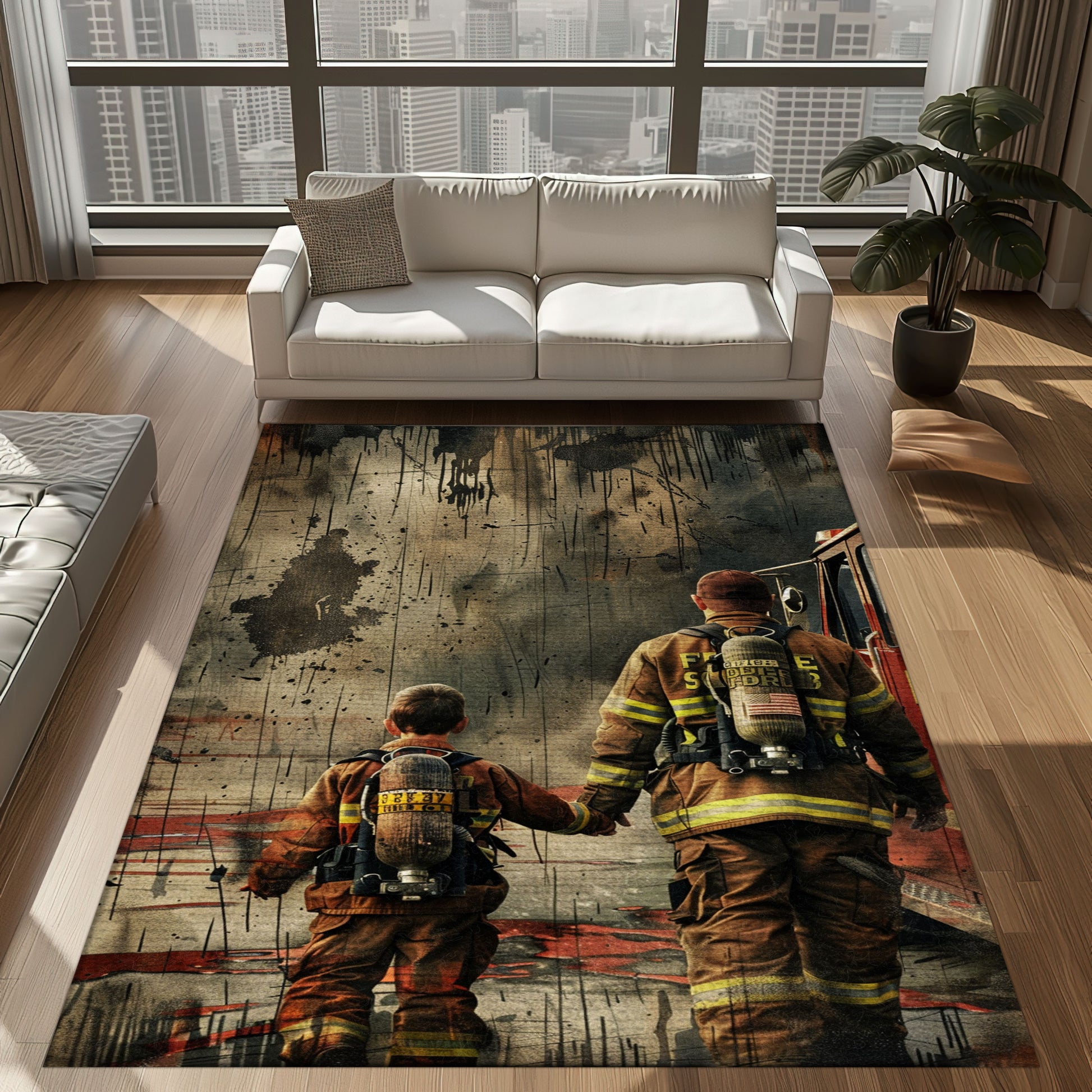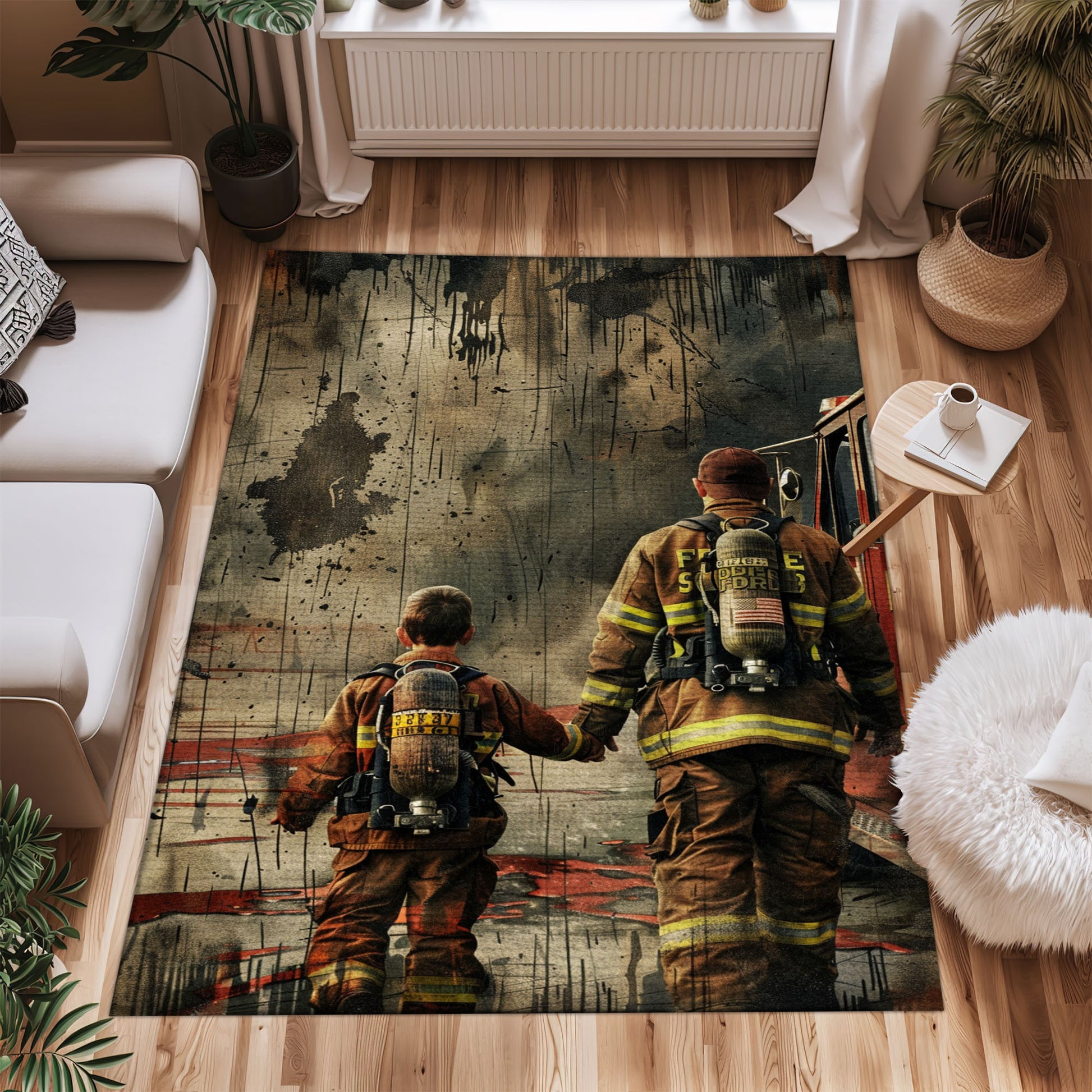 Home Tribute: Dad Fire Fighter and Son Firefighter Patterned Personalized Rugs, Firefighter Rugs for Living Room Bedroom, Firefighter Rectangular Rugs Full Size FR88