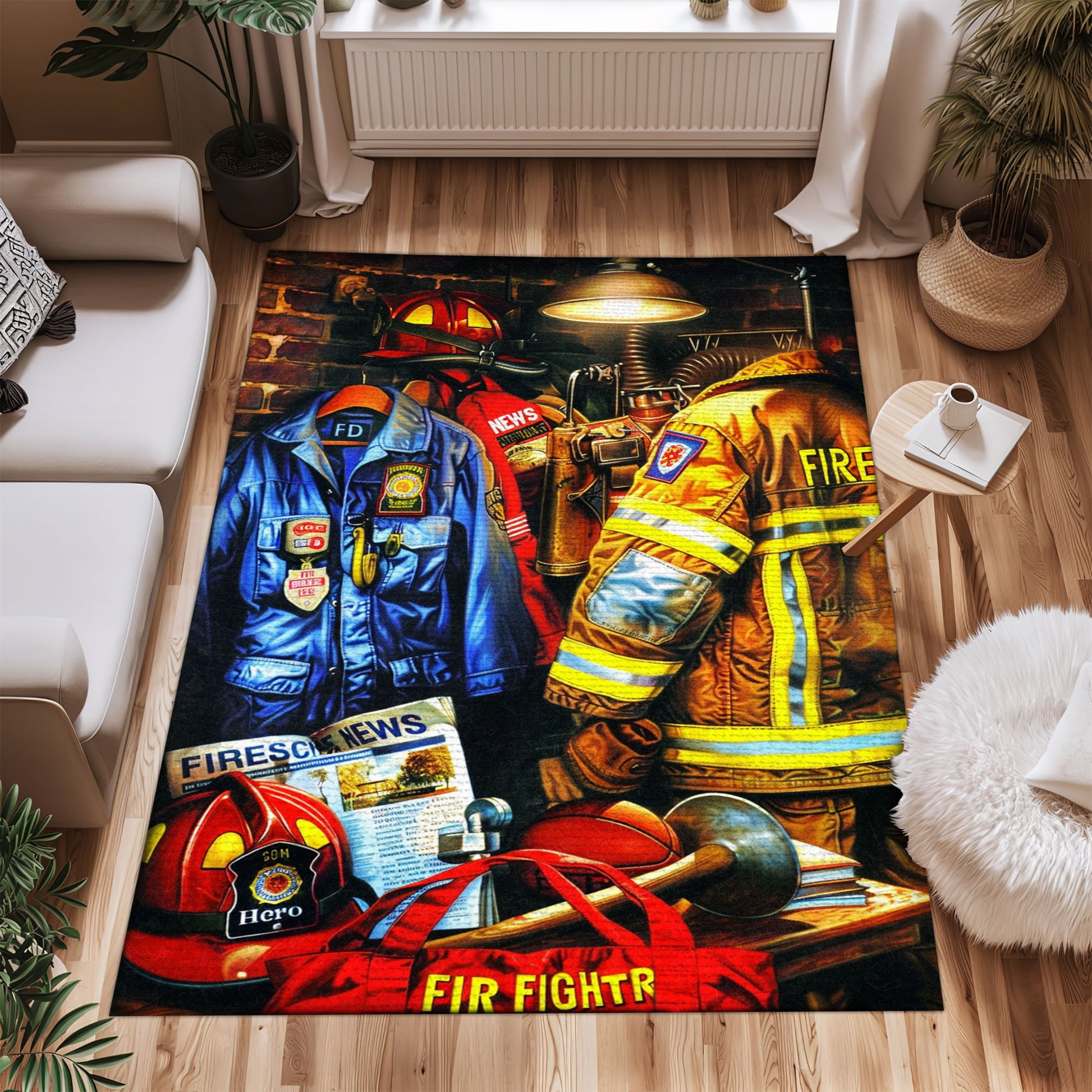 Honor Bravery with Custom Firefighter's Gear and Memorabilia Area Rug, Firefighter Rugs for Living Room Bedroom, Firefighter Rectangular Rugs Full Size FR135