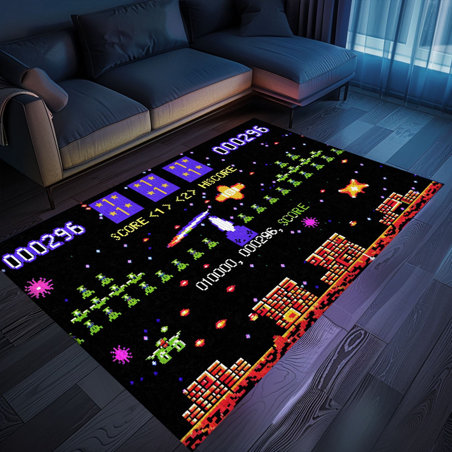 Infuse Your Room with Gaming Nostalgia with 80s Arcade Carpet Inspired by Space Invaders, Perfect for Retro Vibes, Arcade Decor, Gift for Gamers, Video Game Lovers G240
