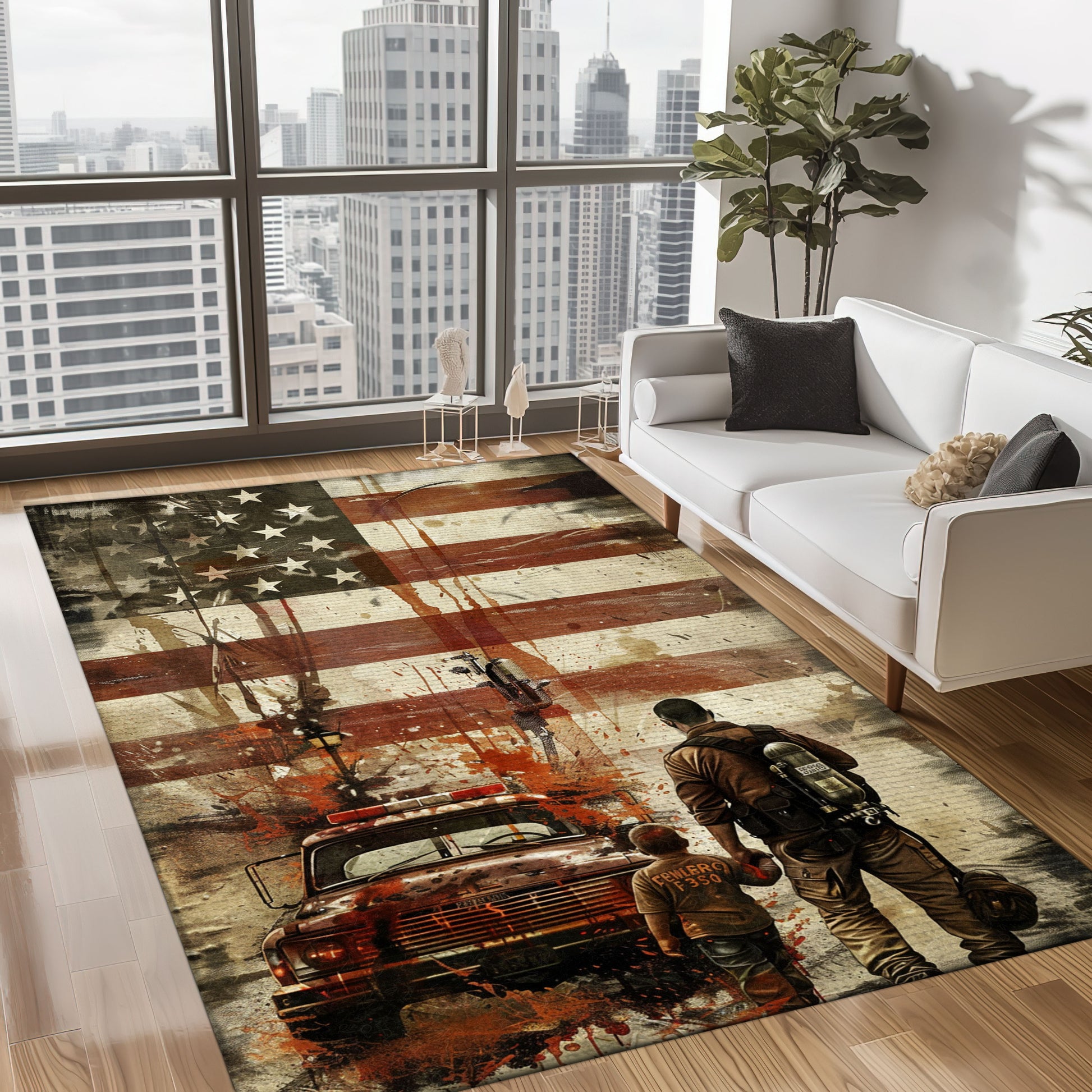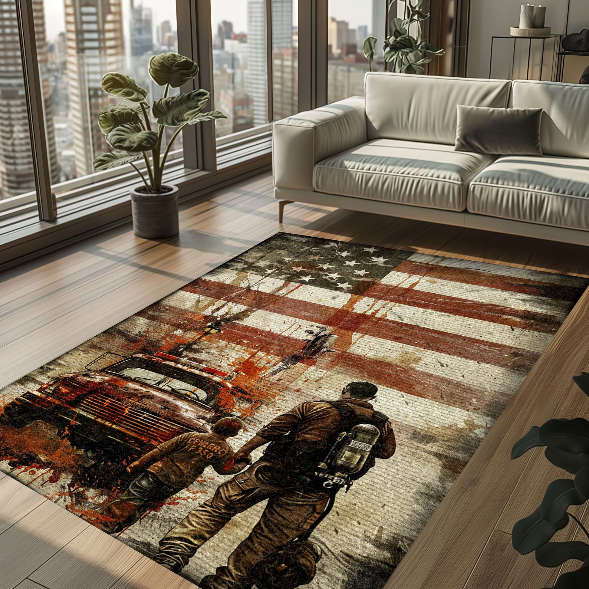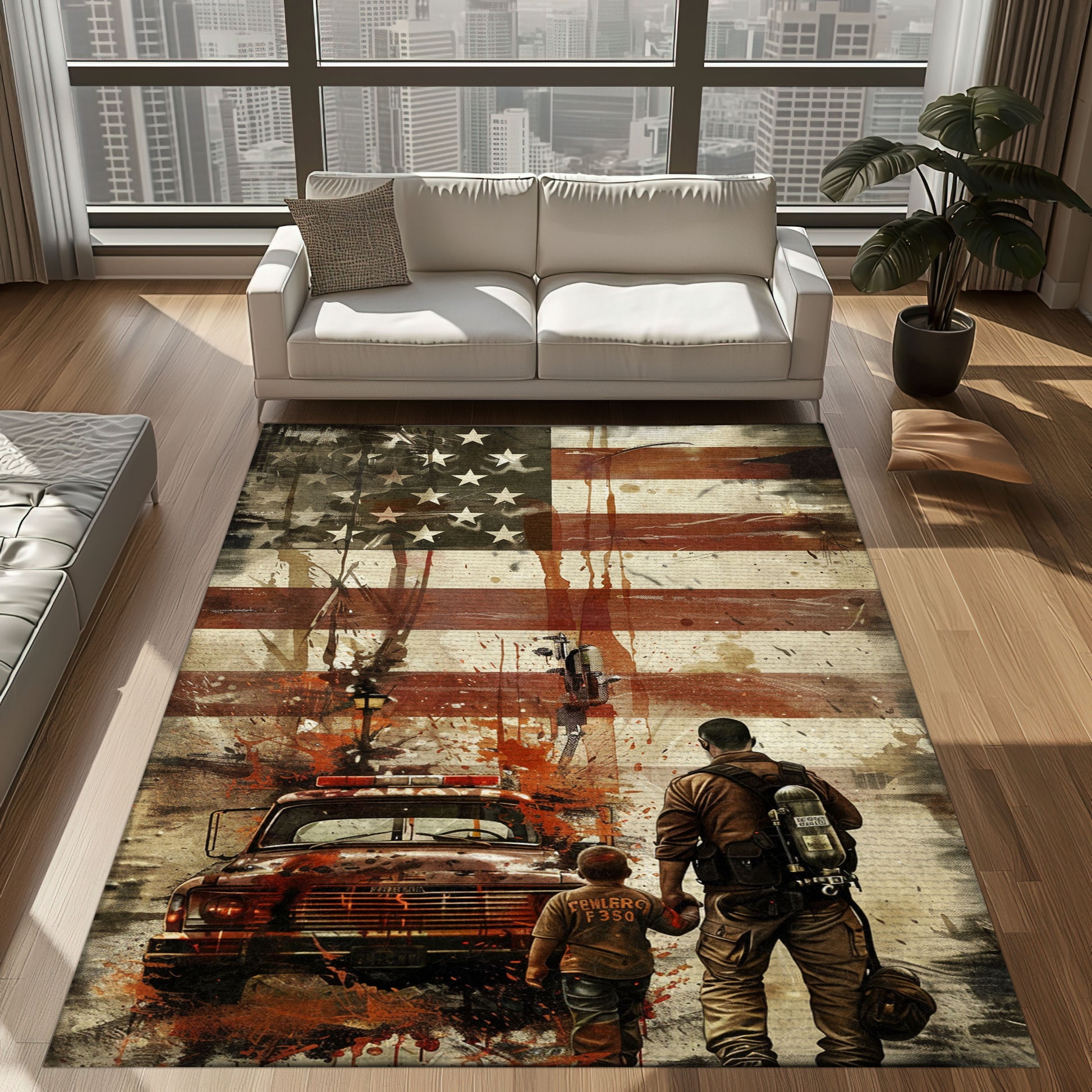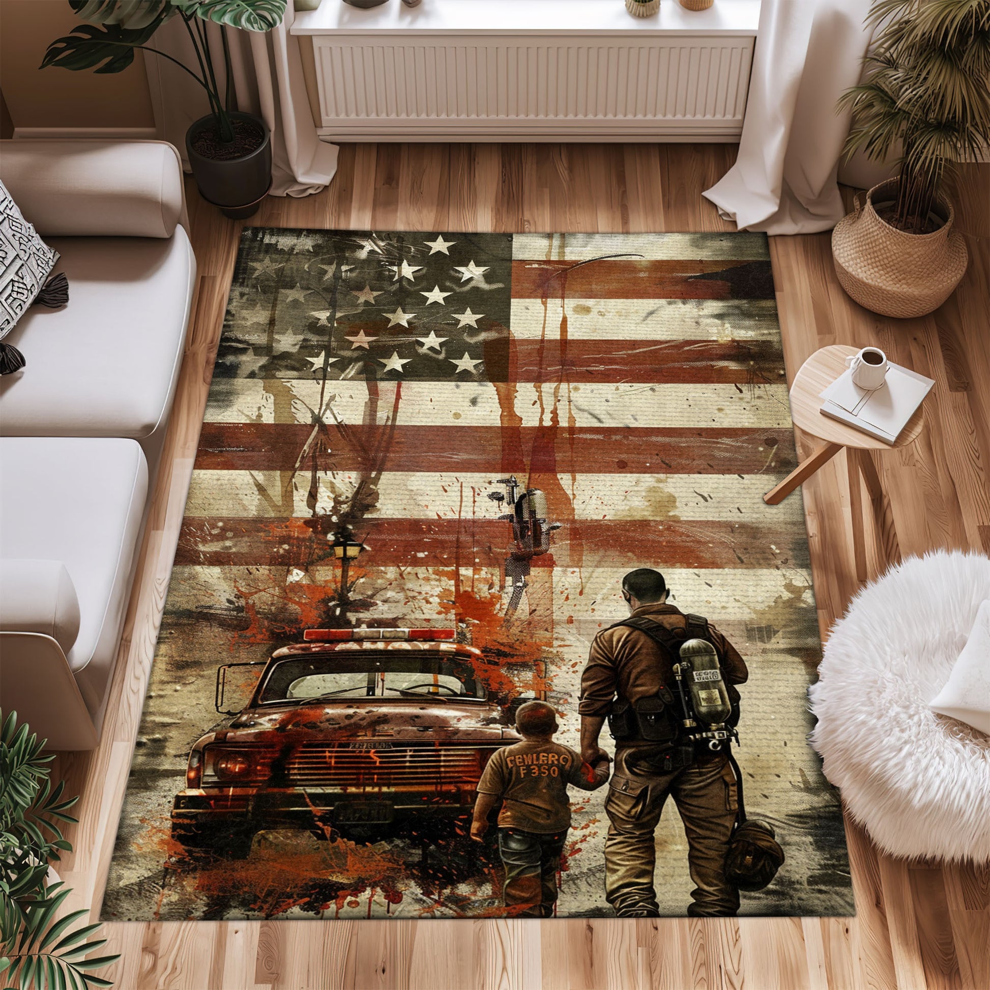 Inspirational Decor: Dad Fire Fighter and Son Firefighter Theme Personalized Rugs, Firefighter Rugs for Living Room Bedroom, Firefighter Rectangular Rugs Full Size FR86