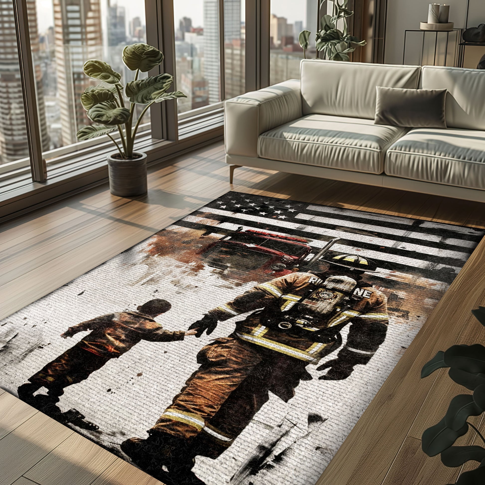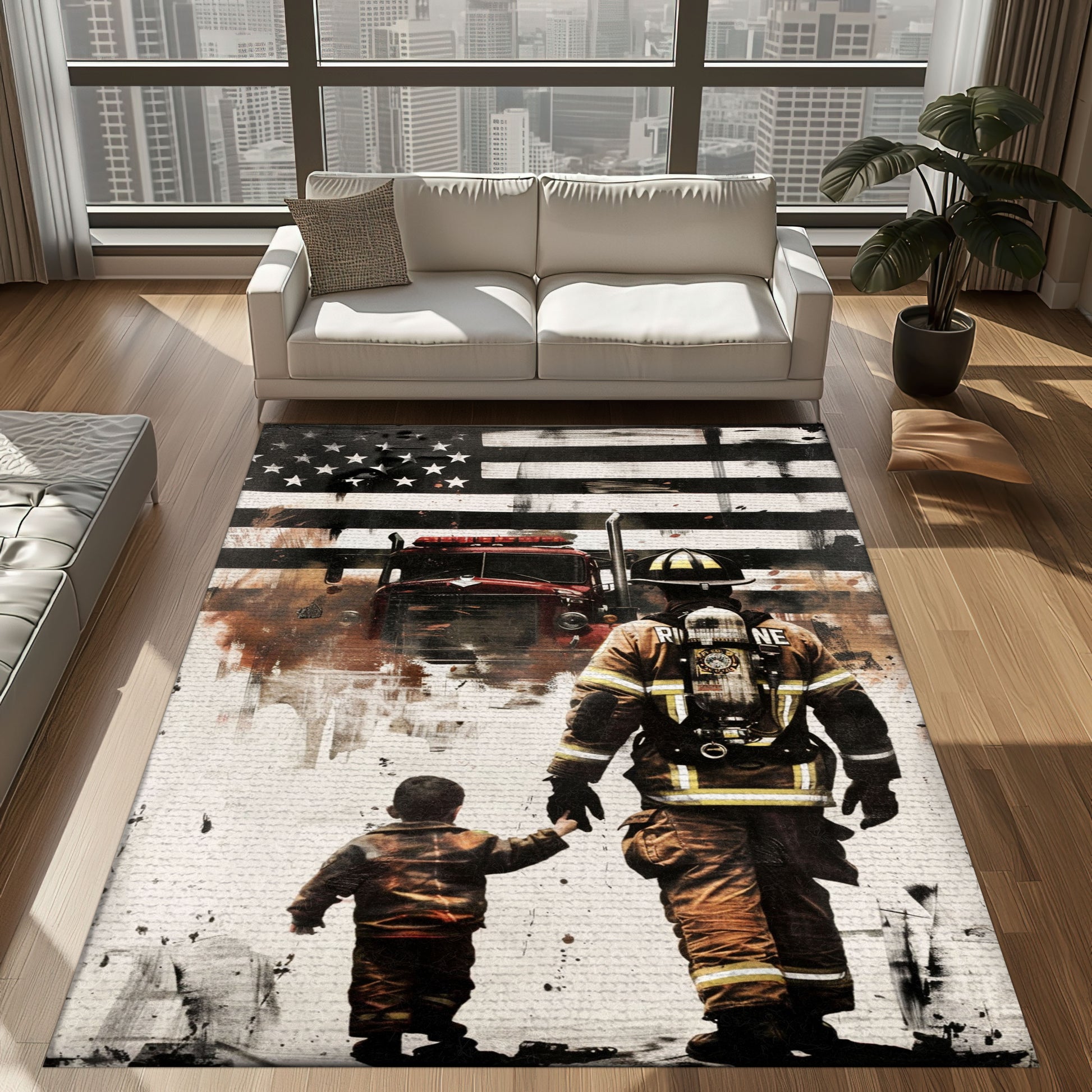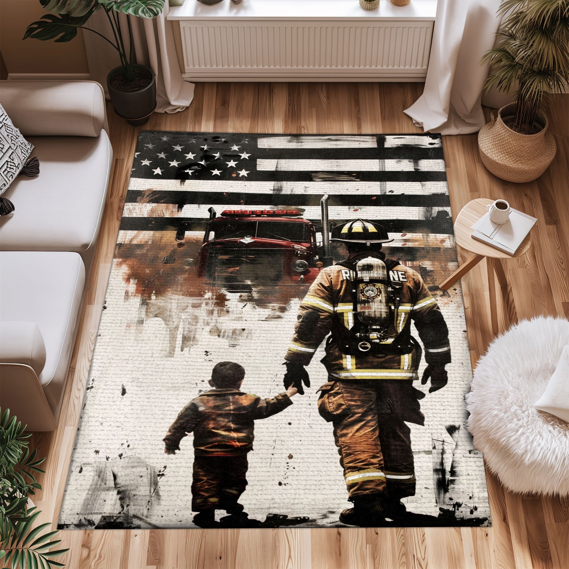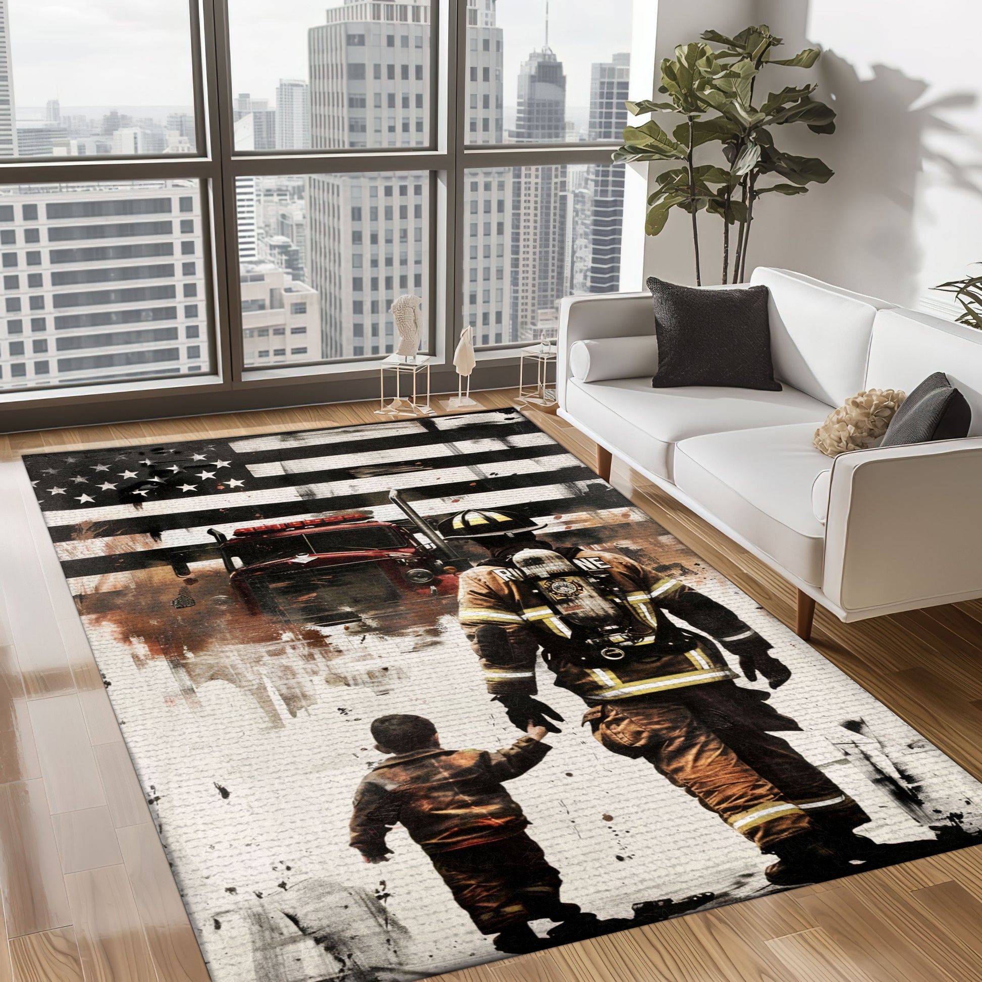 Legacy of Courage: Dad Fire Fighter and Son Firefighter Personalized Rug Collection, Firefighter Rugs for Living Room Bedroom, Firefighter Rectangular Rugs Full Size FR98