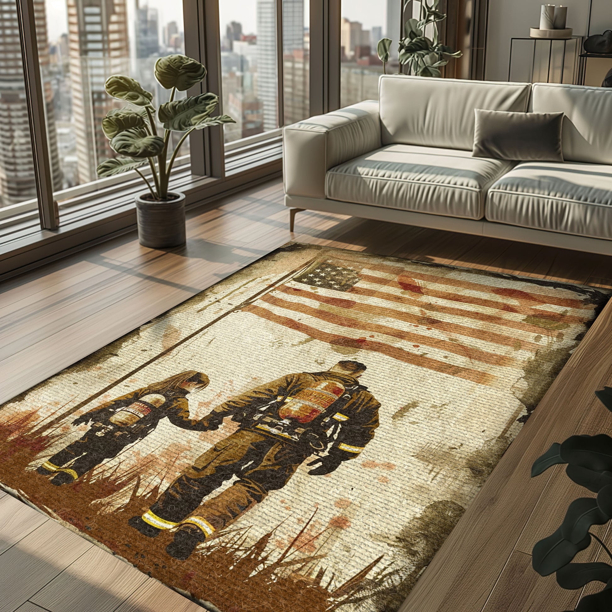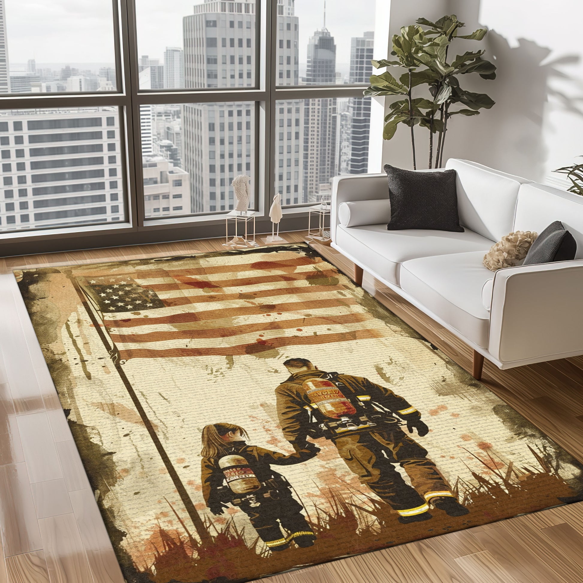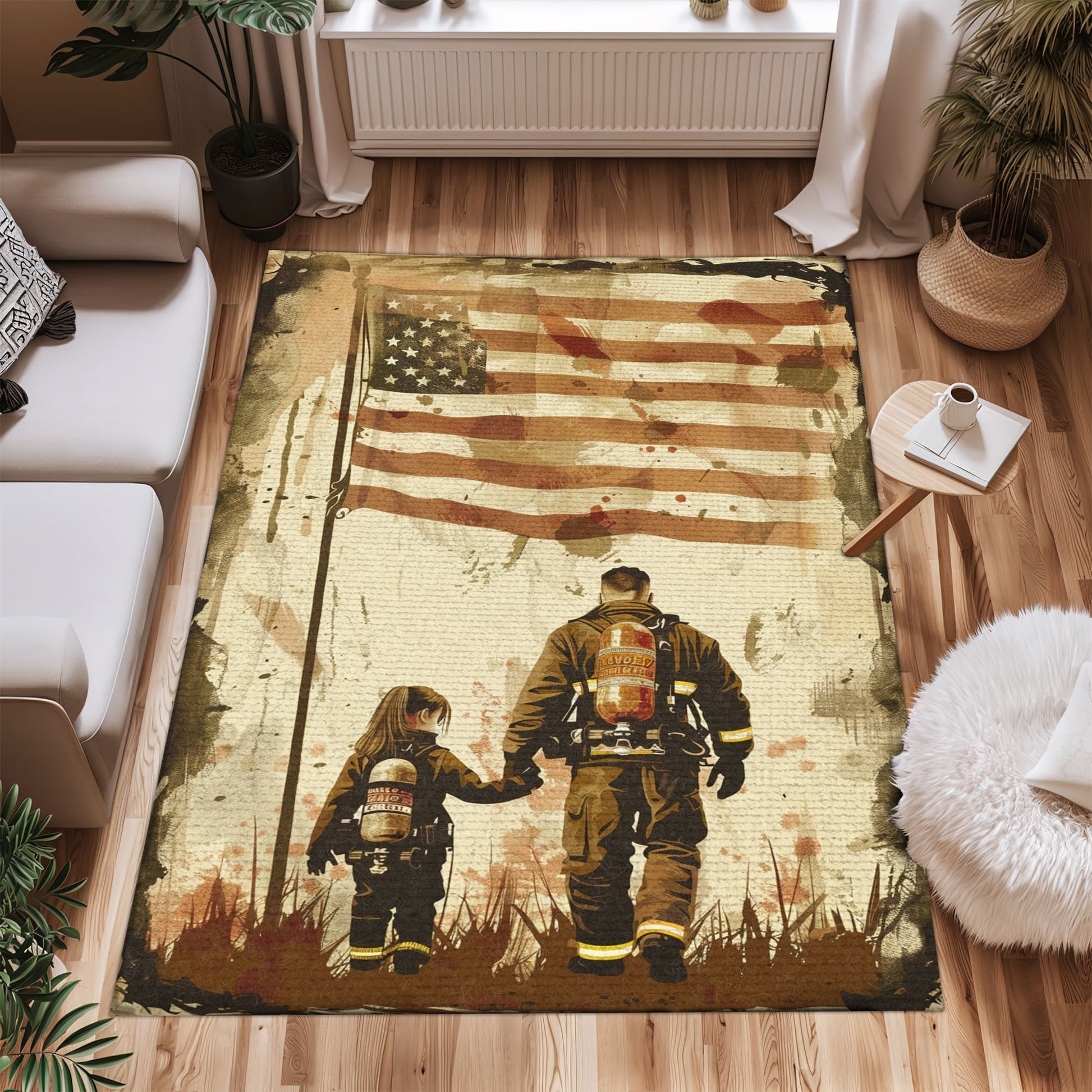Loving Memories: Personalized Firefighter Rugs for Dad and Daughter, Firefighter Rugs for Living Room Bedroom, Firefighter Rectangular Rugs Full Size FR115