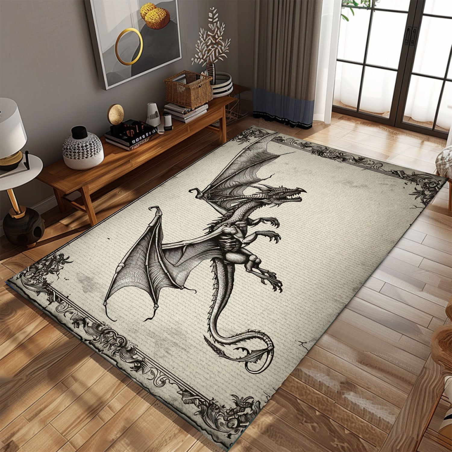 Majestic Wyvern Dragon with Four Legs and Long Tail, Stunning Area Rug for Mythical and Fantasy Home Interiors, Gift For Dragon Lovers, Personalized Dragon Rug for Living Room, Bedroom DG63
