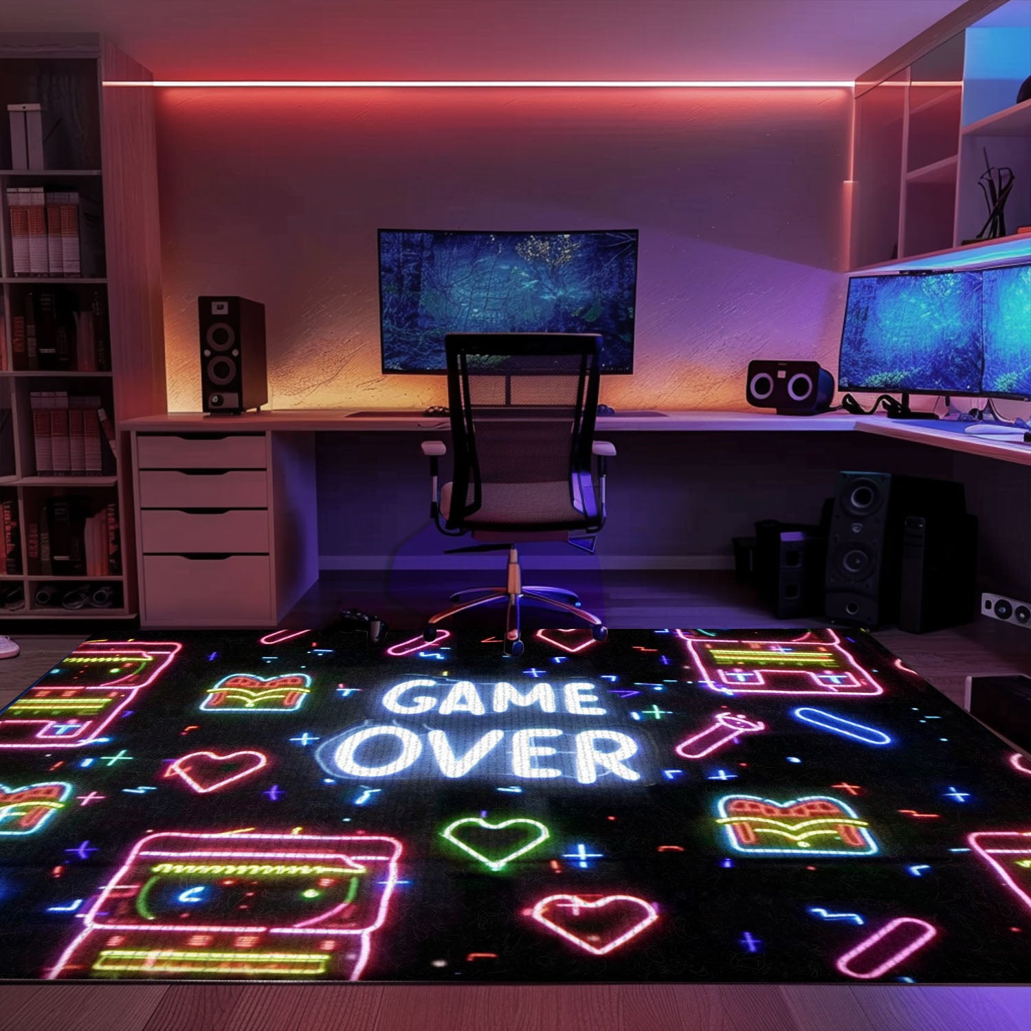 Neon Video Game Retro Arcade Game Room Area Rug, Ideal Decor for Living Room and Gift for Gamers, Arcade Decor, Gift for Gamers, Video Game Lovers G99