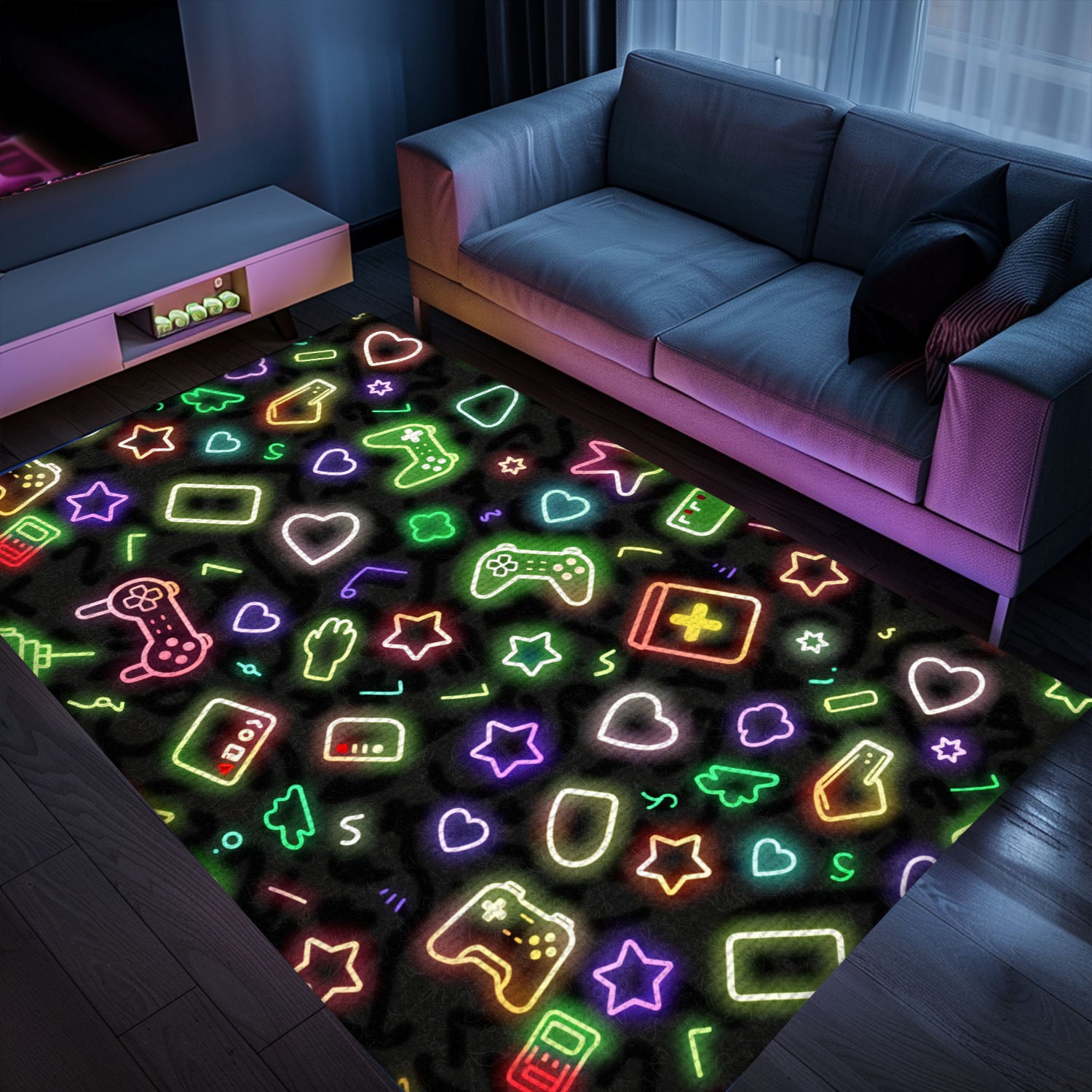 Neon Video Game Retro Arcade Game Room Area Rug, Ideal for Living Room Decor and Gamers' Gift, Arcade Decor, Gift for Gamers, Video Game Lovers G91