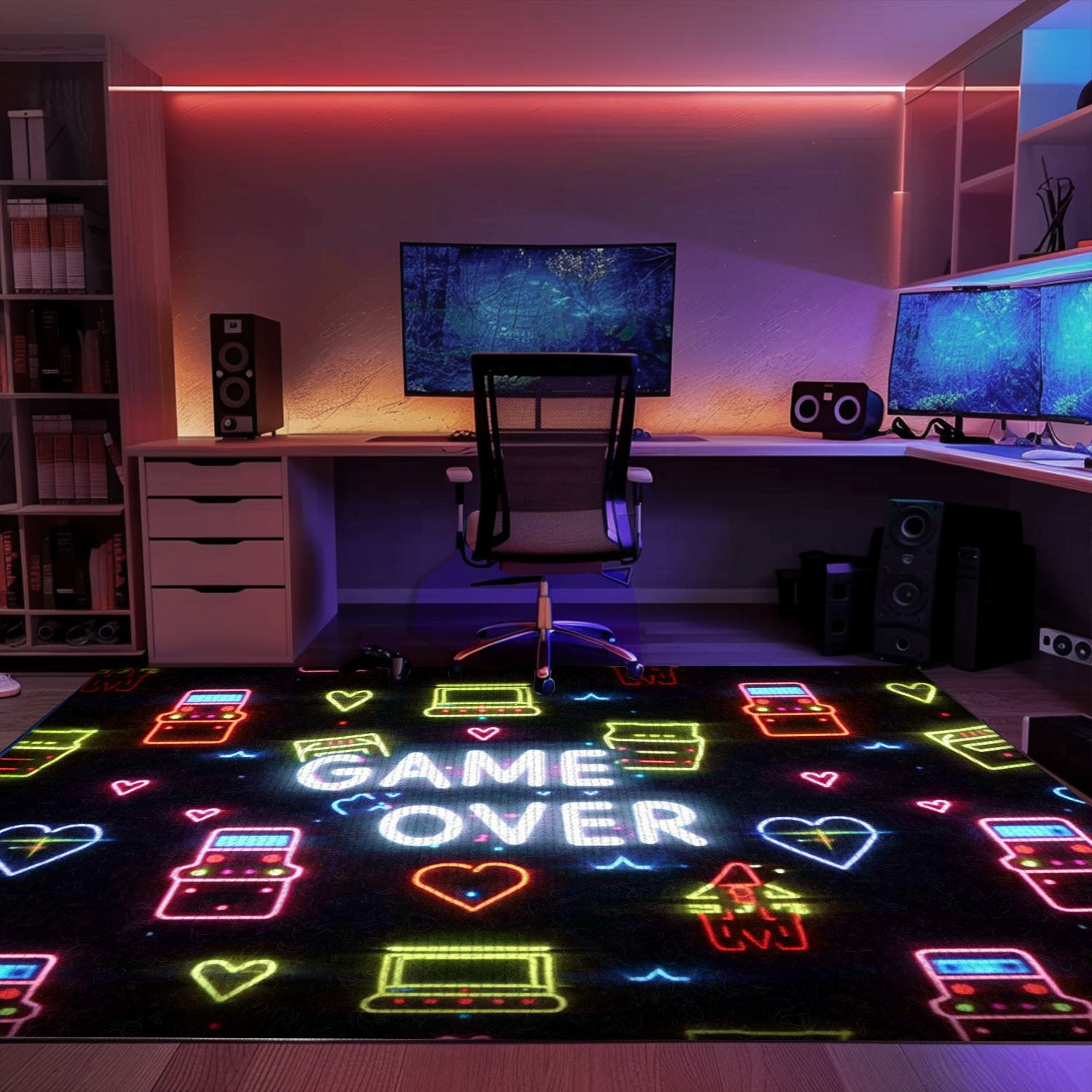 Neon Video Game Retro Arcade Game Room Area Rug: Perfect for Creating a Gaming-Focused Atmosphere, Arcade Decor, Gift for Gamers, Video Game Lovers G116