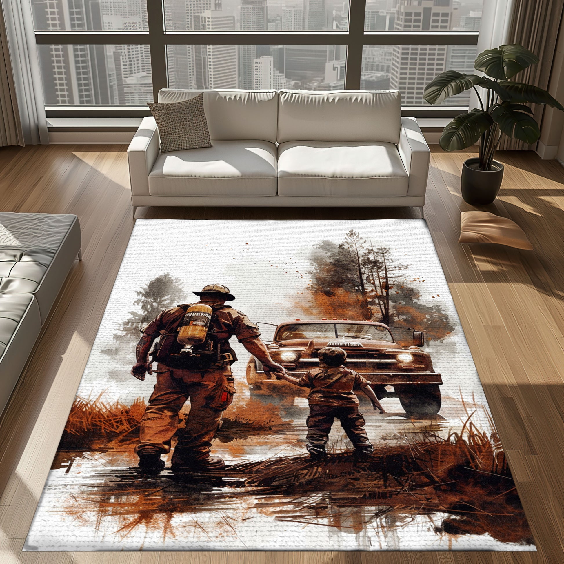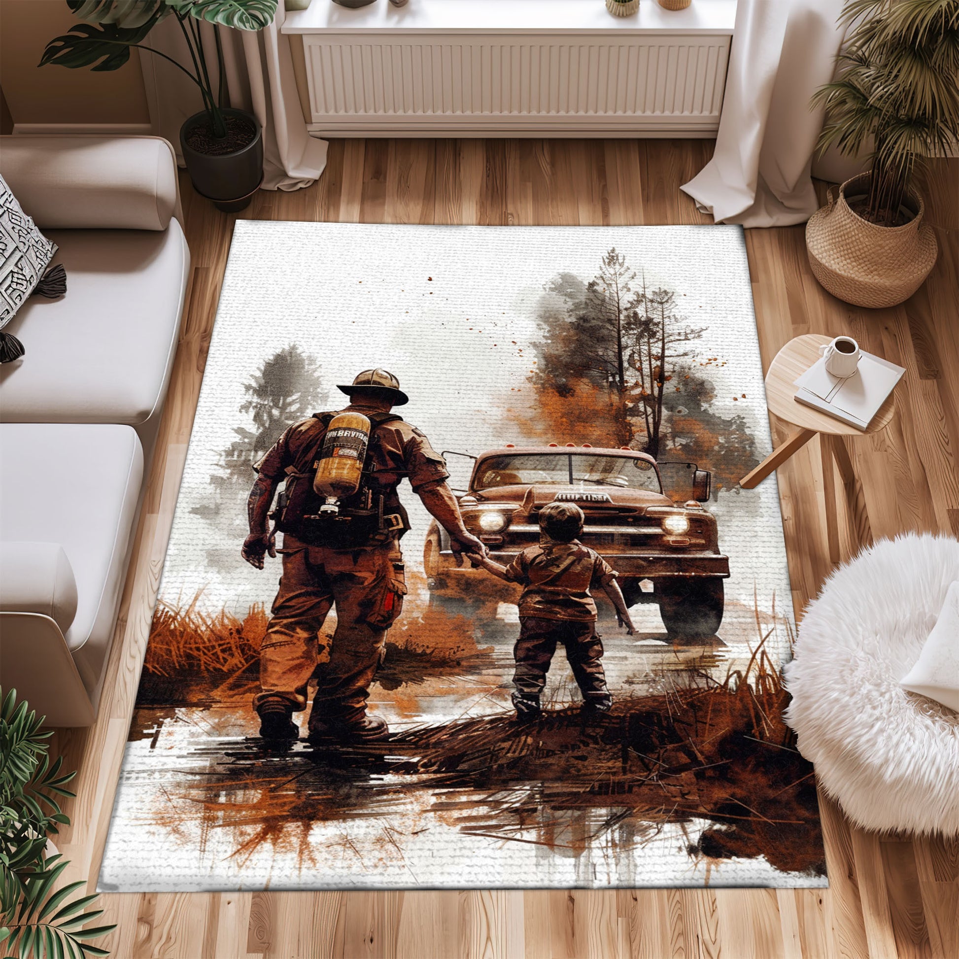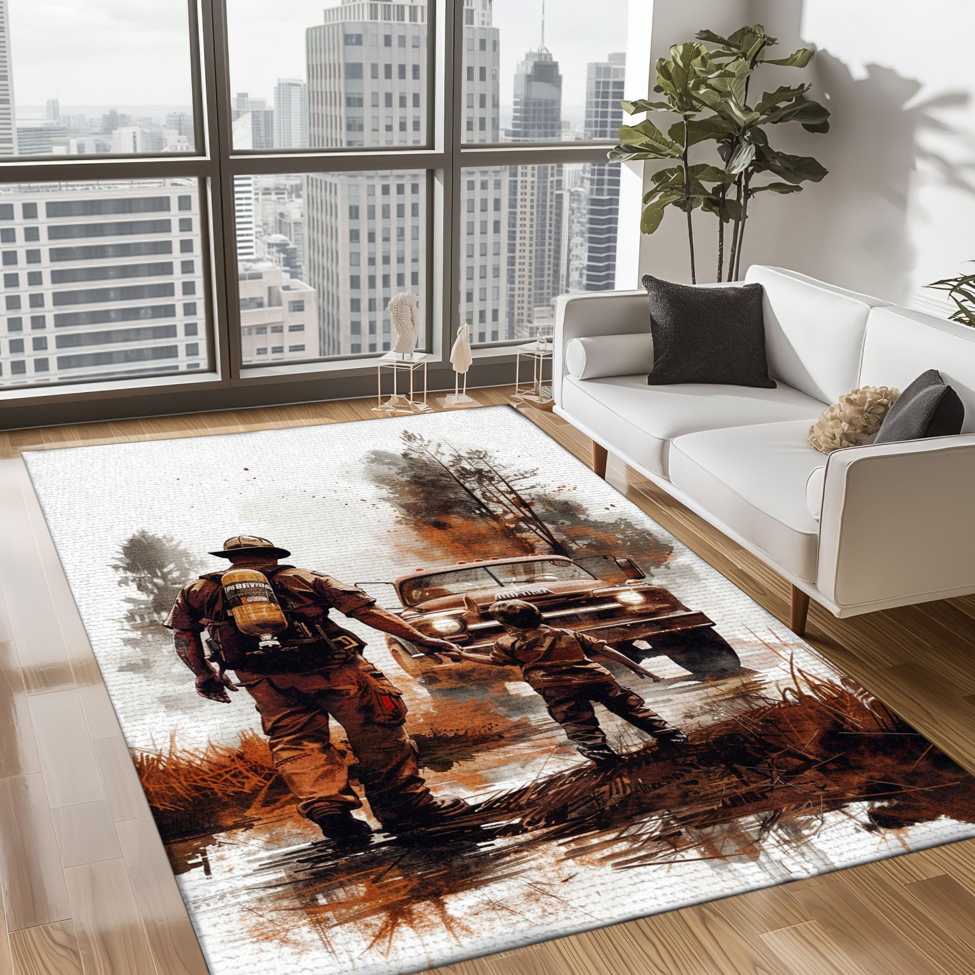 Patriotic Fireman Custom Rectangular Rug: Celebrate Patriotism and Heroism, Firefighter Rugs for Living Room Bedroom, Firefighter Rectangular Rugs Full Size FR80
